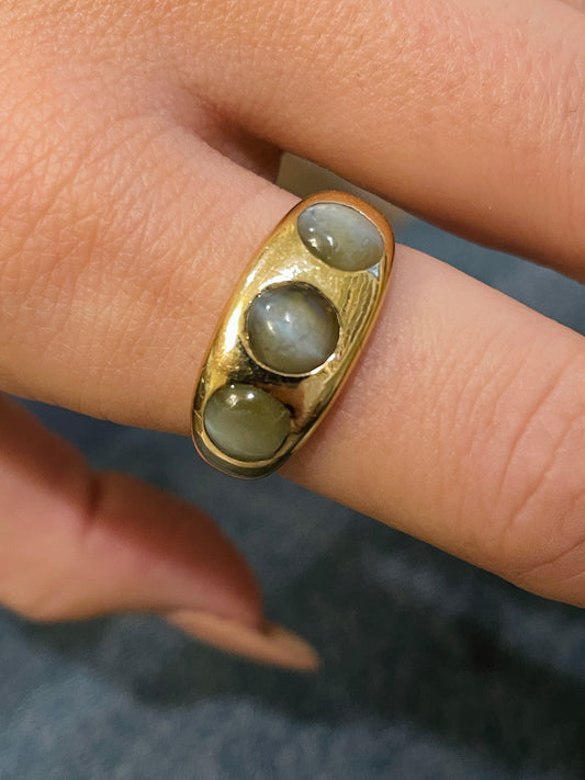 Antique yellow 14K cats eye chrysoberyl ring, size 8.5