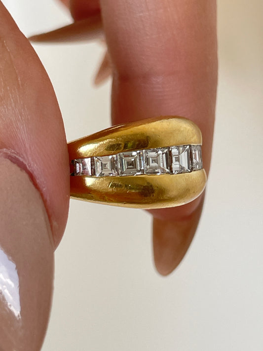 Vintage yellow 18K French 1.3 ctw Carre cut diamond ring, size 6.5