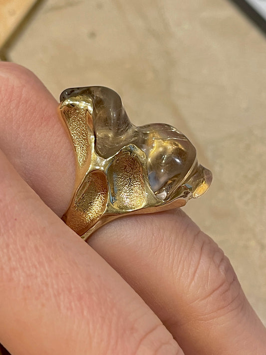 Vintage yellow 14K organic rutilated quartz swirl statement ring, size 6.5