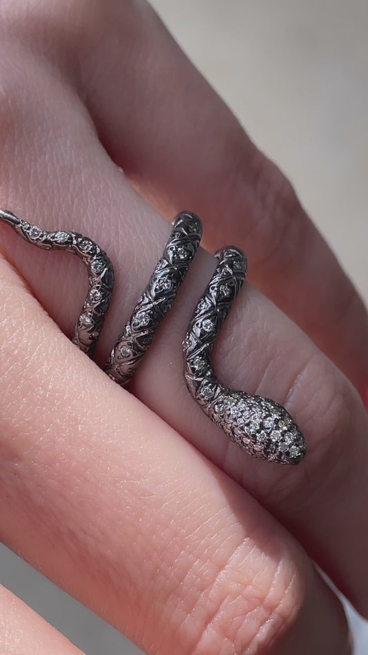 Estate white 18K with black rhodium approx .25 ctw diamond snake wrap ring, size 6