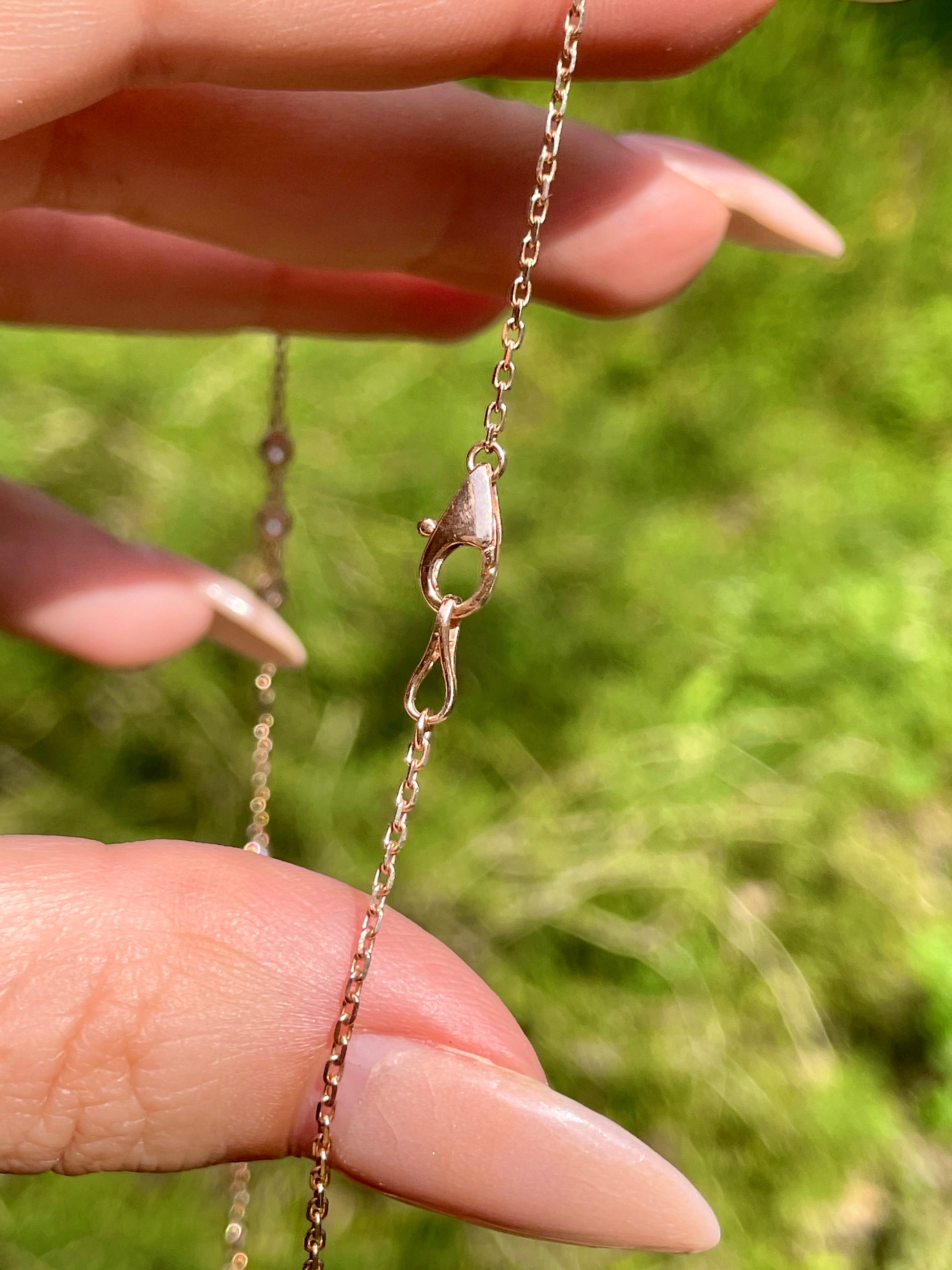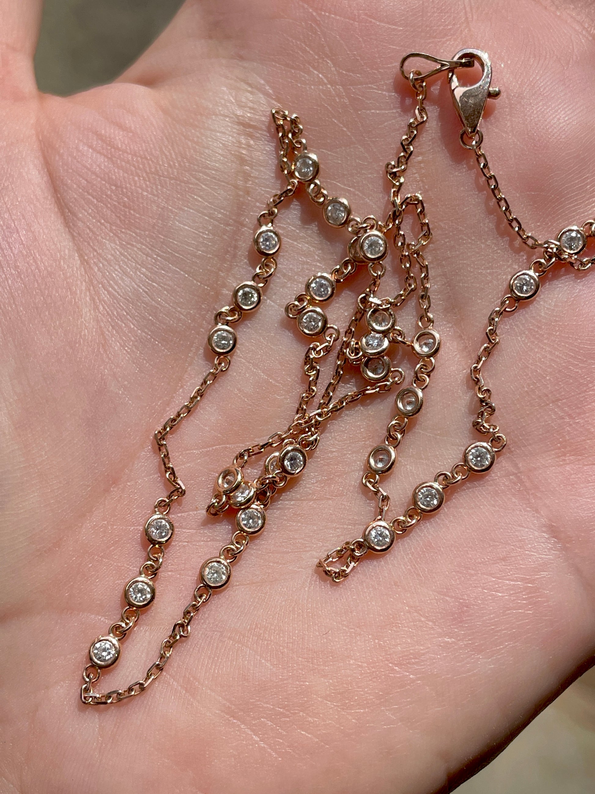 Estate rose 14K gold .9 ctw bezel set diamond station chain, 18 inch