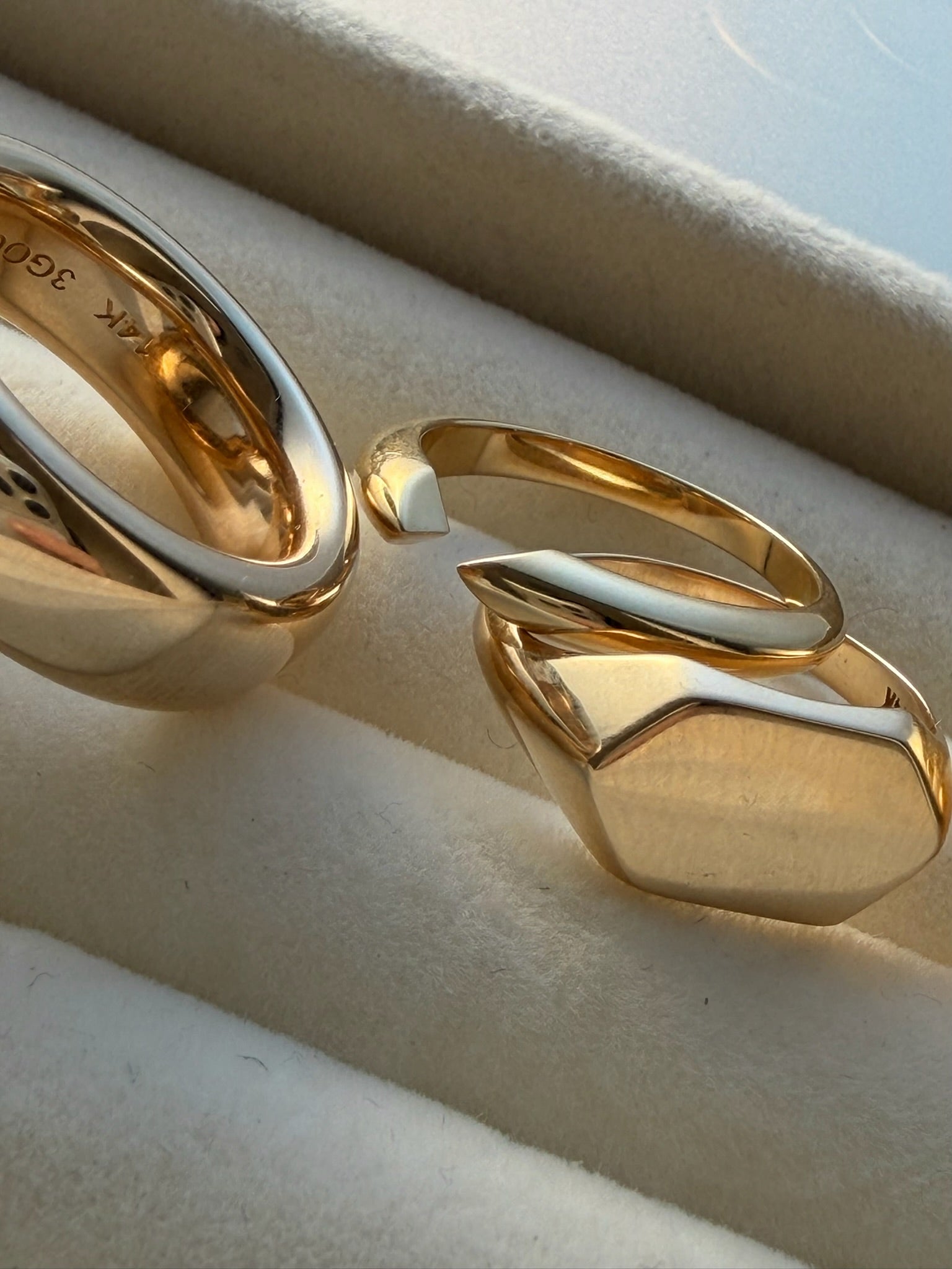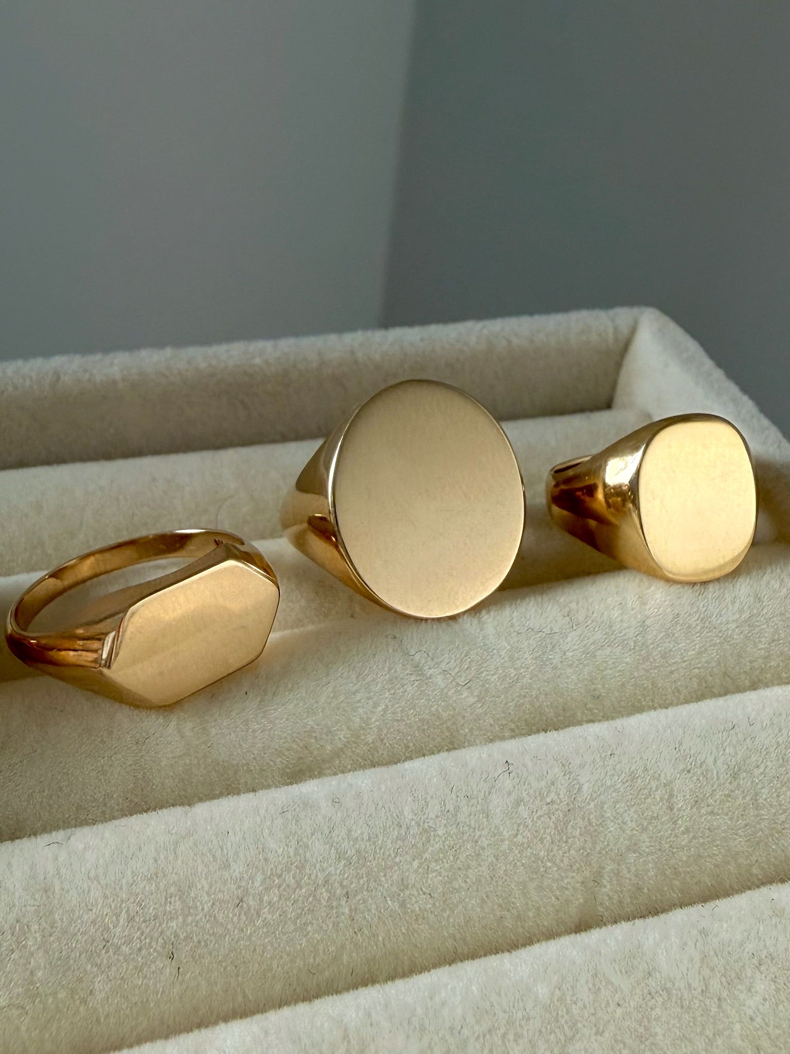 Our custom Blank Slate Signet Rings join 3 Graces of Gold's Chubby Donut Band as a universal Gold Standard, as irreplaceable go-to foundational rings in your solid gold jewelry collection.