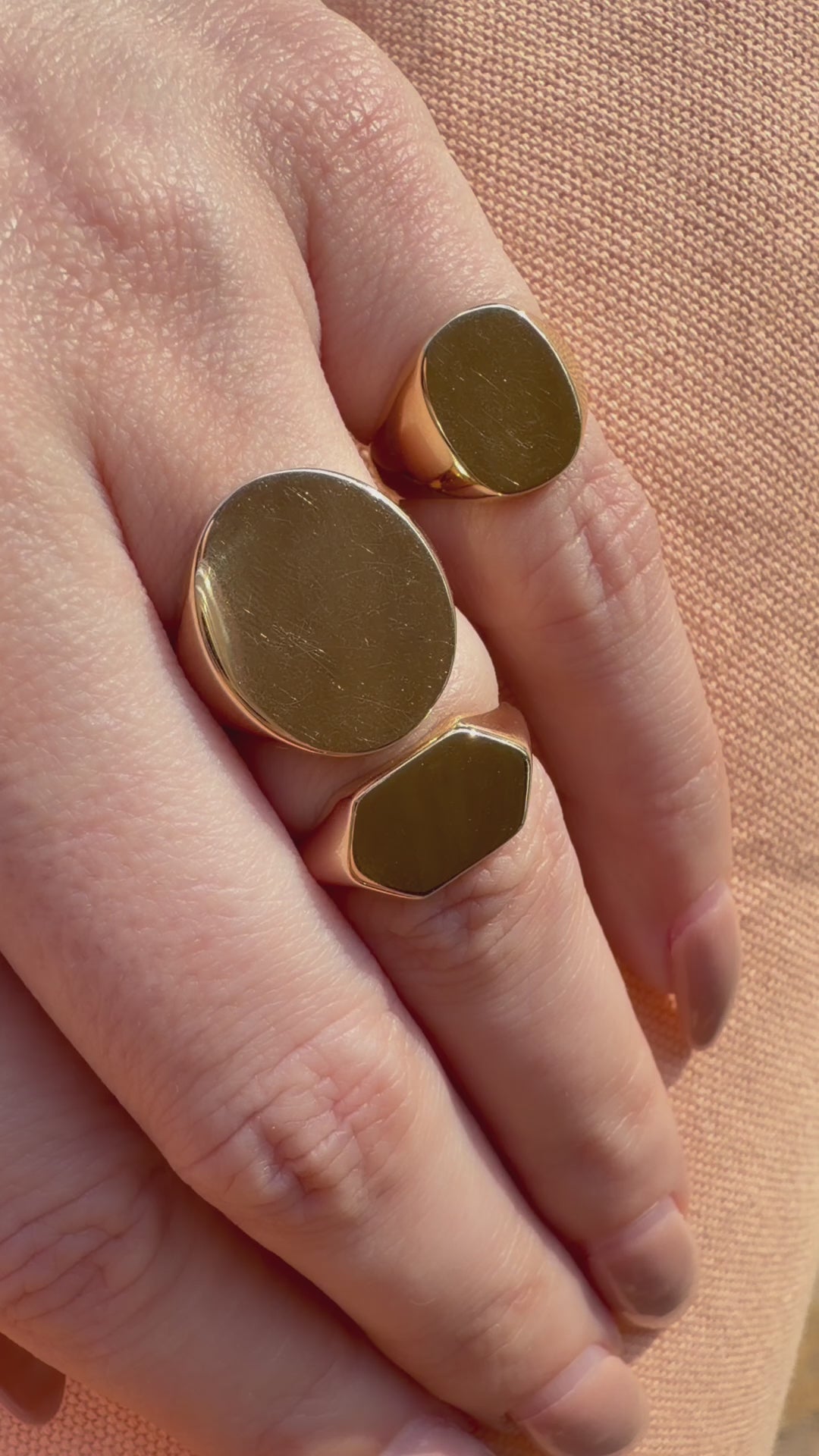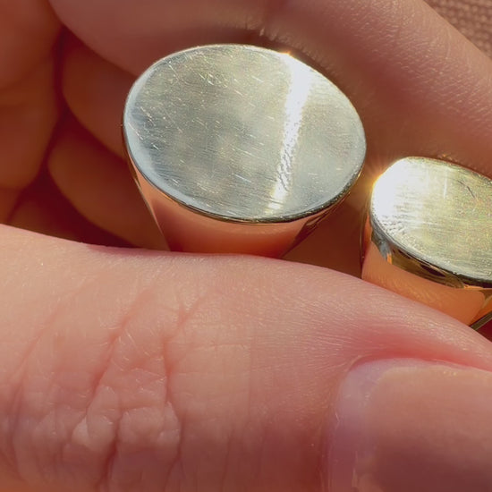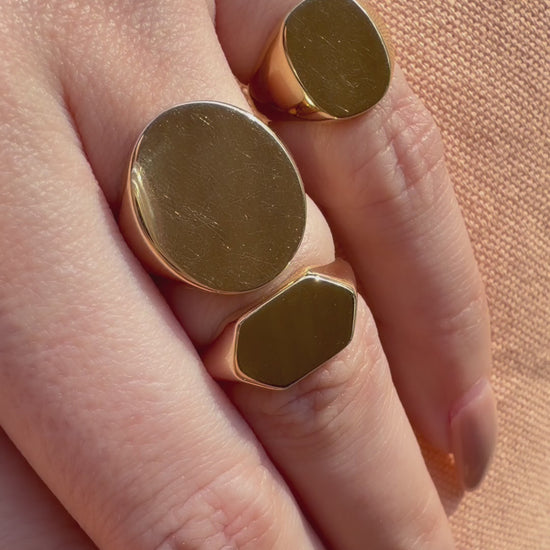 Naz’s 3 favorite signet shapes, inspired by antique and vintage styles and designed as a blank slate. Made in your size and chosen gold karat and finish, to customize with engraving or leave blank to add gorgeous wear. Your choice. A blank slate that’s yours to define - with purpose and new meaning on your hand.
