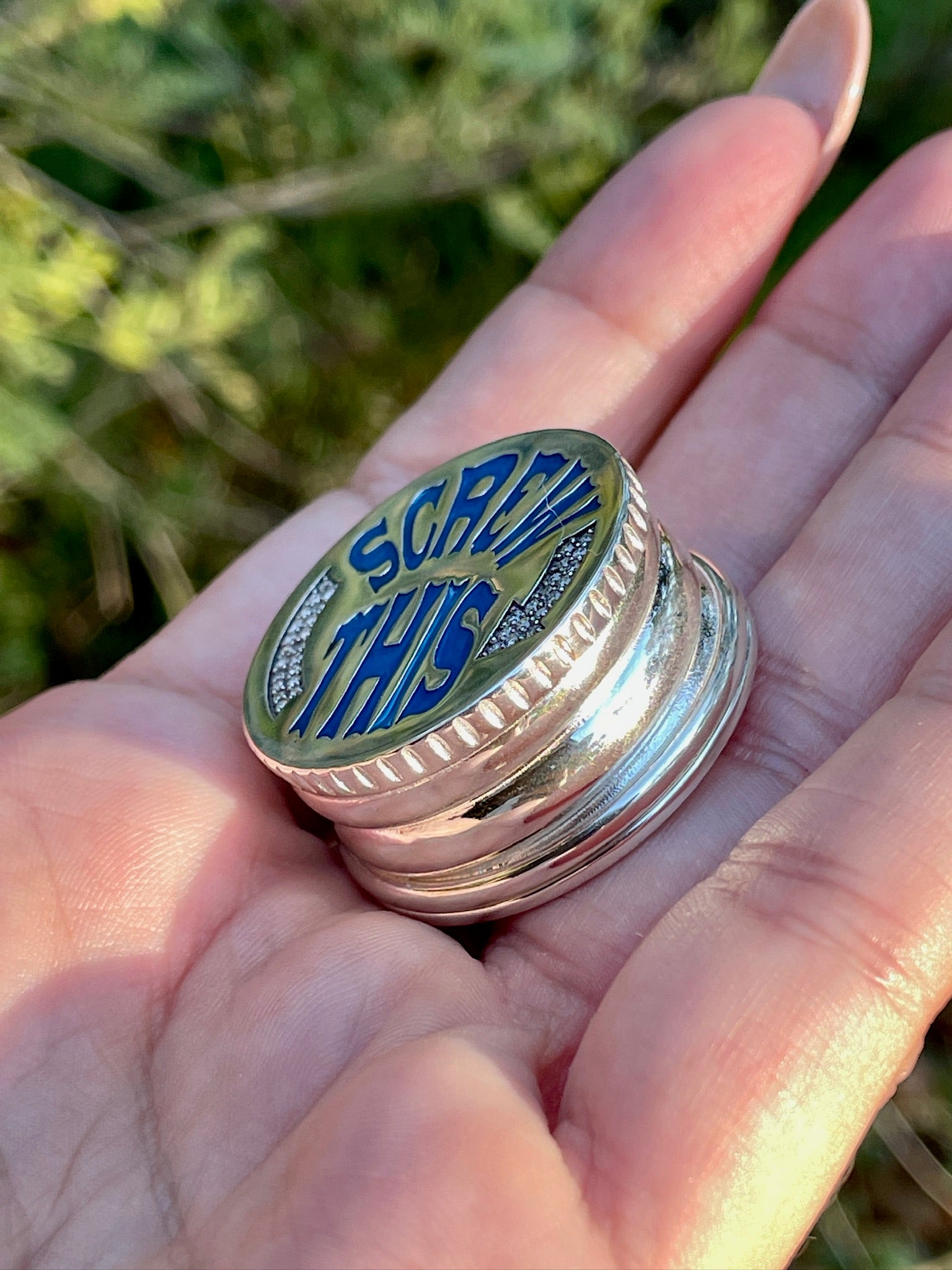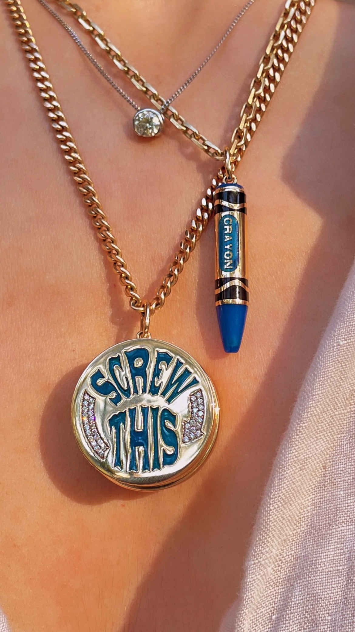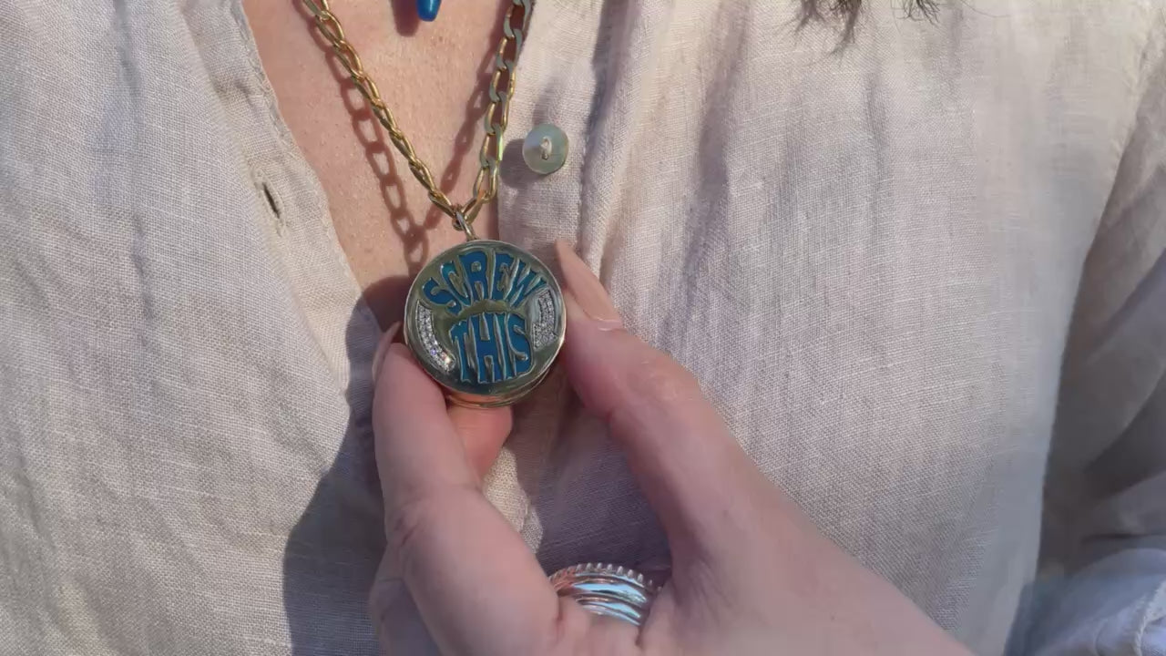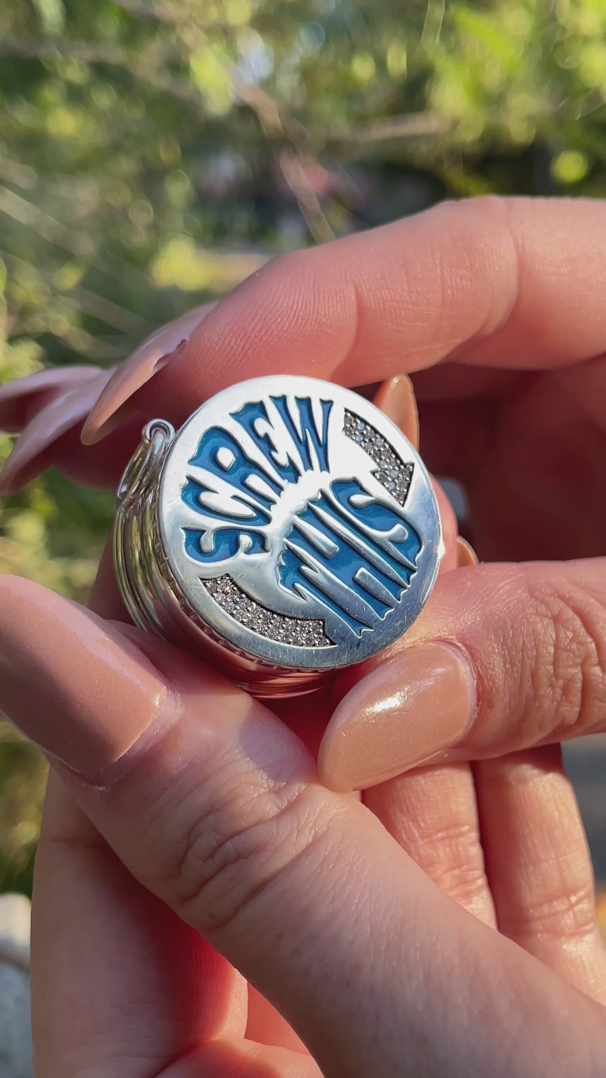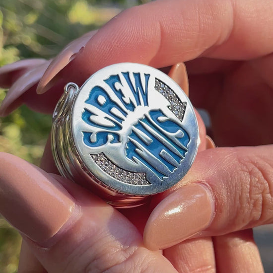A pendant for our times? Yes. A great way to keep mints, pills or a special note at an arm's reach? Also yes. Naz found a plain solid gold vintage screw top bottle cap and her imagination ran wild. What if it said "Screw This" and it actually could?! What about a hidden compartment!? Life is more amusing with this in it. Offered in sterling silver or solid gold, with or without the bottom. Screw this however you want.