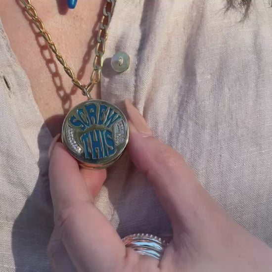Our original custom Screw This Pendant is part of 3 Graces of Gold's Plot Twist Collection of personalized made to order talismans inspired by the combination of meaningful symbols, everyday objects, and messages we connect to as we navigate life's twists and turns. An old meets new plot twist on custom jewelry that empowers, inspires, and is a little unexpected.