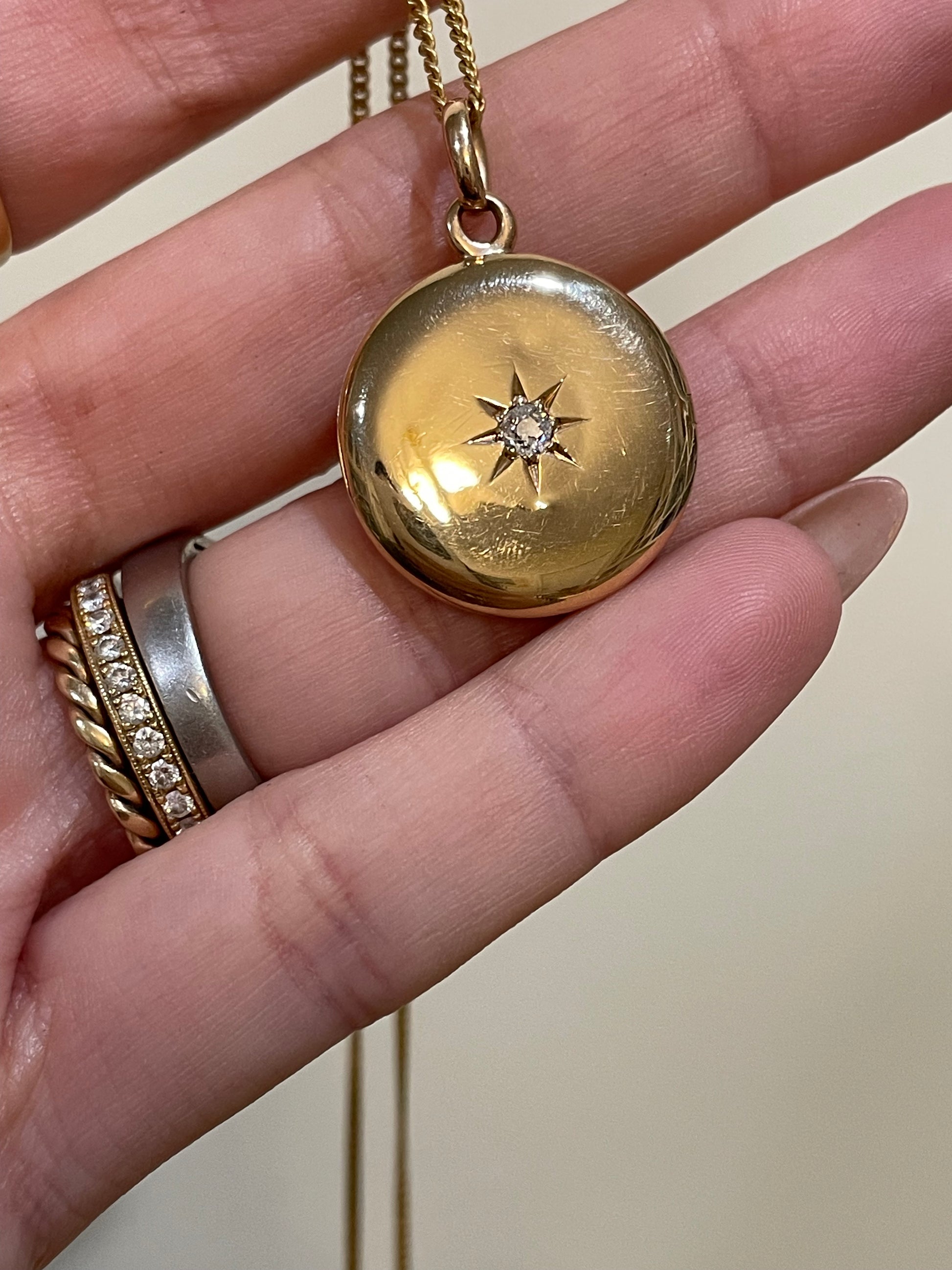 Antique 14K Old Mine Cut Diamond Star Locket
