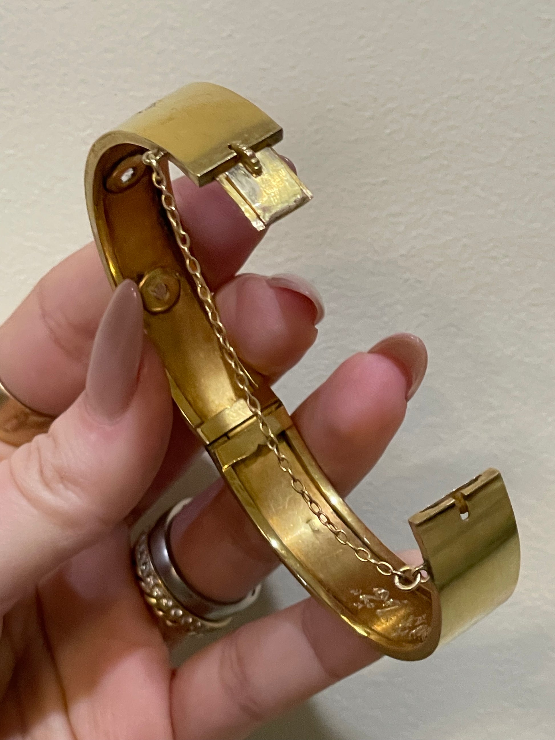 Antique 18K Rose Diamond Wide Oval Hinge Bangle