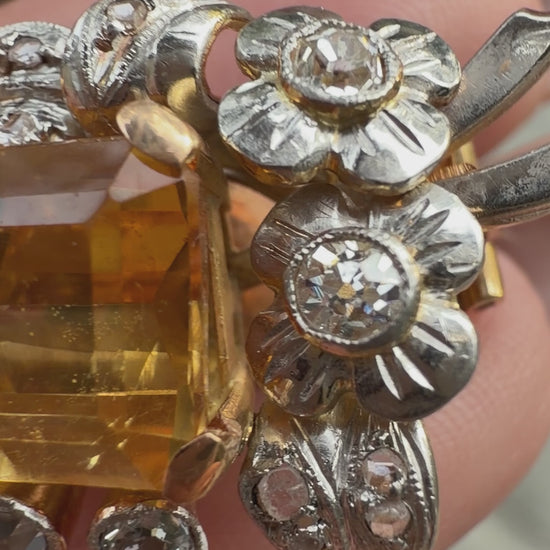 Antique Platinum and yellow 18K approx 10 ctw citrine and 1.2 ctw old mine cut diamond and rose cut diamond omega back earrings