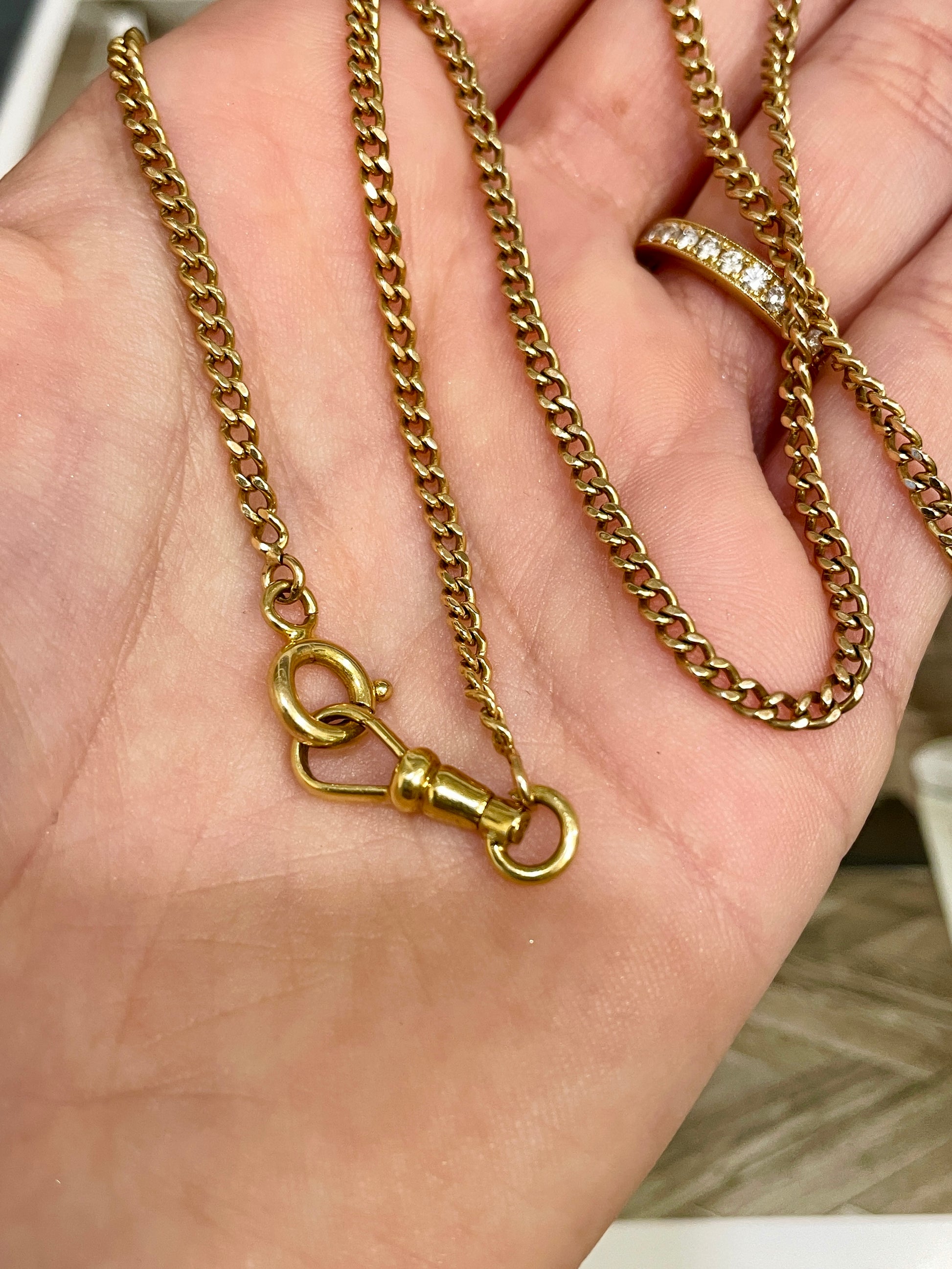[PRIVATE] Antique yellow 18K curb link watch chain with dog clip, 23.5 inch