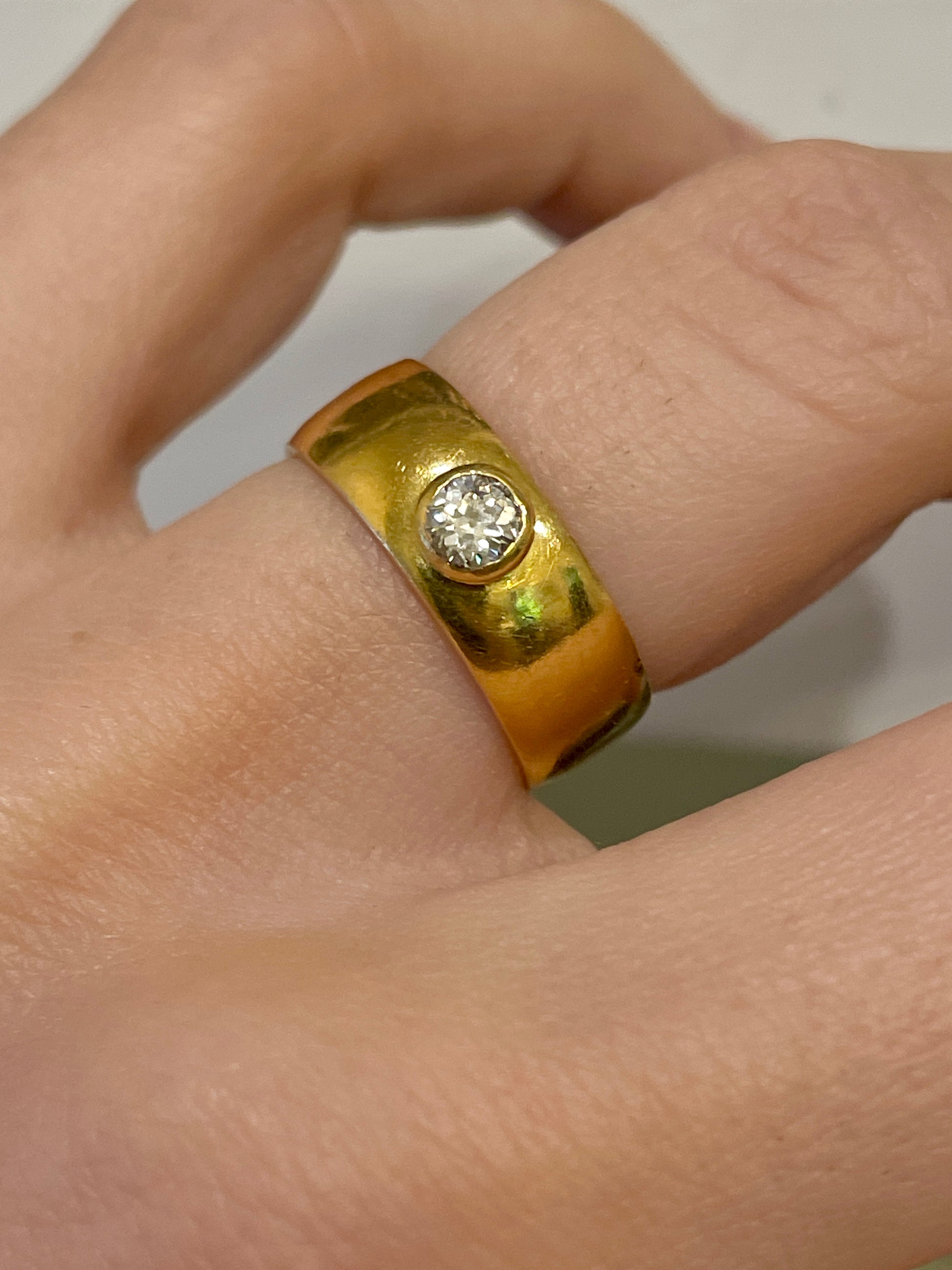 Antique yellow 22K approx .2 ctw bezel set old mine cut diamond band, size 5.5