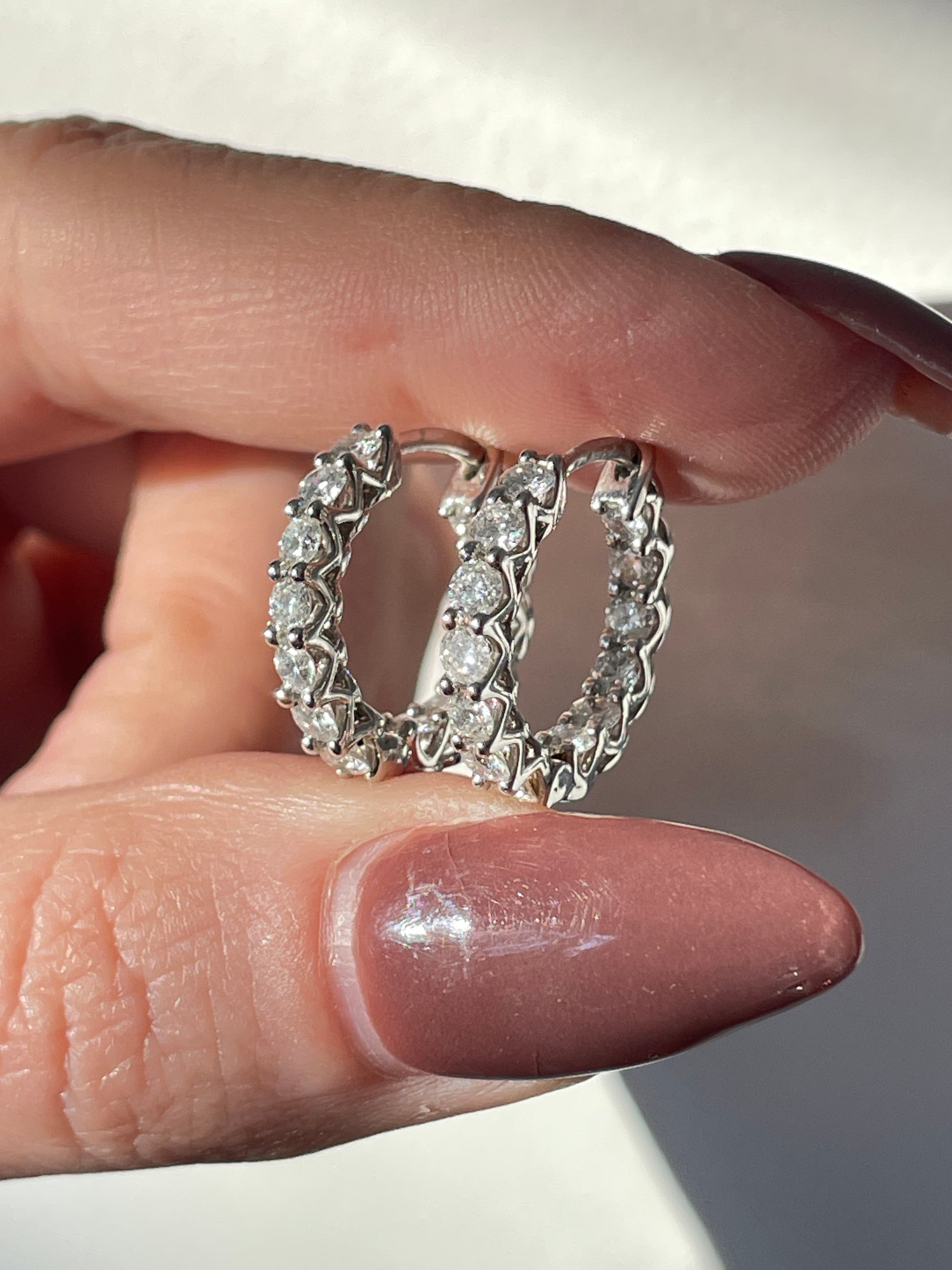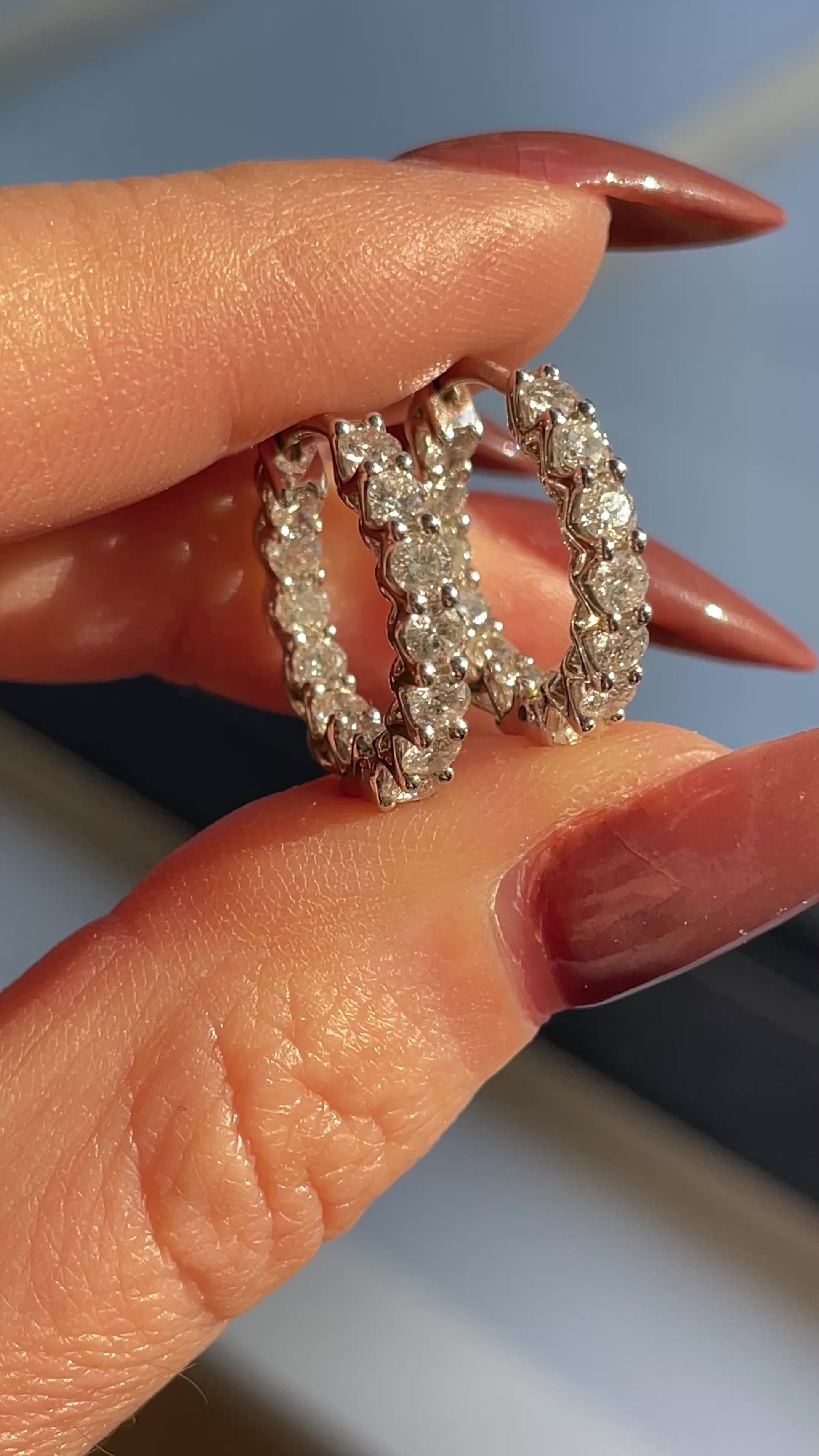 Estate white 18K gold inside out approx 2.08 ctw diamond hoops