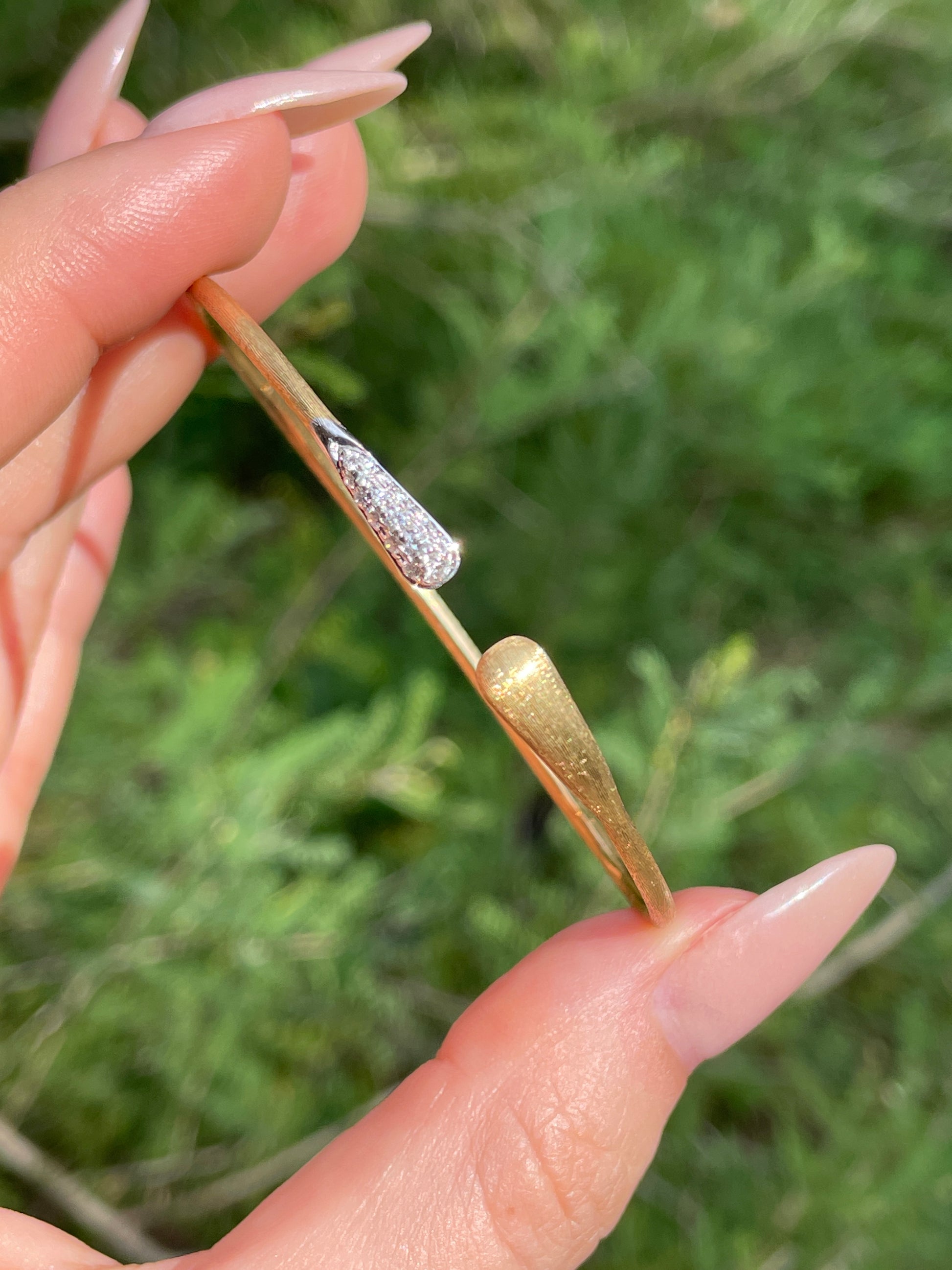 Estate yellow and white 18K and .1 ctw diamond textured cuff bracelet