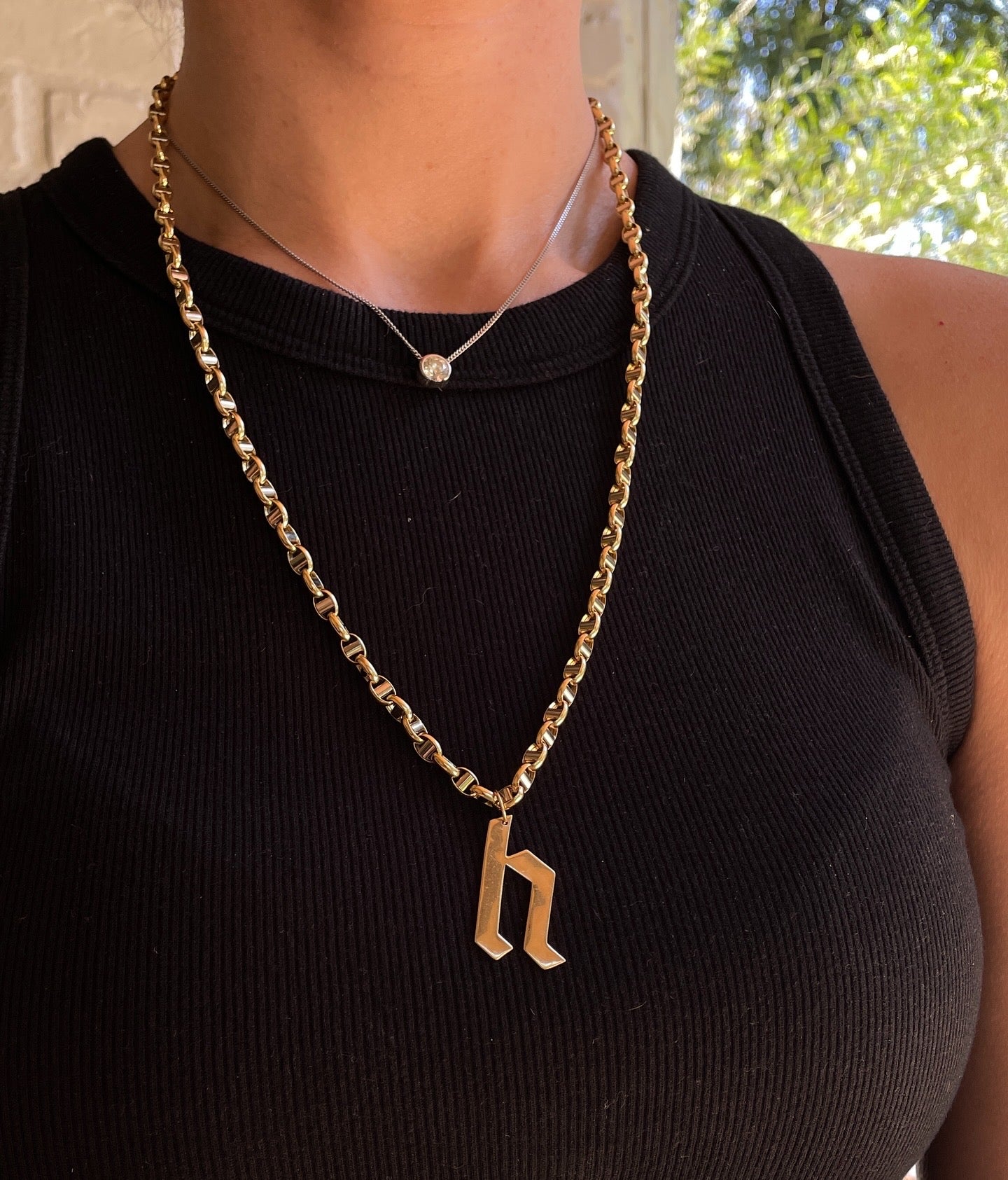 This is a really great larger look Estate mostly yellow 18K with white 18K central component round mariner chain, 24 inch long with lobster clasp. A link that has a great scale and still enough weight in the construction to hang well solo or with charms and be more durable without paying $000s more. Measures 5.1 mm wide. Links are open seamed on the inside as part of the hollow construction. Weighs 18.8 grams. In very good preowned condition.