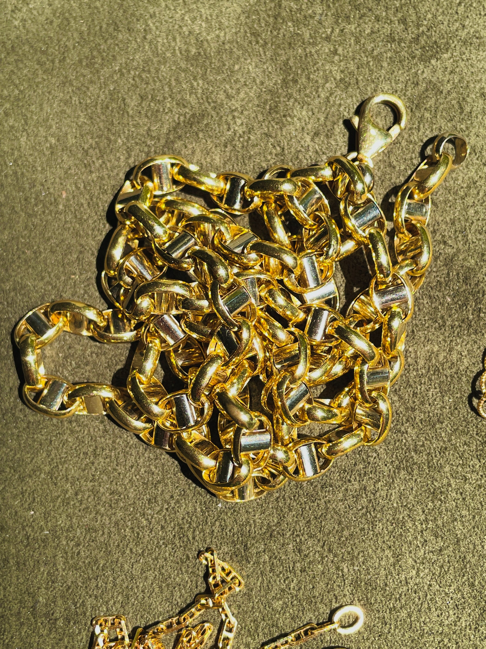 Estate yellow and white 18K round mariner chain, 24 inch