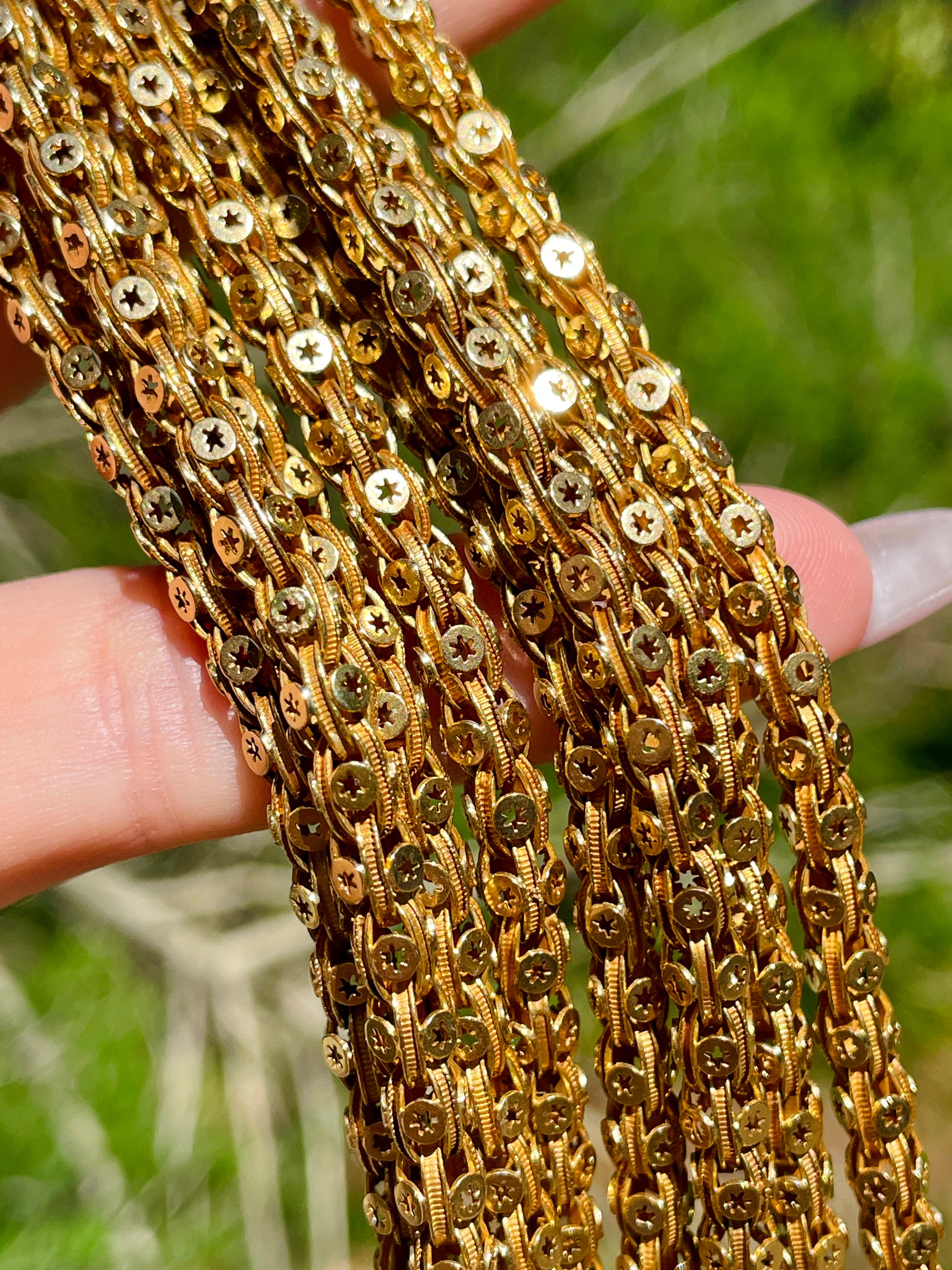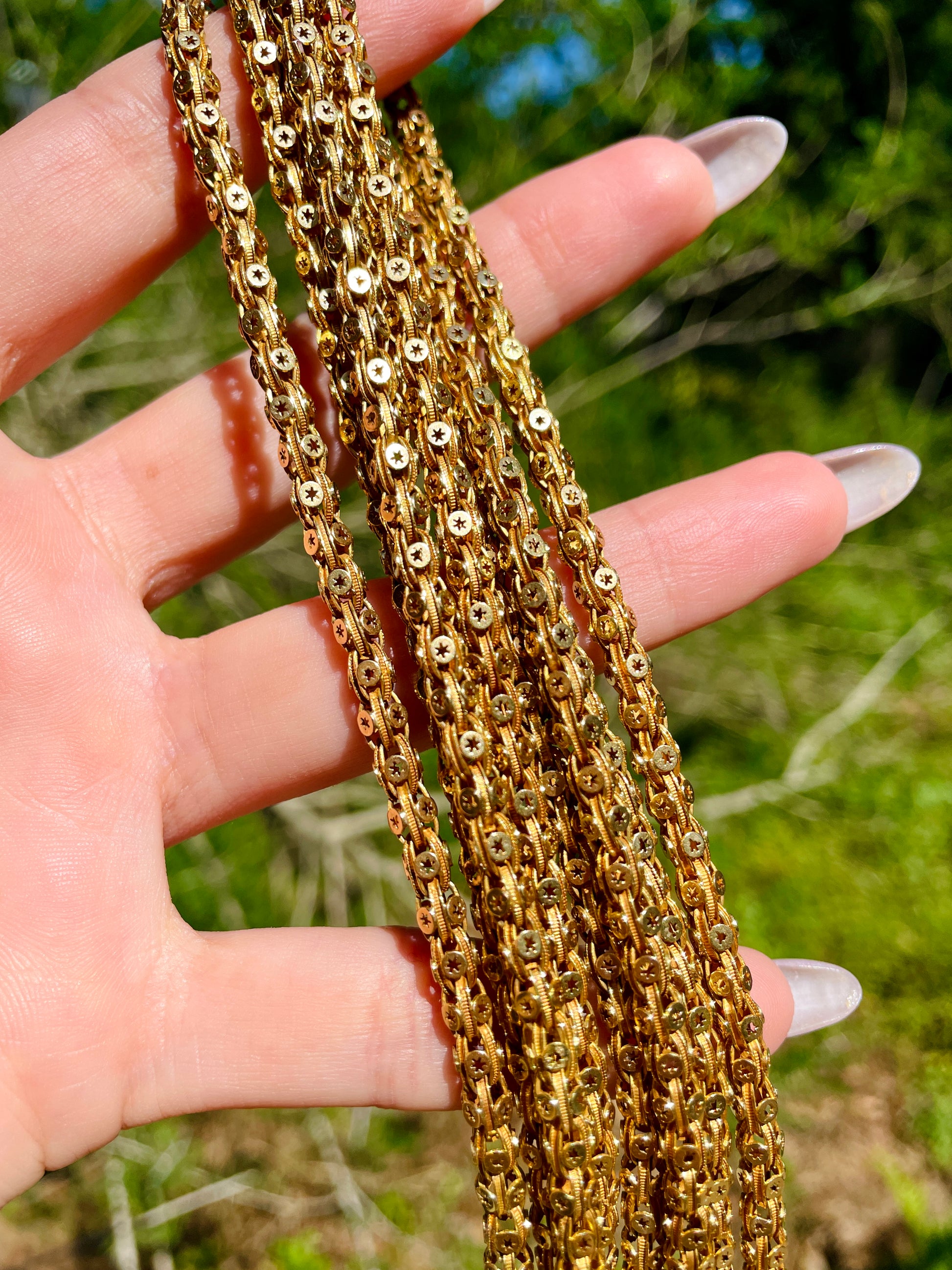 Rare Antique yellow 18K gold star cut longguard chain, 74.5 inch