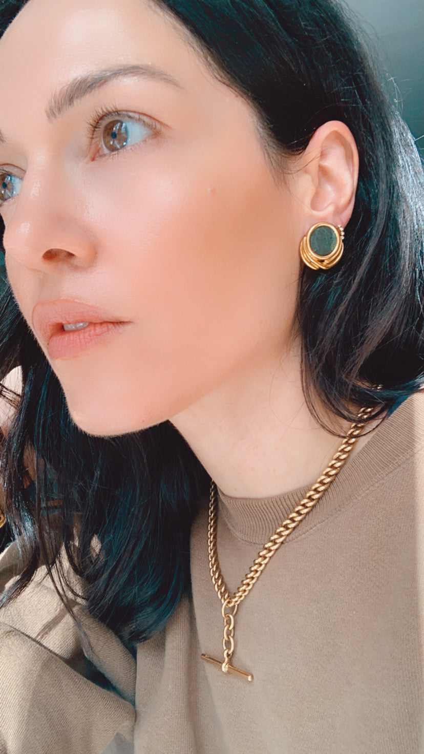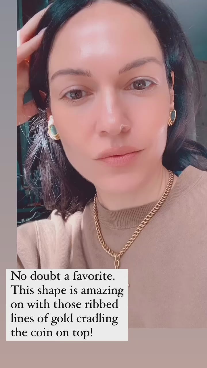 Vintage 18K Italy bronze coin omega back earrings