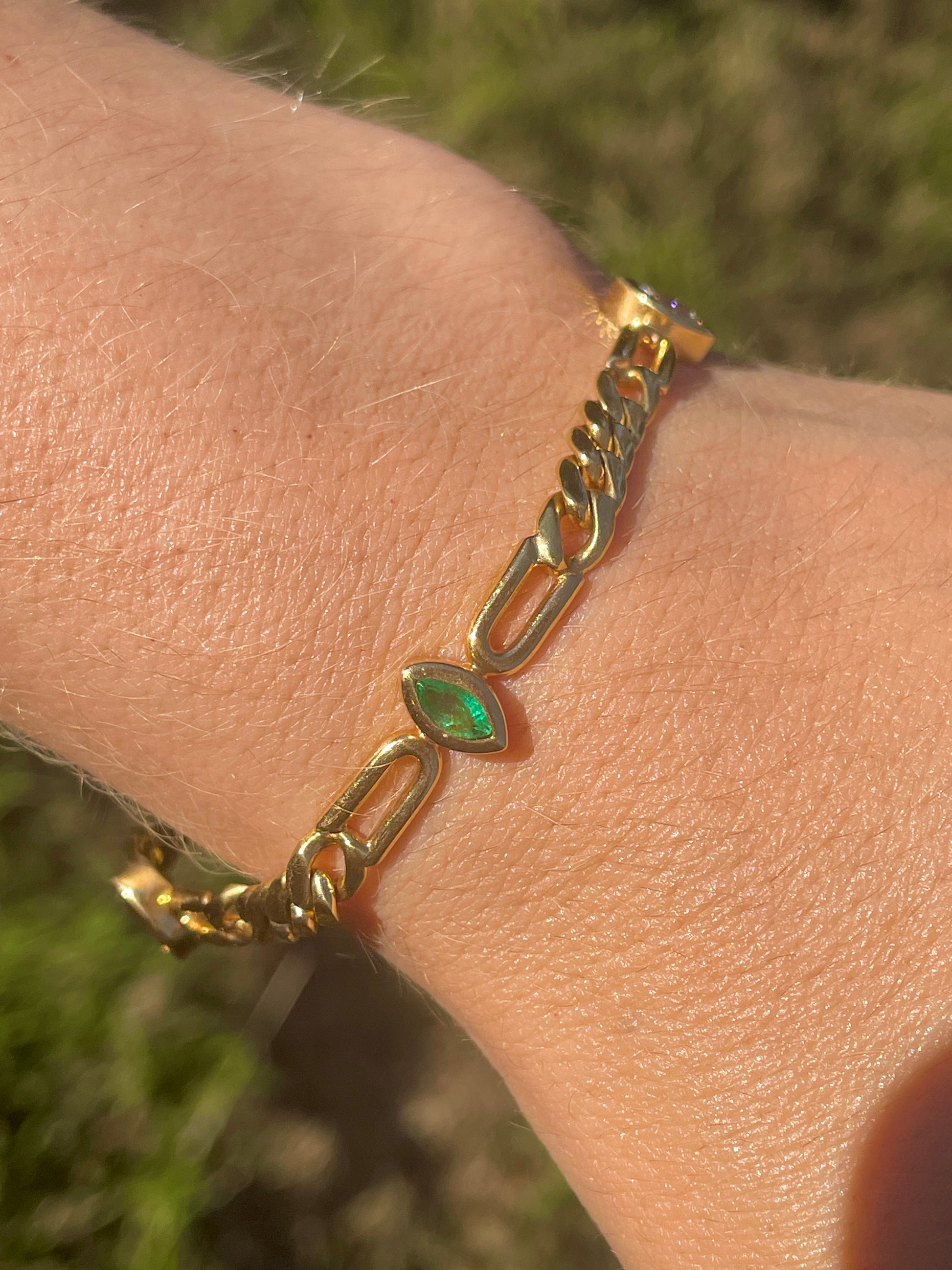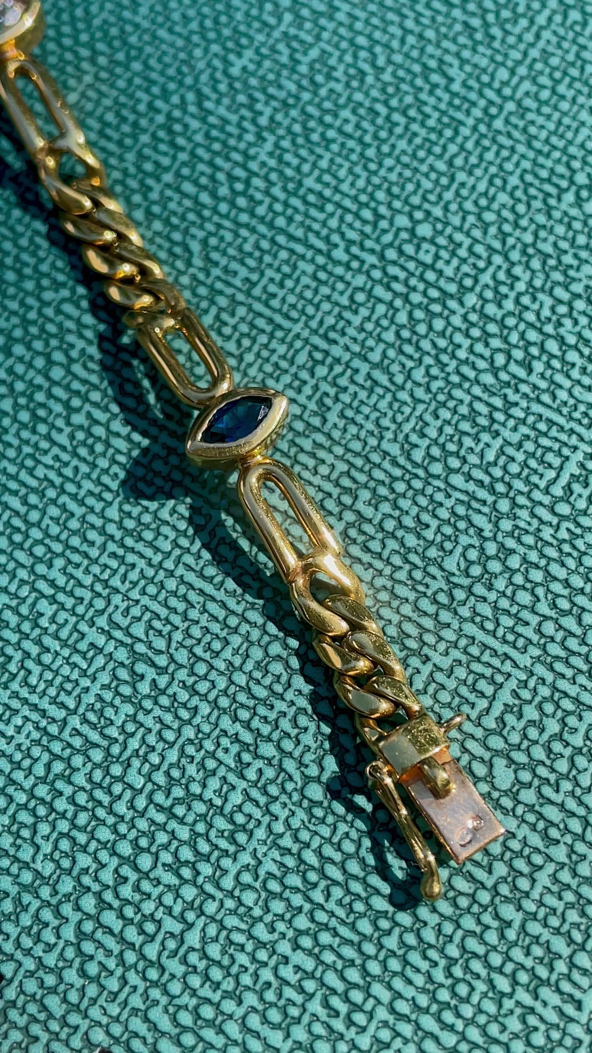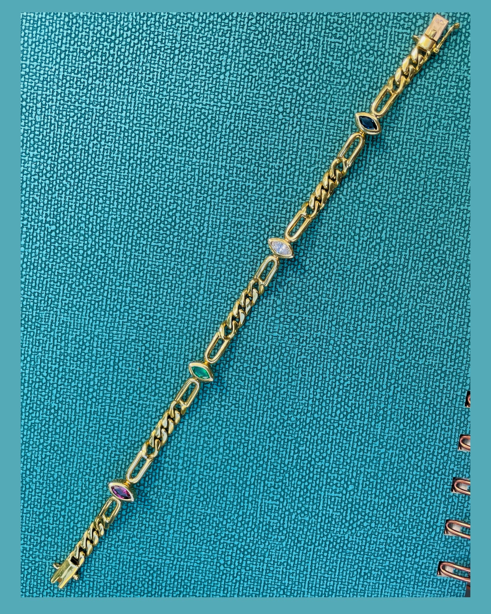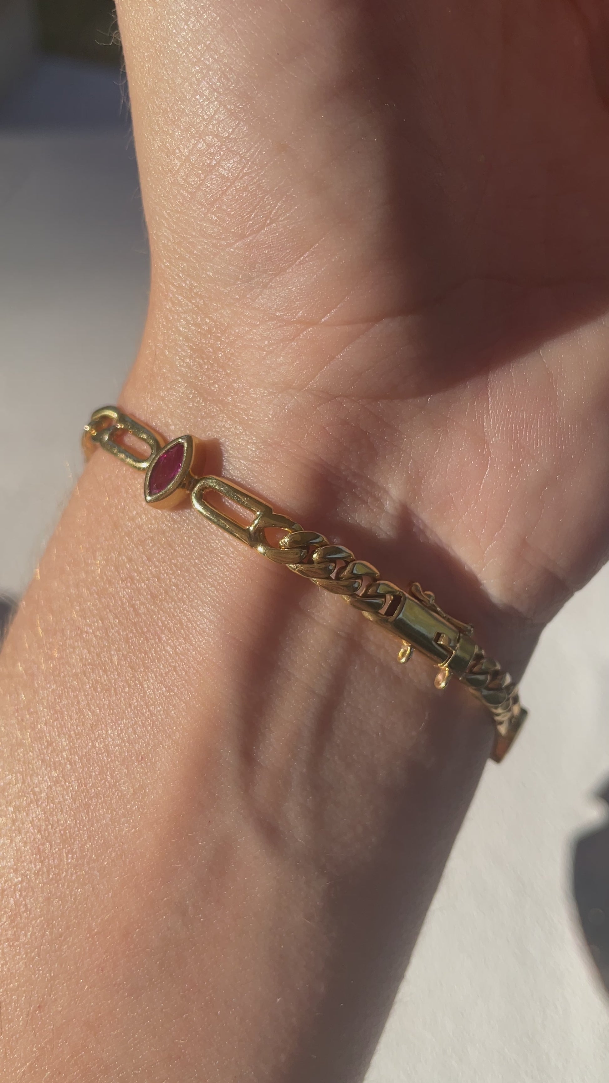 Vintage 18K marquise gemstone and curb bracelet, 7.25 inch