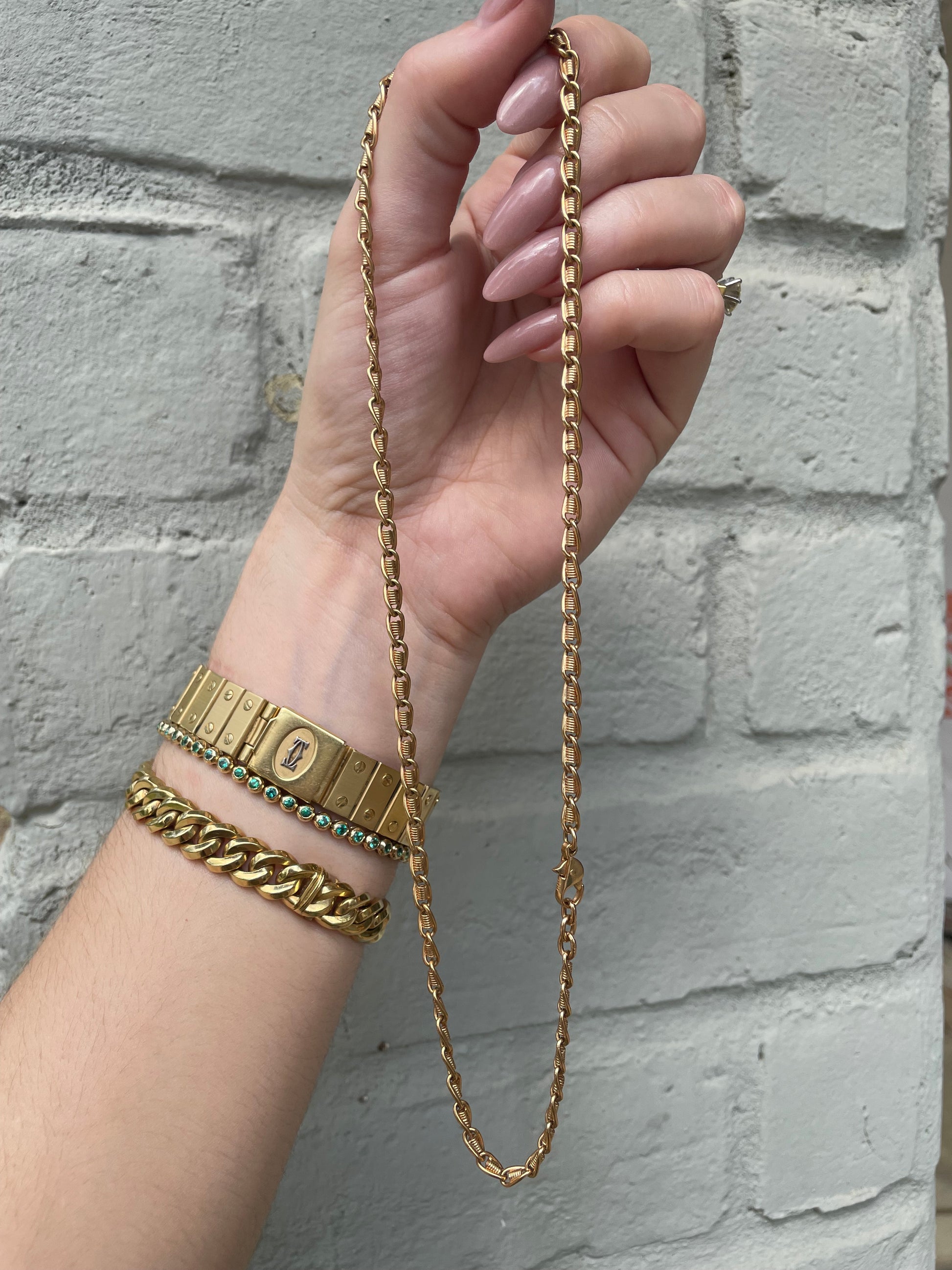 Vintage 18K solid coil oval link with cool lobster clasp, 19.5 inch long, 4mm wide, weighs 23.6 grams. Super pretty and unusual link!