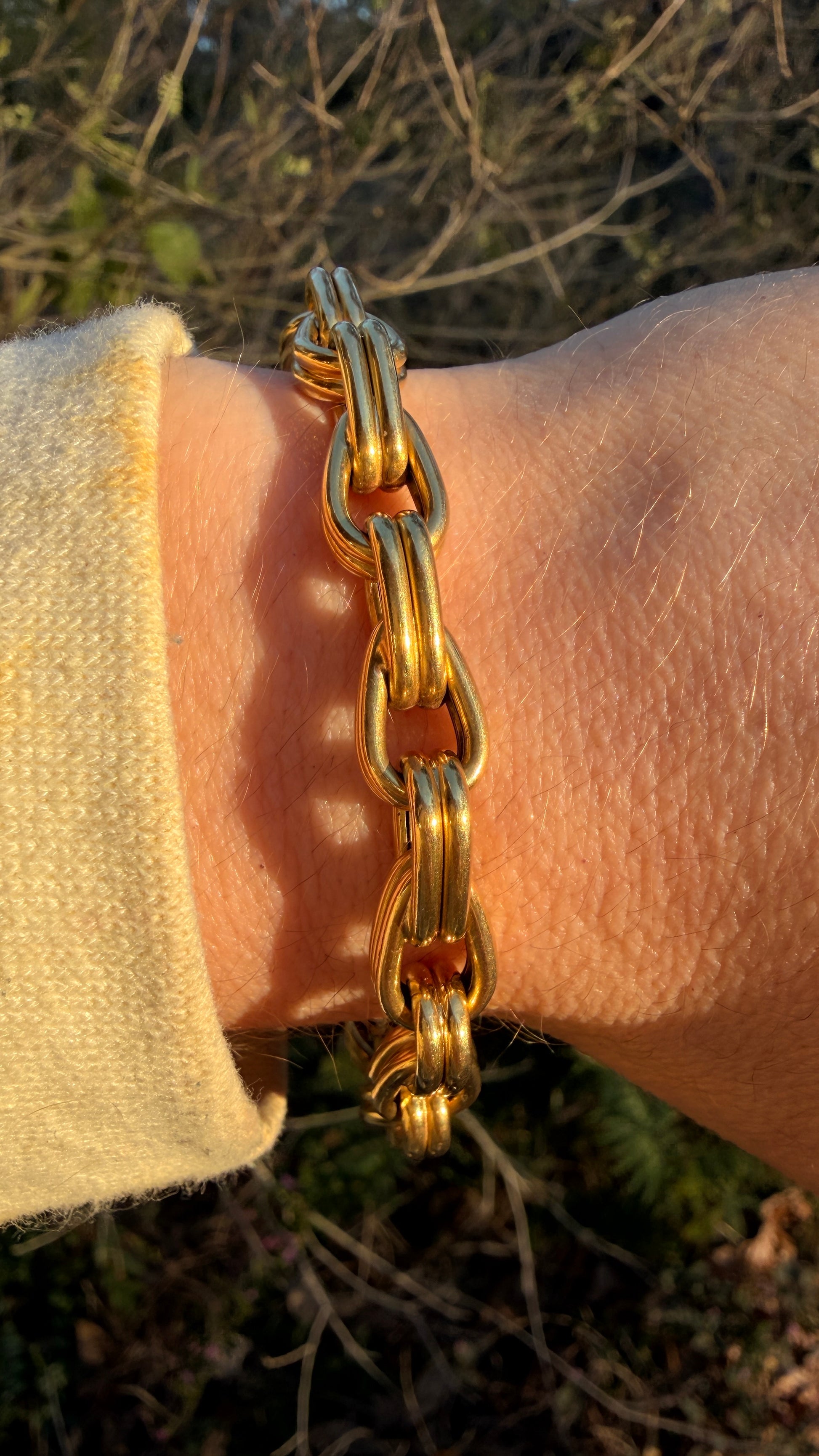 Vintage French yellow 18K round ribbed link bracelet, 7.25 inch fit