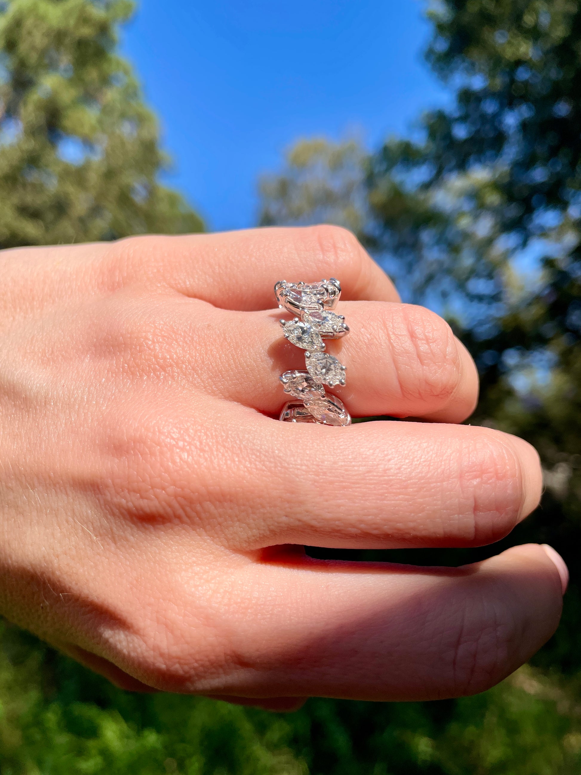 Vintage Platinum 8.1 ctw marquise cut diamond eternity, size 5.75 or 6