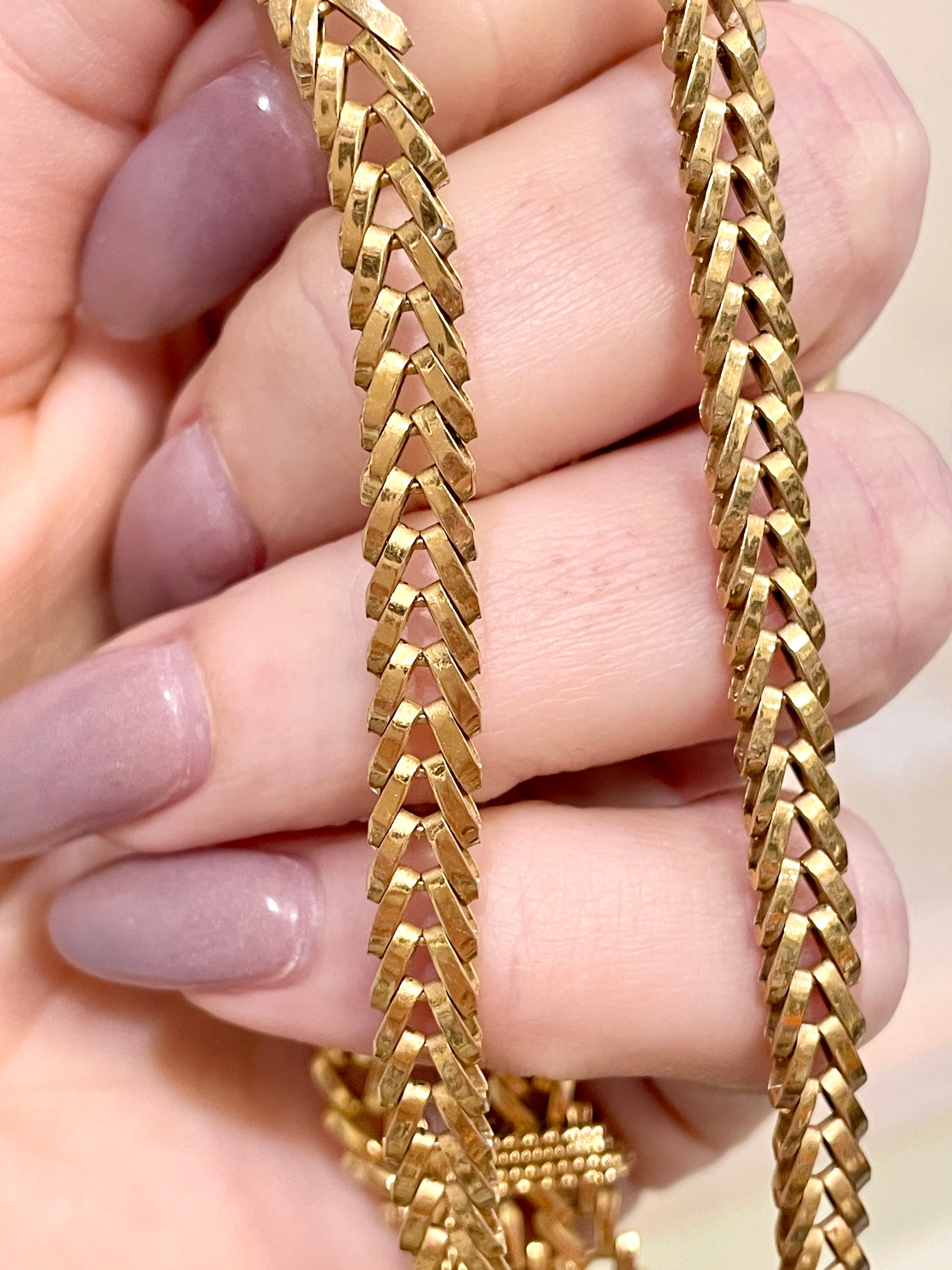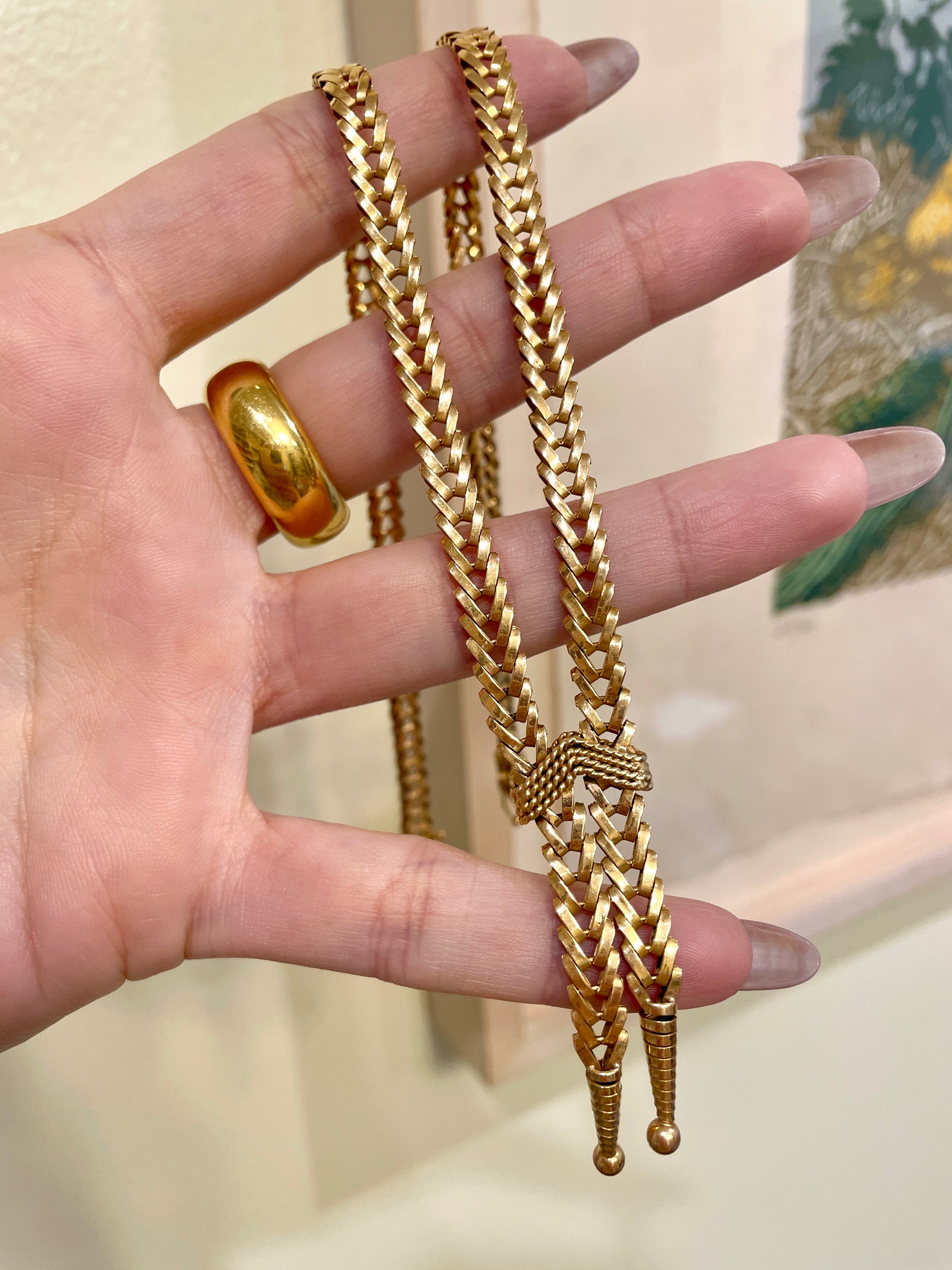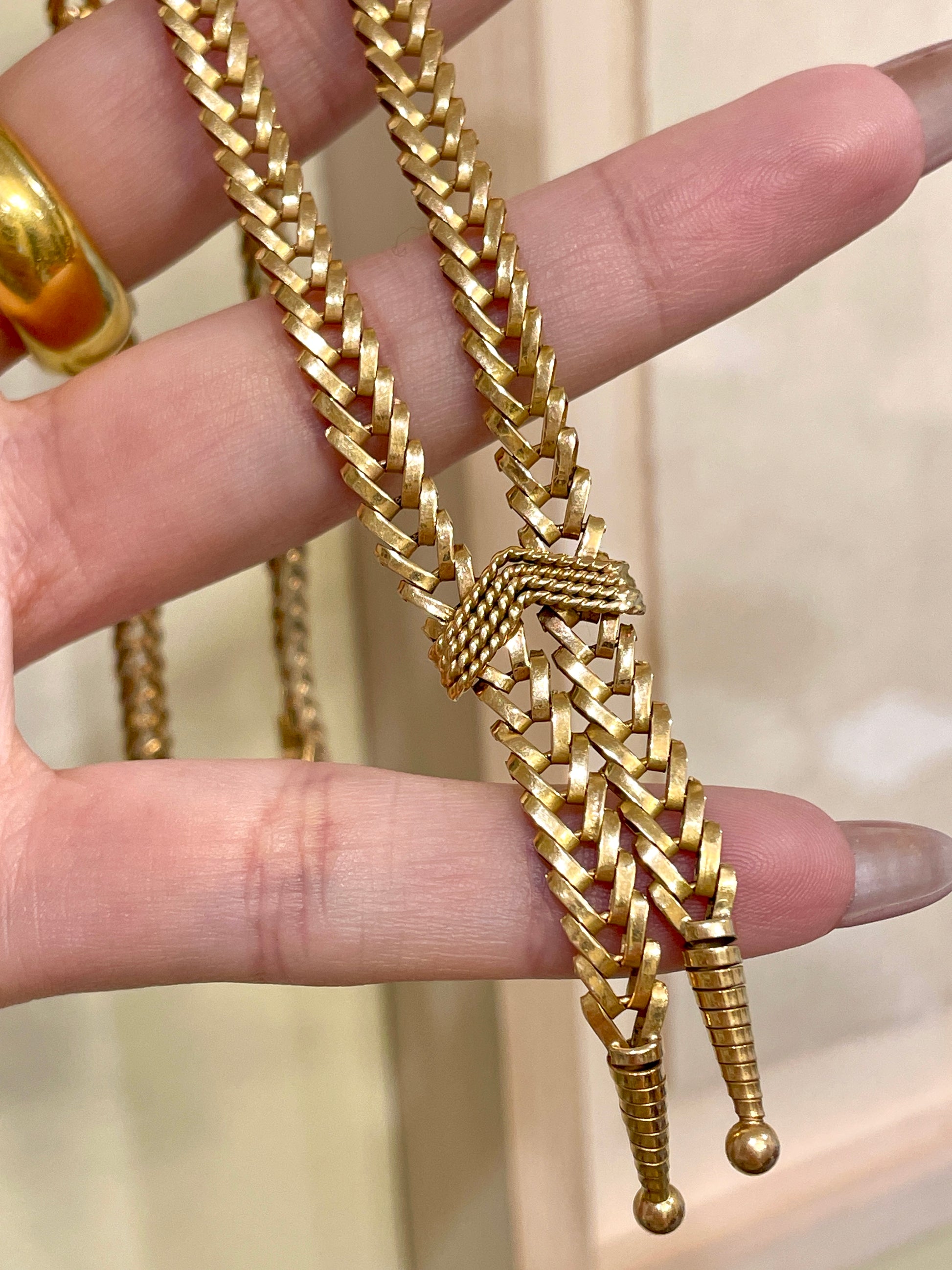 Vintage rosy yellow 18K gold woven lariat chain, 17 inch