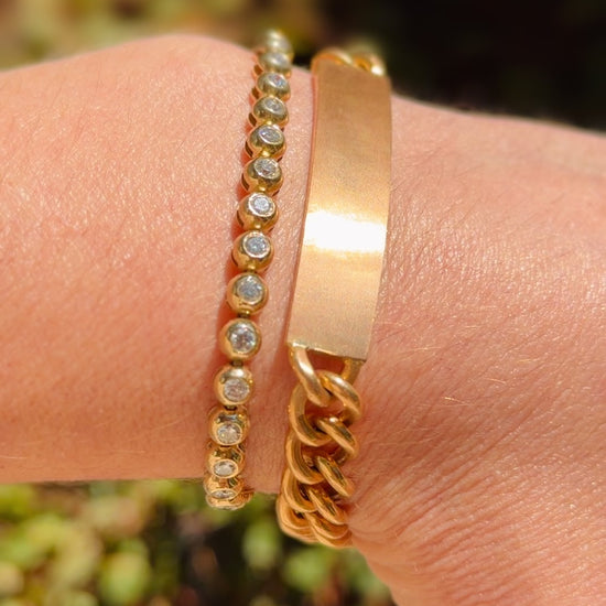 Vintage rosy 18K solid round curb link ID bracelet, 8.25 inch
