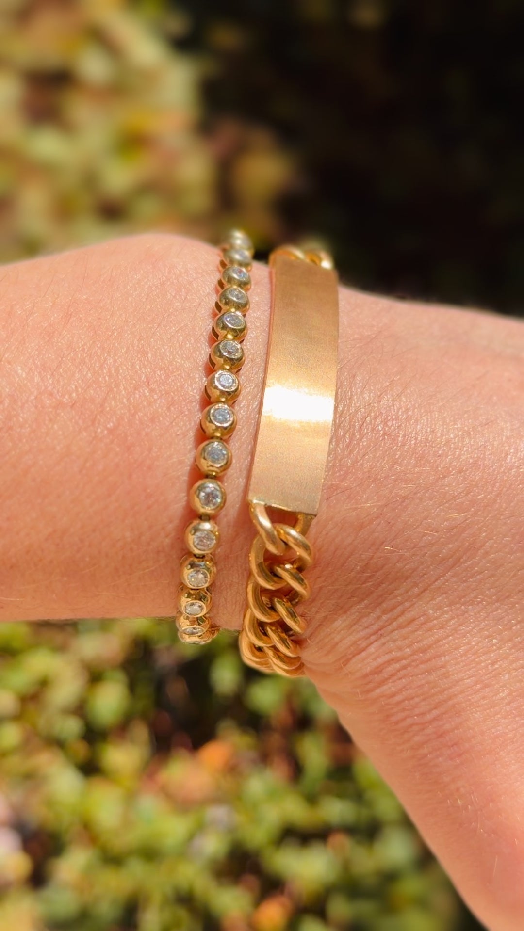 A gorgeous vintage rosy 18K solid round curb link ID bracelet, 8.25 inch (contact us about sizing, can be done for $50 extra before shipping)