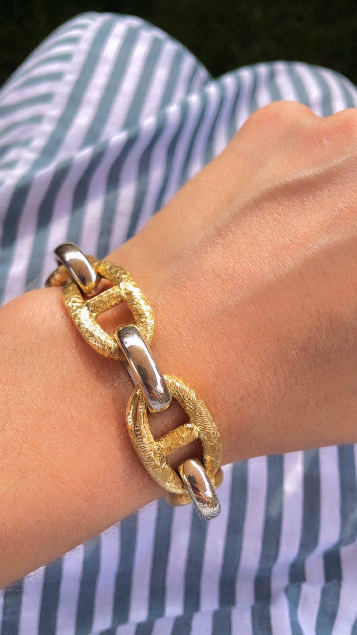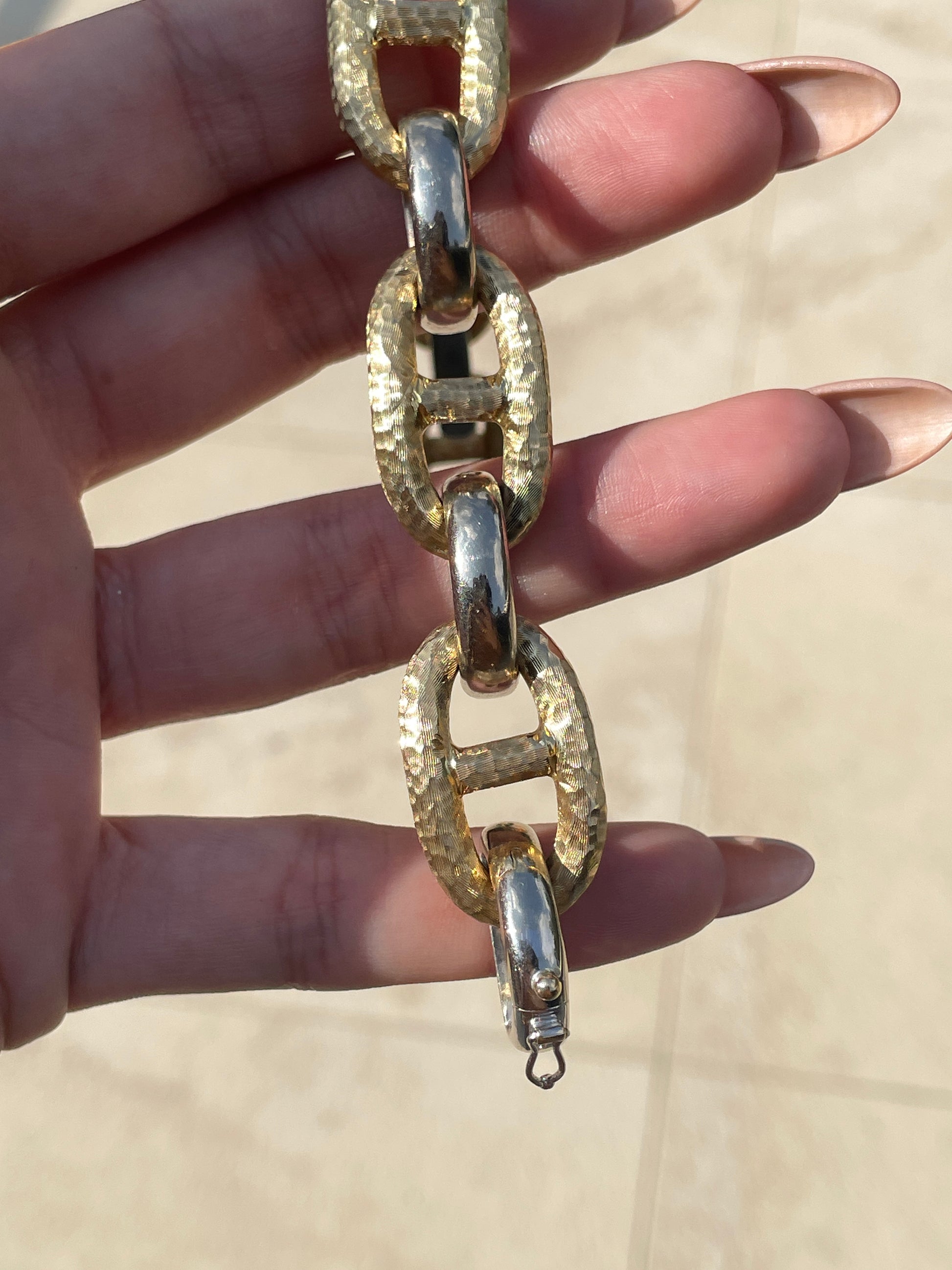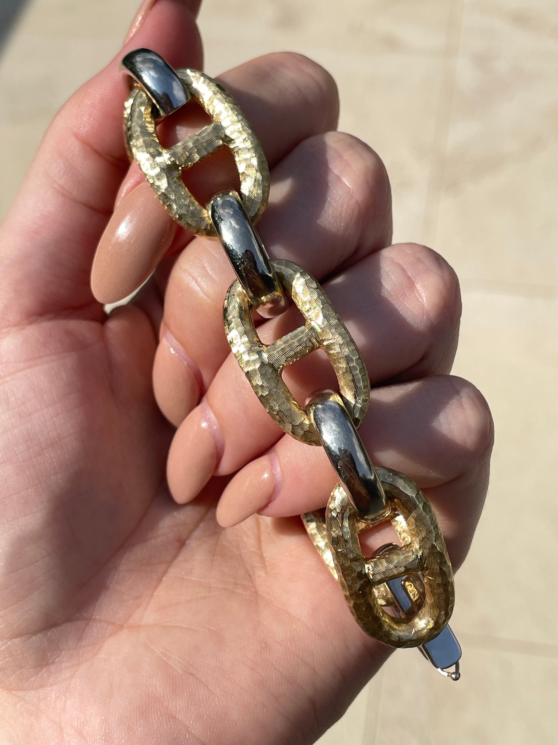 Vintage two tone 14K gold wide mariner bracelet, 8 inch