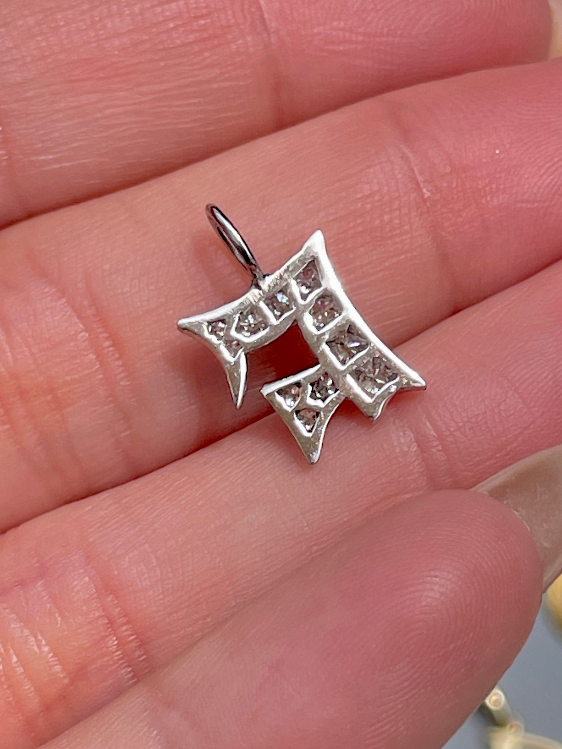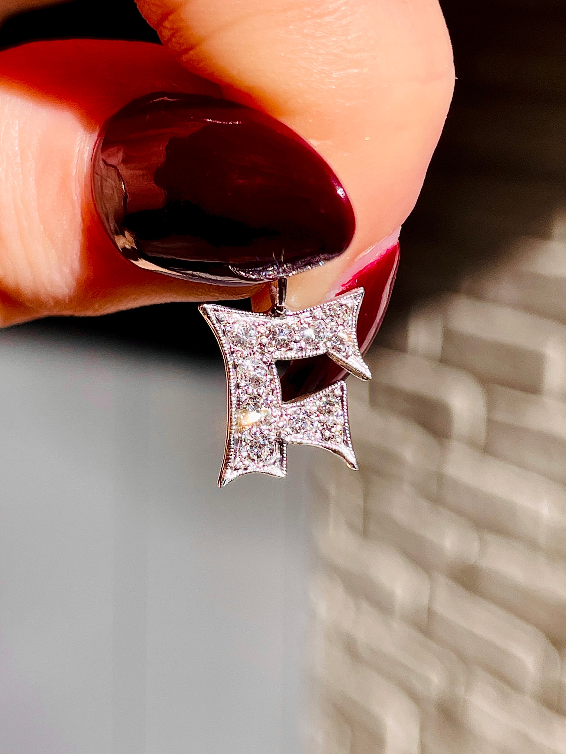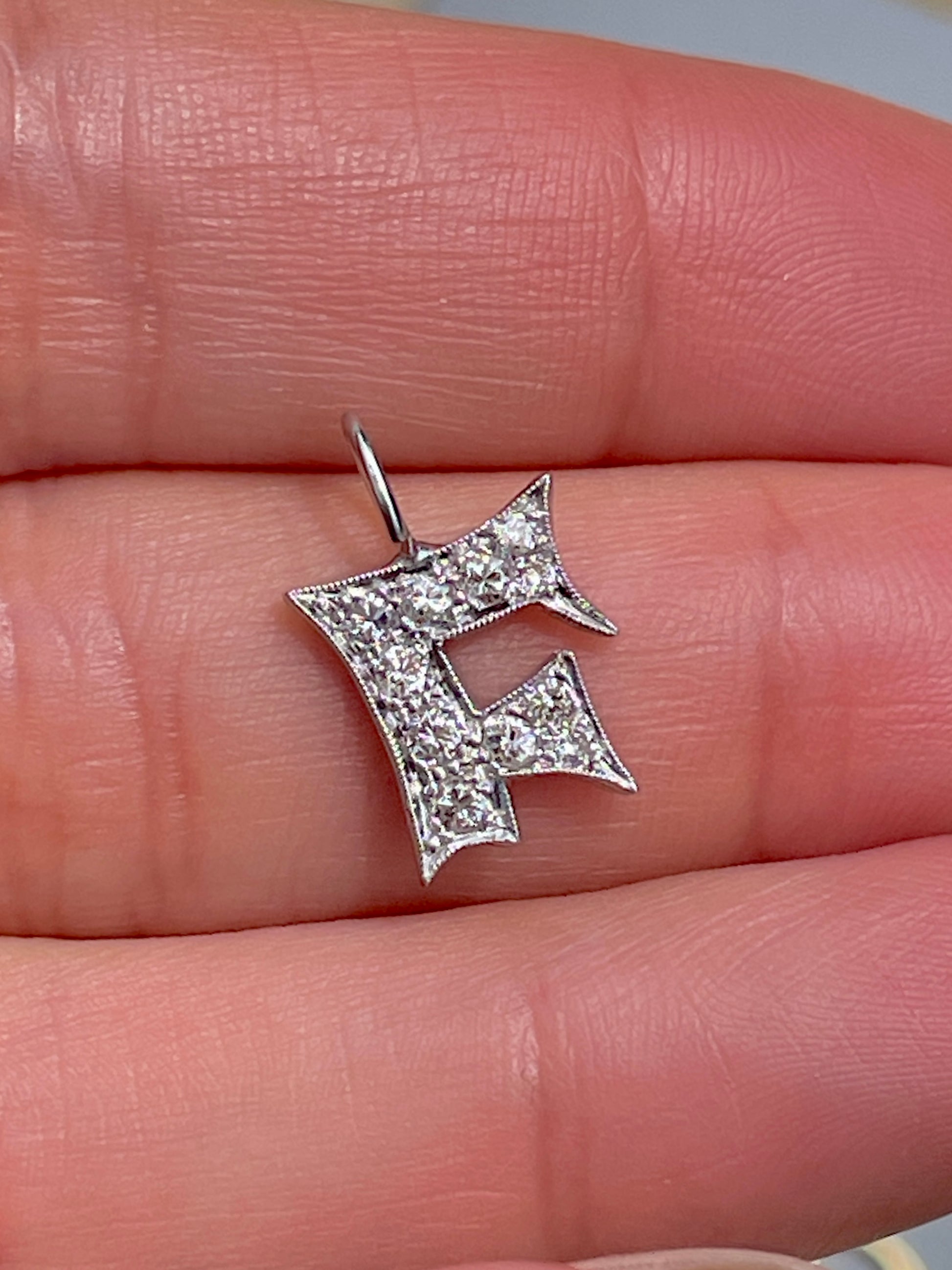 Vintage white 14K letter F charm with approx .33 ctw diamonds