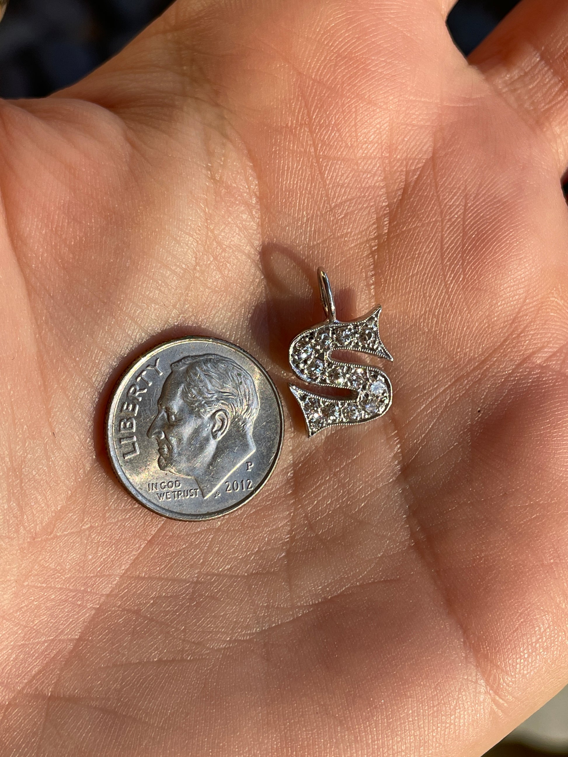 Vintage white 14K letter S charm with .39 ctw diamonds