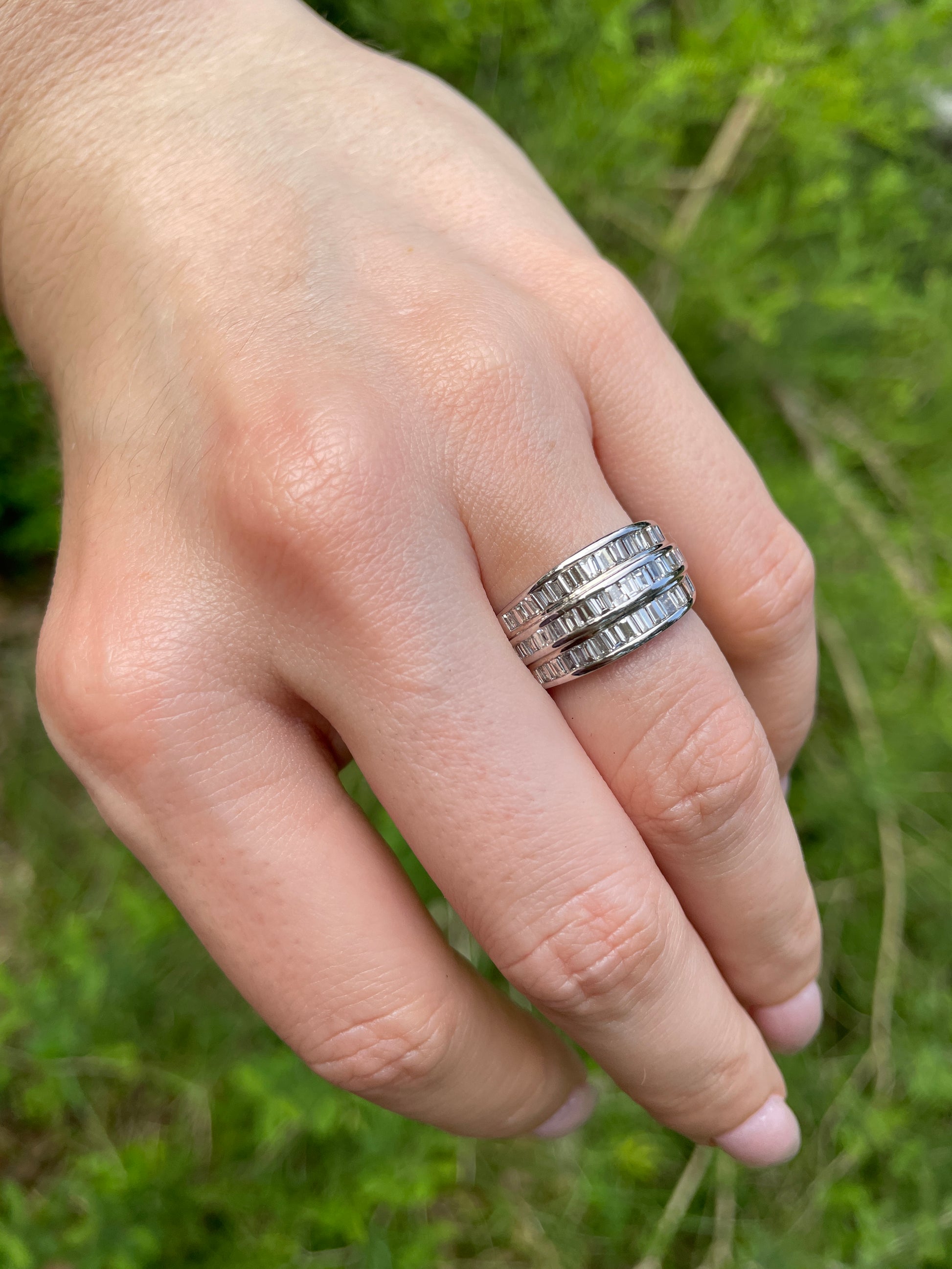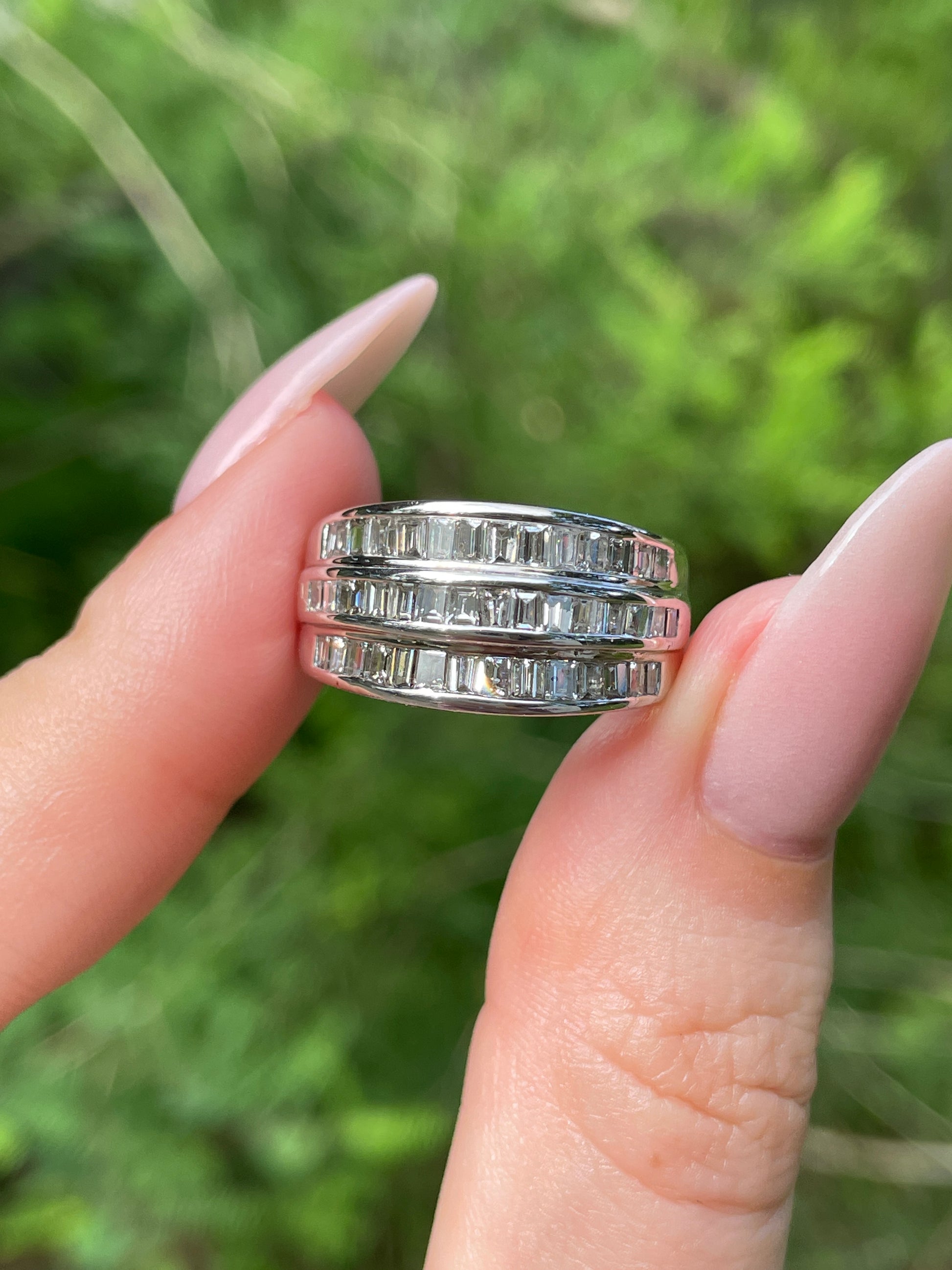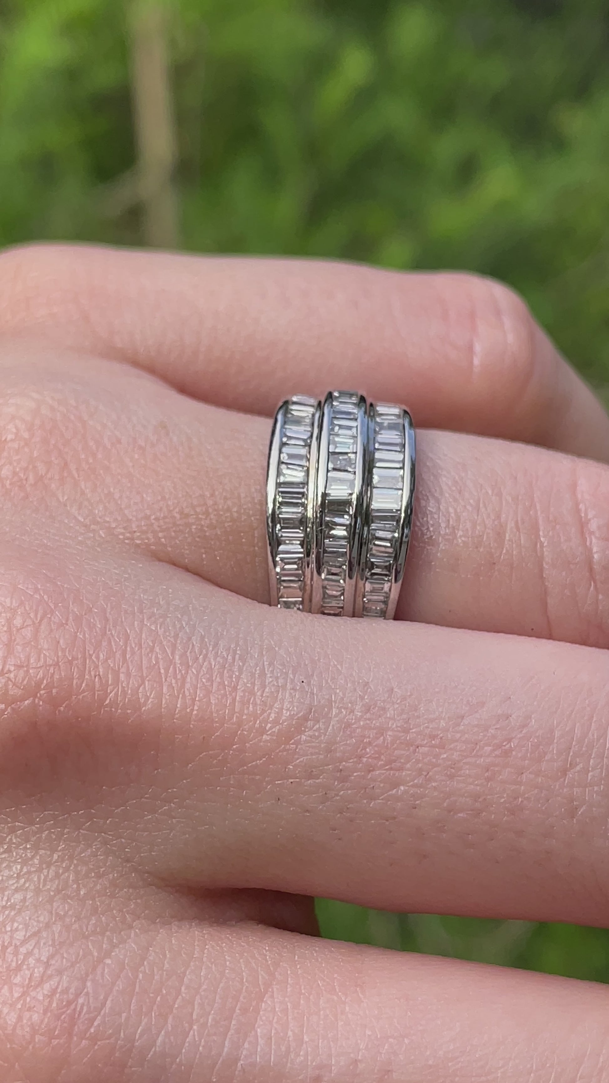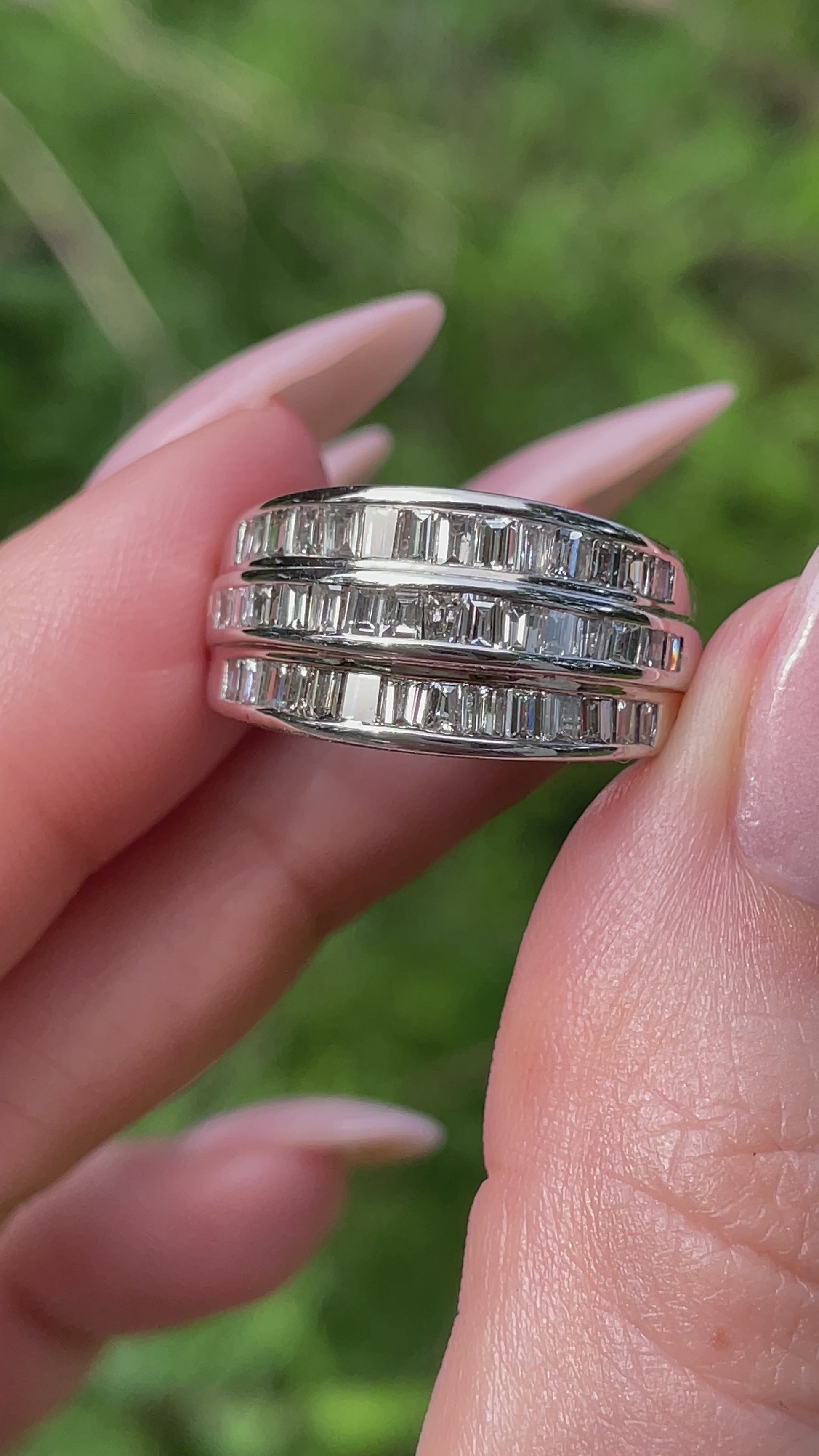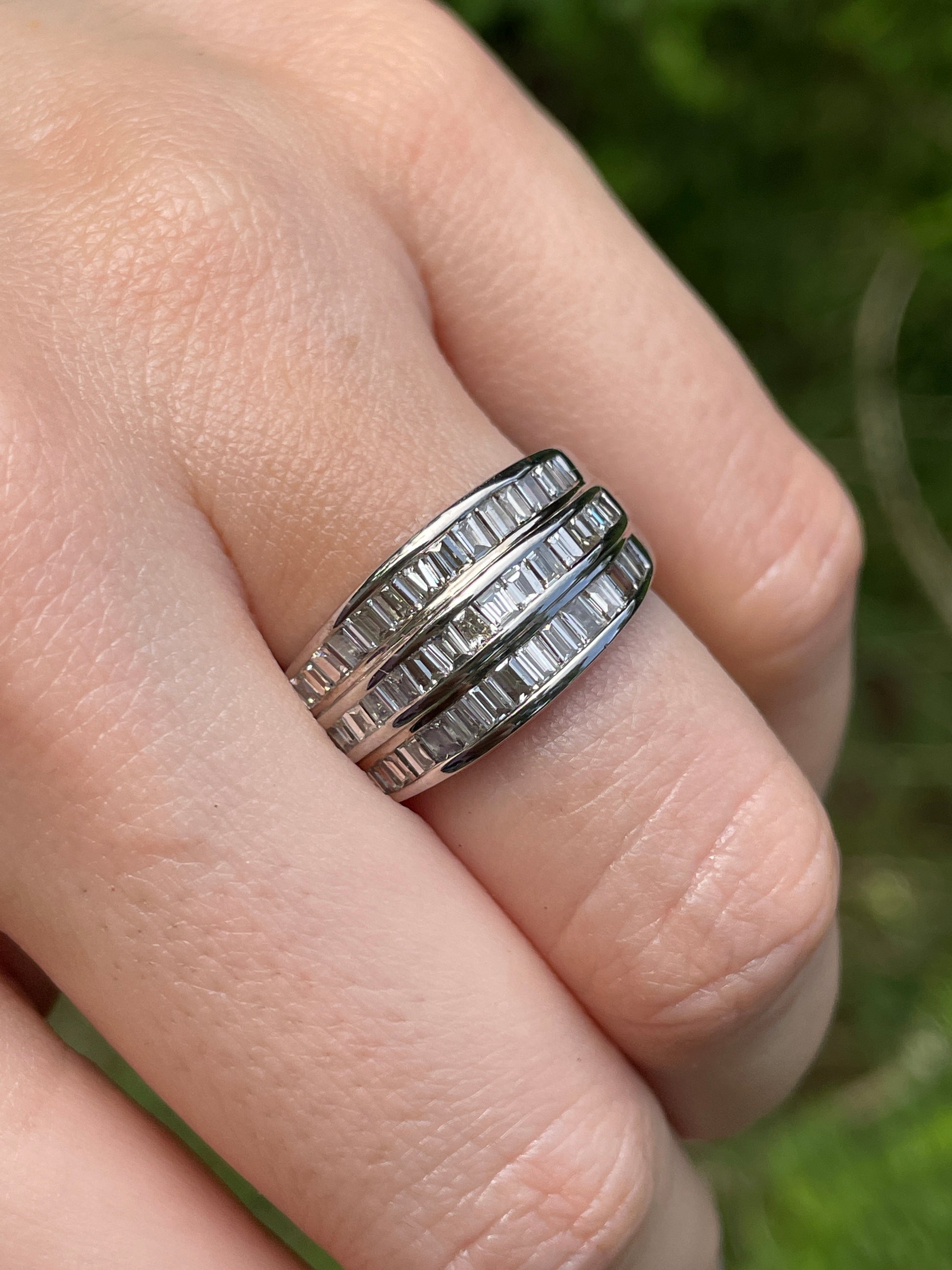 Vintage White 18K triple row diamond baguettes ring, Size 5.75