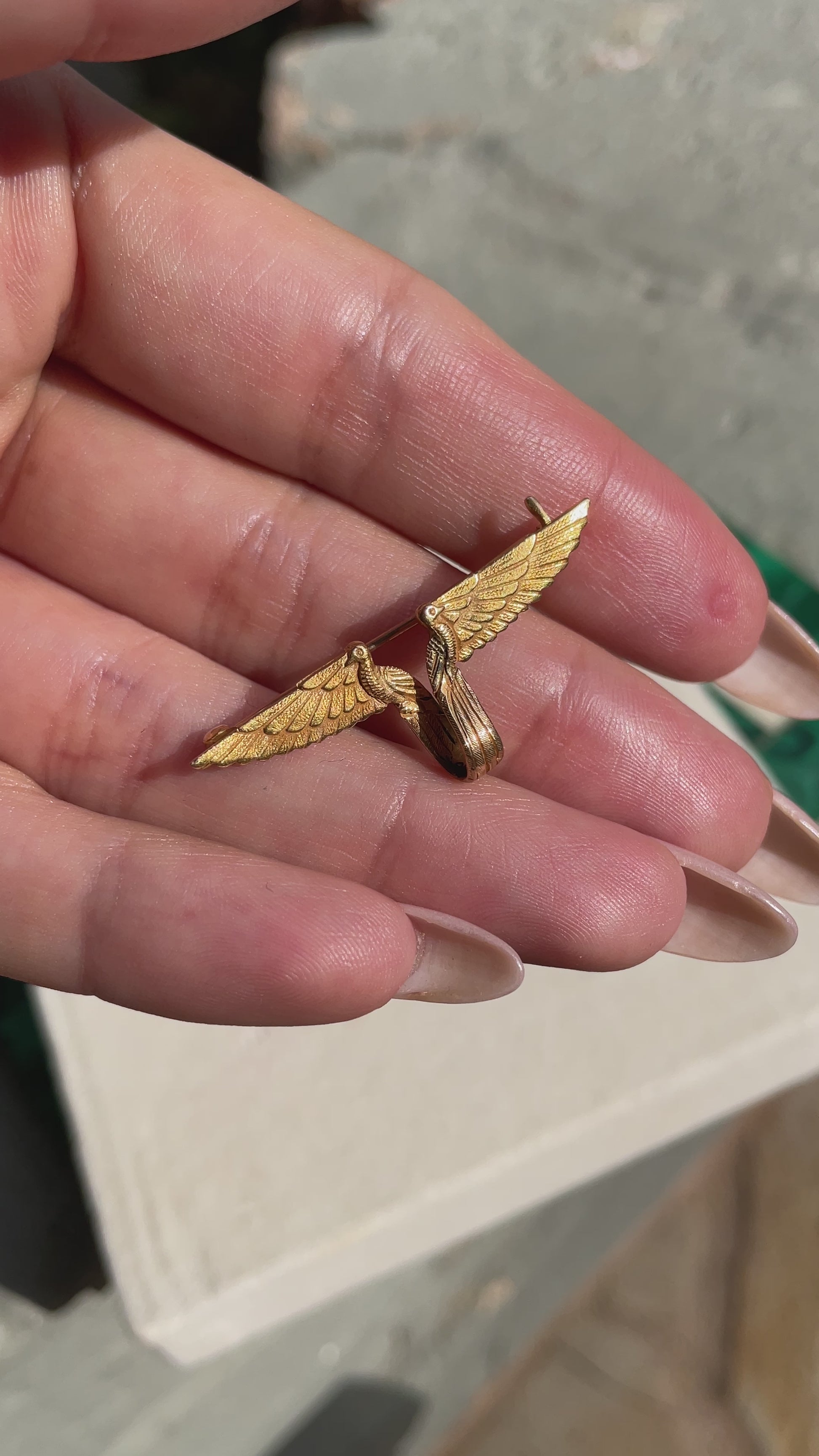 Vintage yellow 10K pin with birds and outstretched wings, 1.5 inch