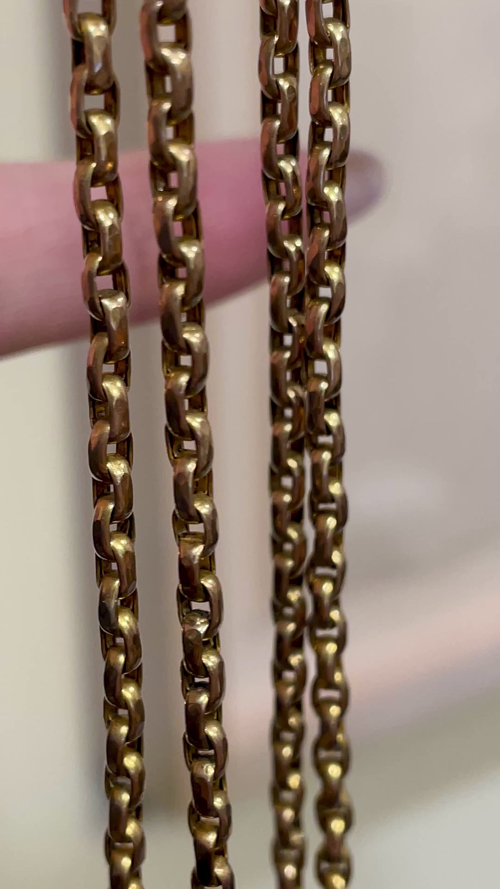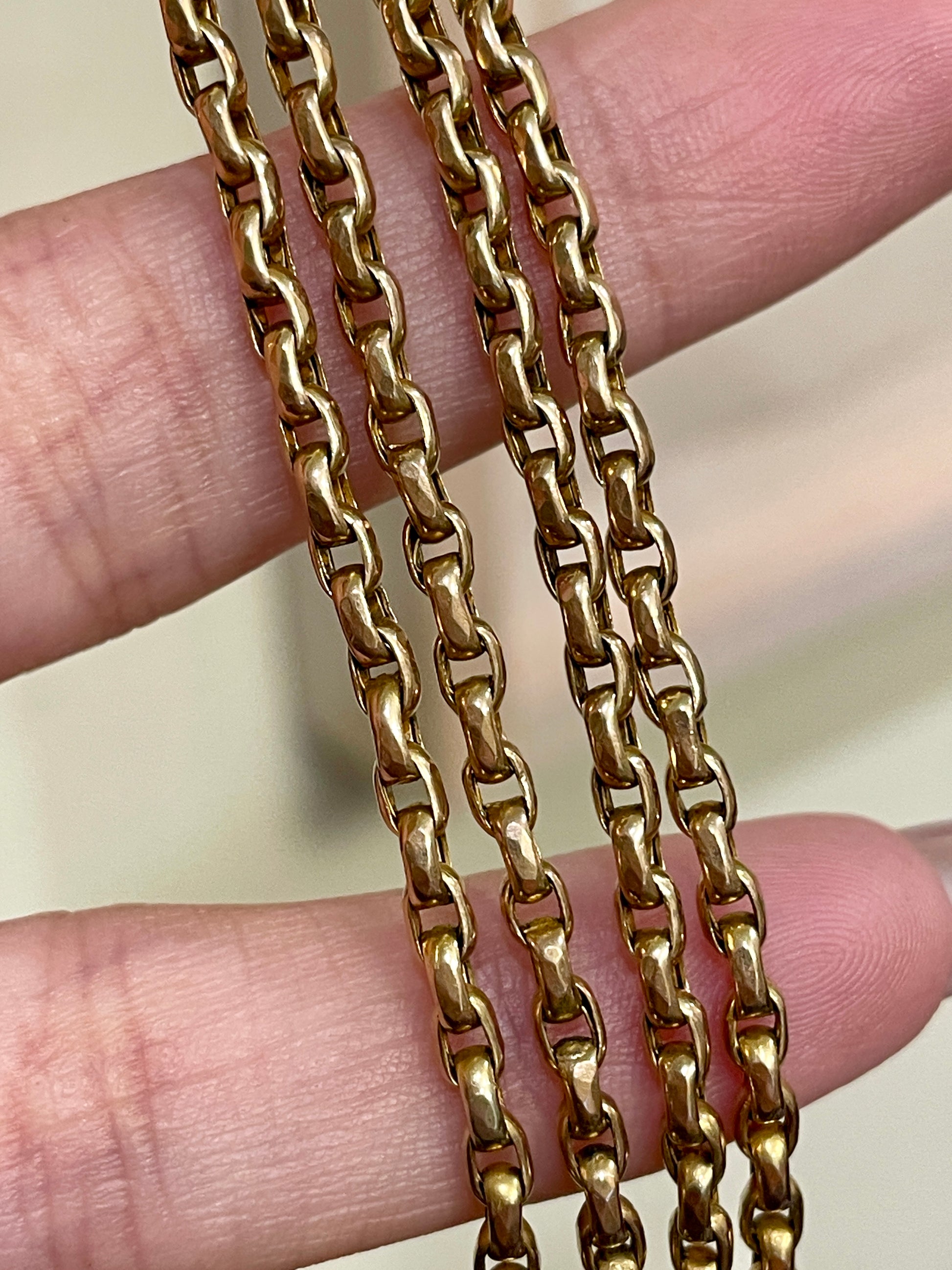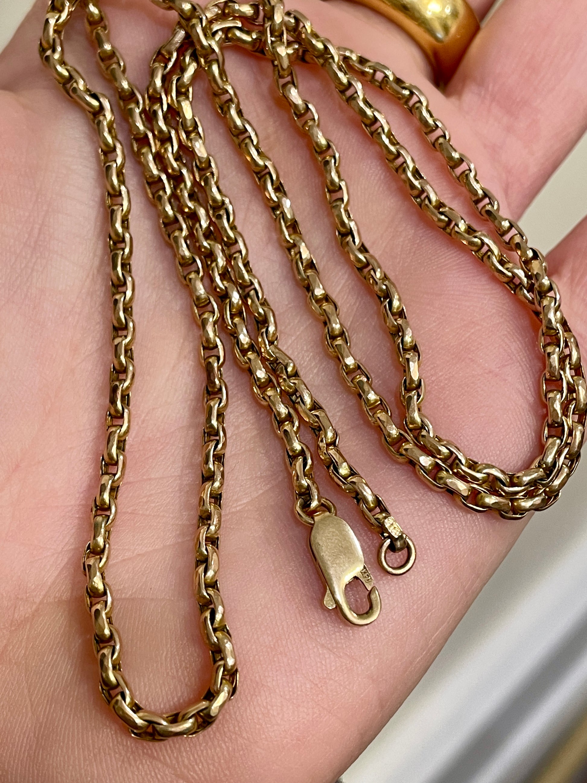 Antique rosy yellow 10K gold belcher link chain with 14K gold lobster clasp, 26.5 inch