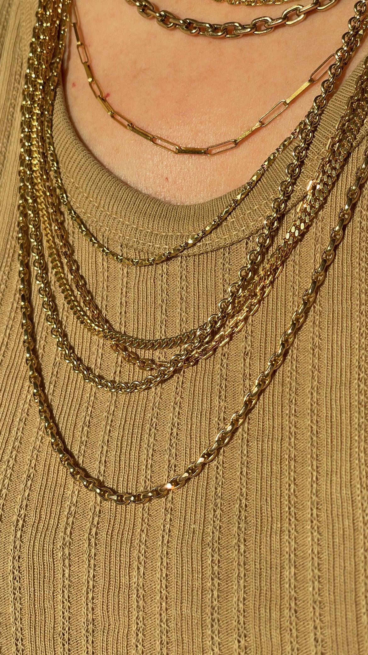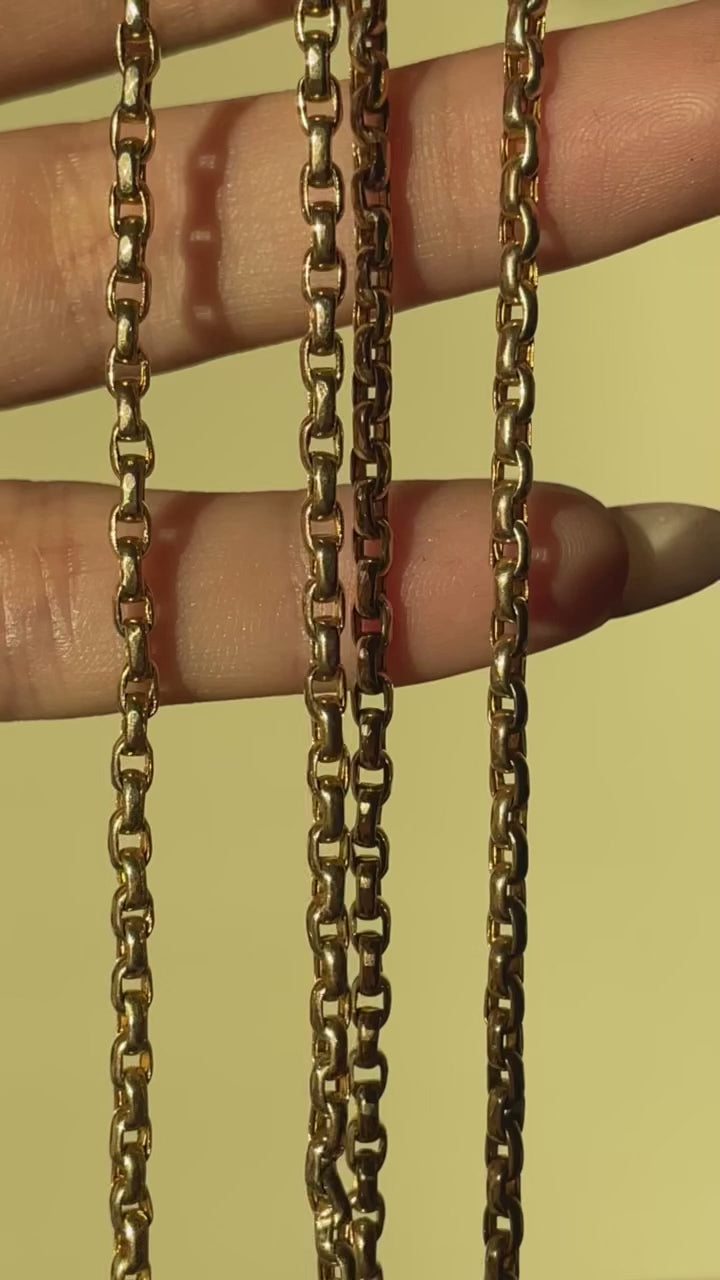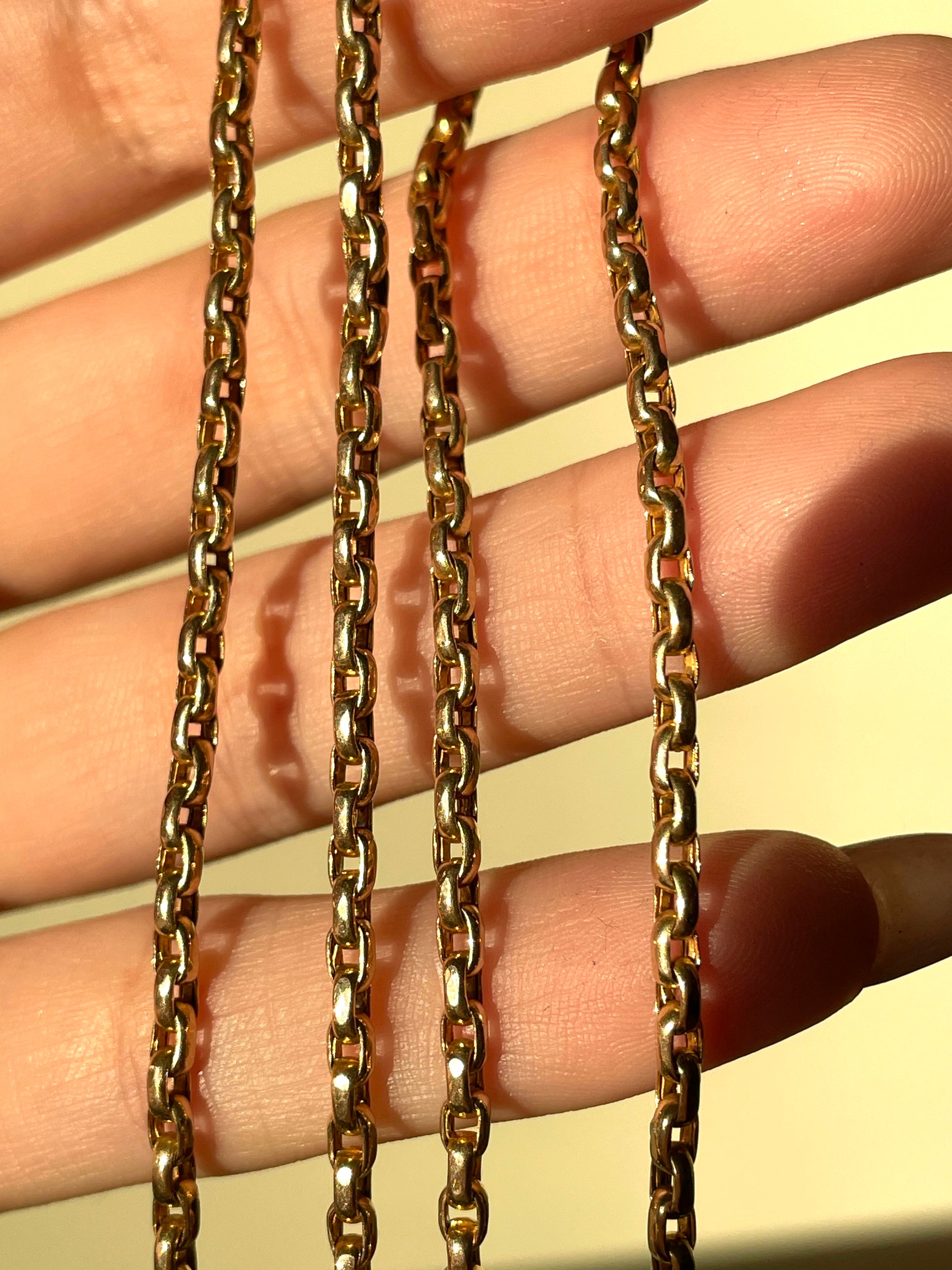 Antique rosy yellow 10K gold belcher link chain with 14K gold lobster clasp, 26.5 inch