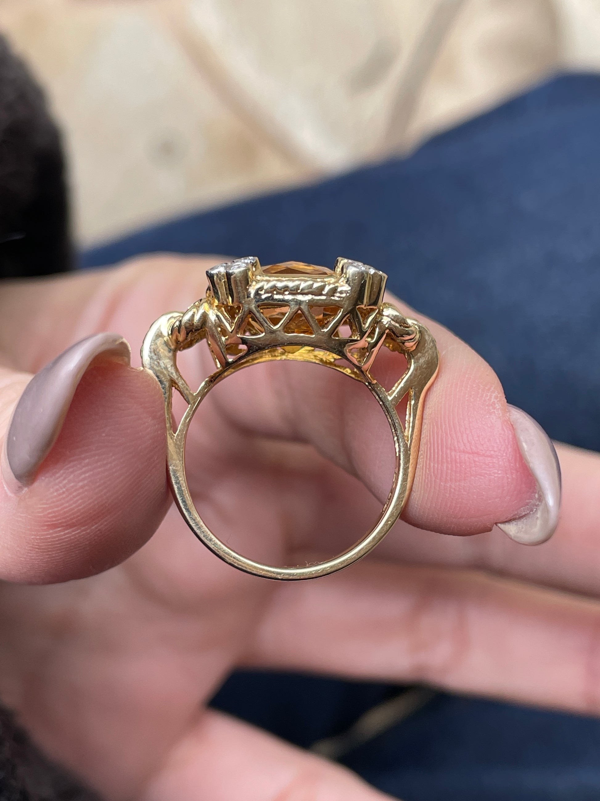 Vintage yellow 14K 1.8 ctw citrine and .12 ctw diamond ring, size 7