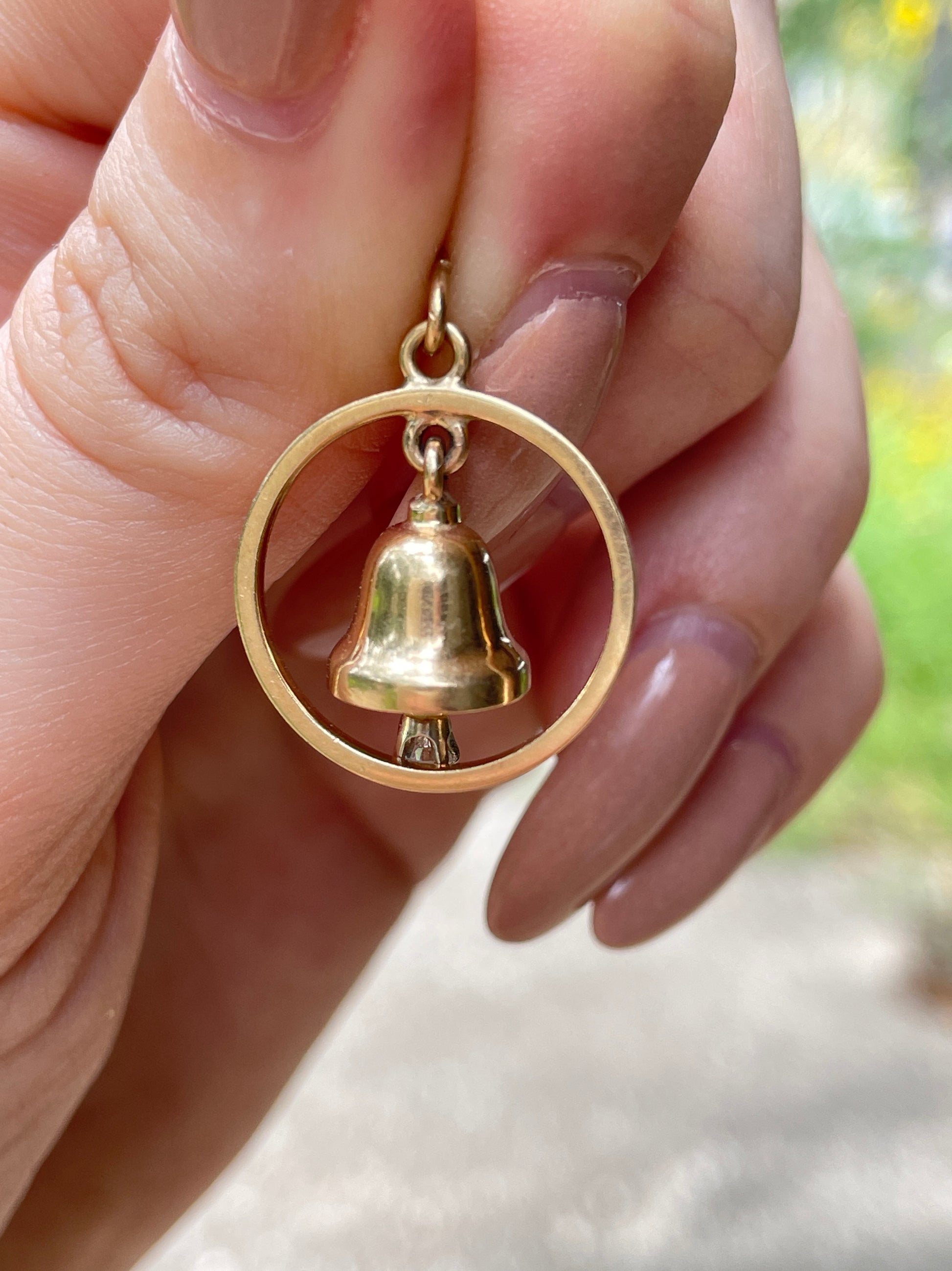 Vintage yellow 14K approx .07 ctw diamond dangling bell charm