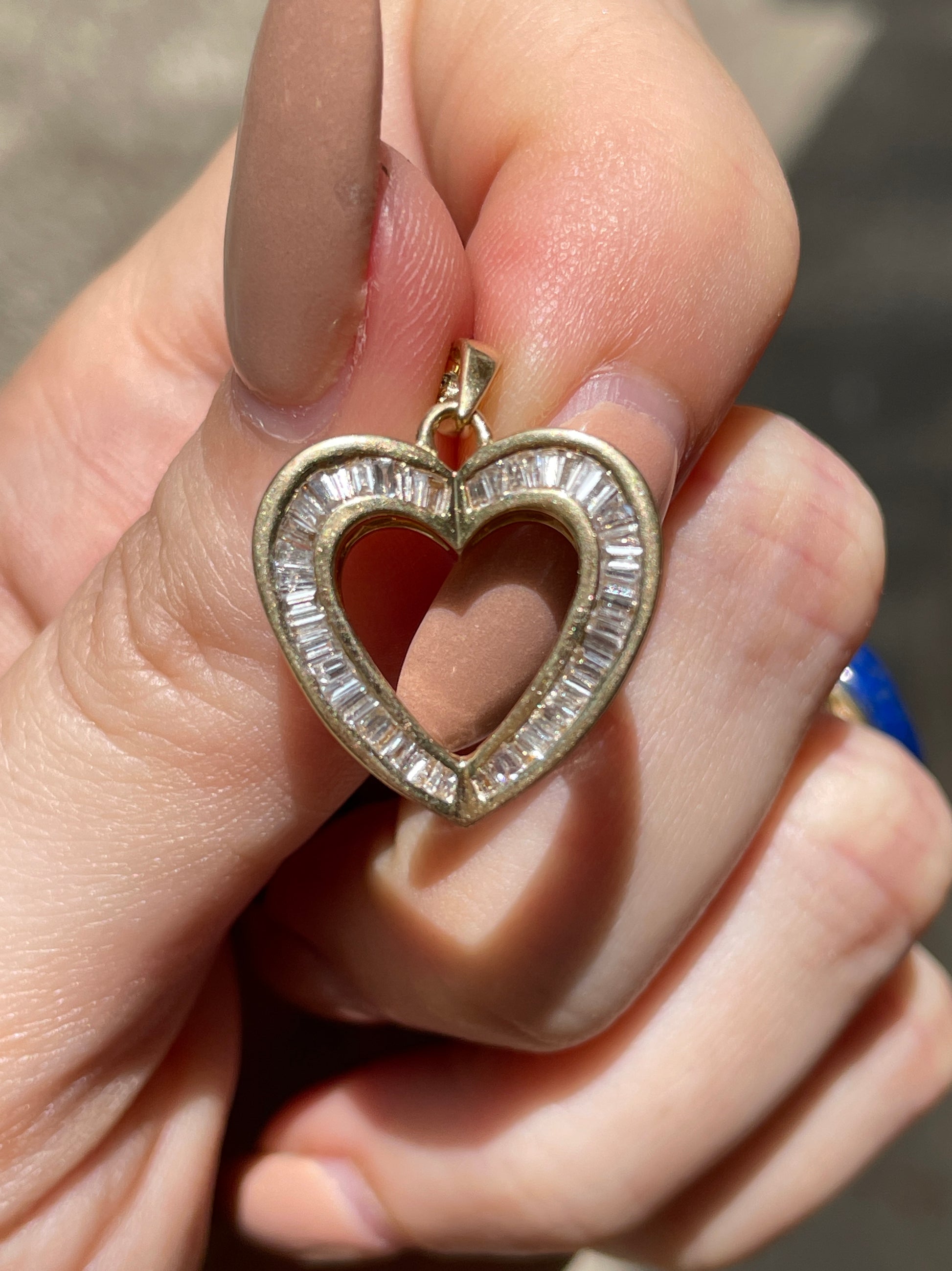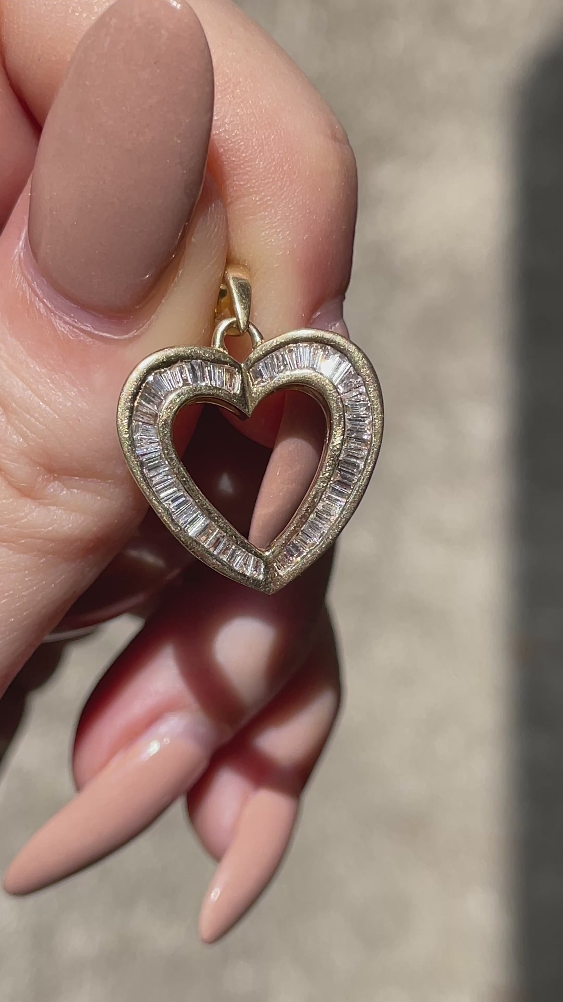 Vintage yellow 14K approx .7 ctw diamond baguette heart pendant