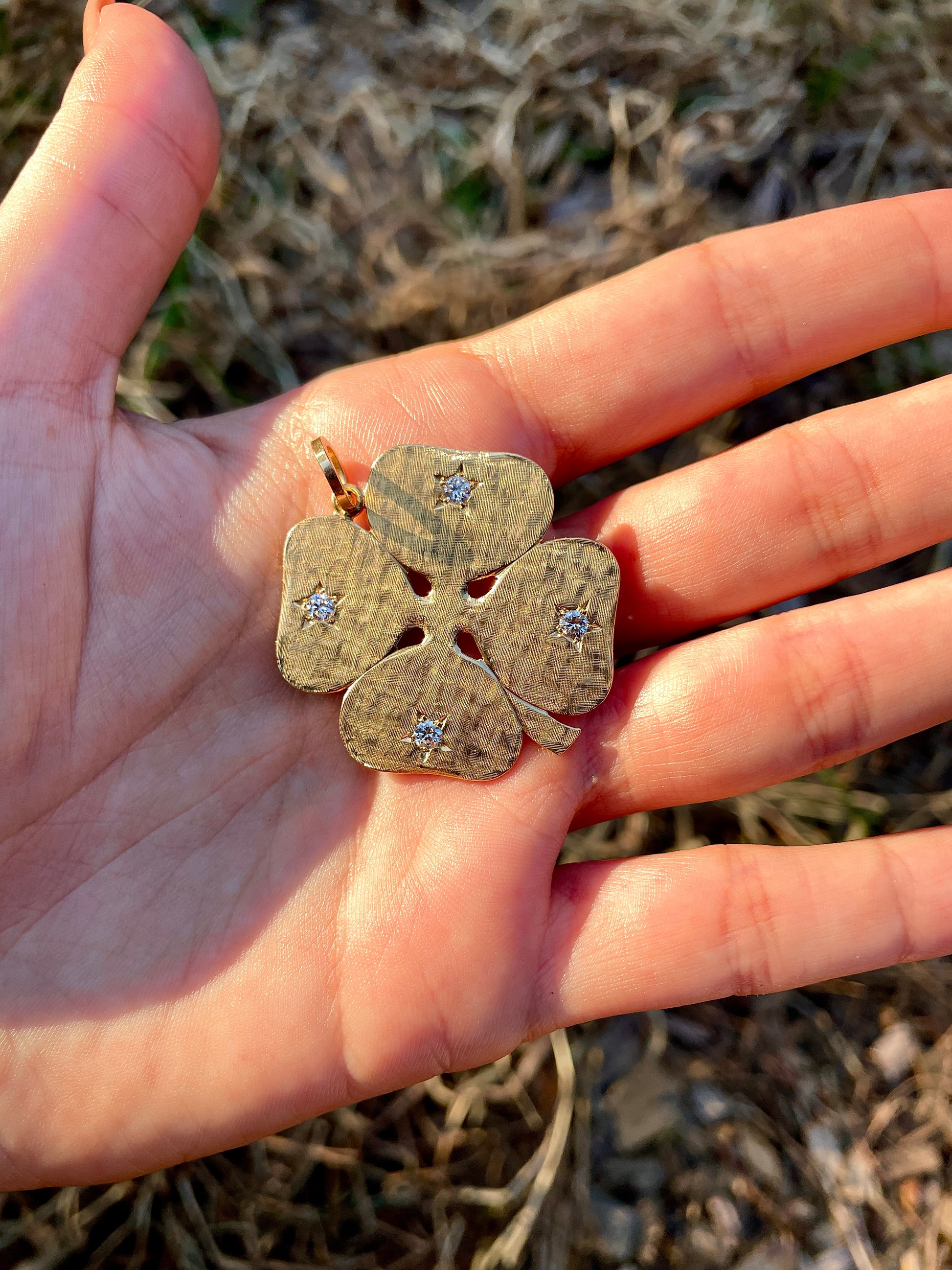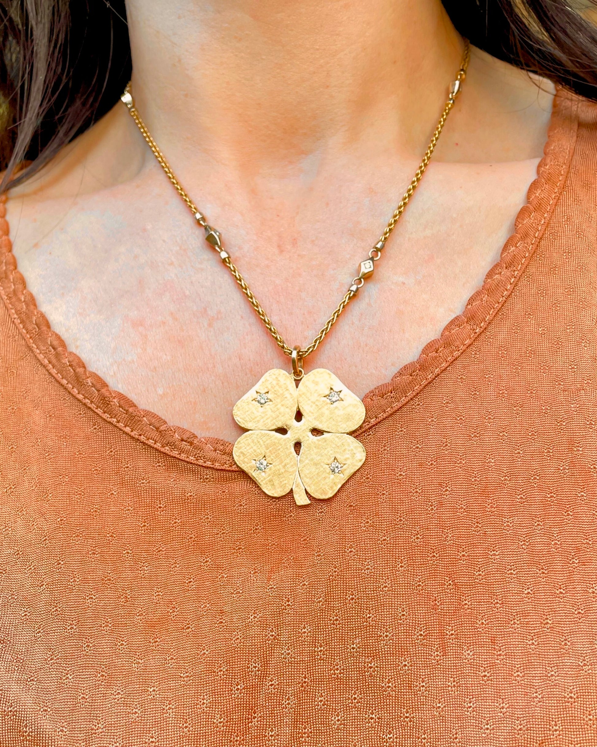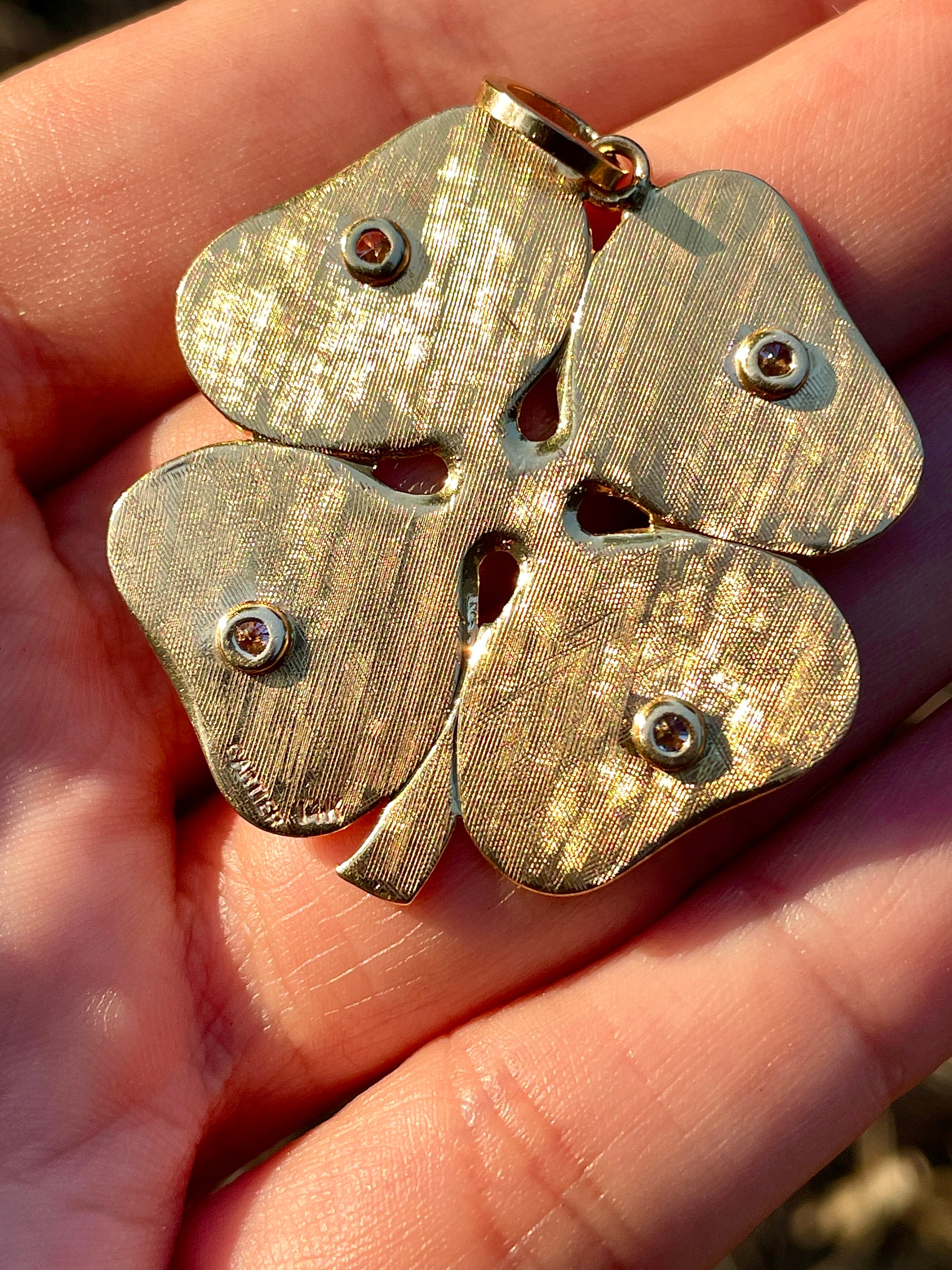 Vintage yellow 14K Cartier .25ctw star set diamond clover pendant