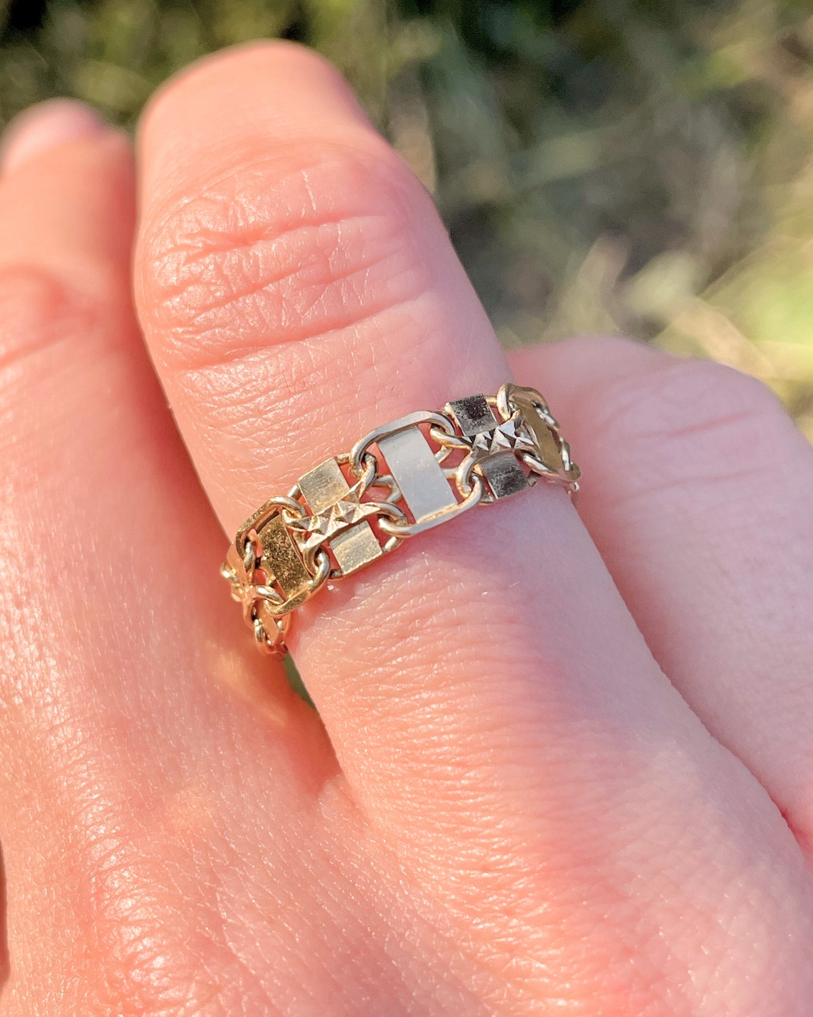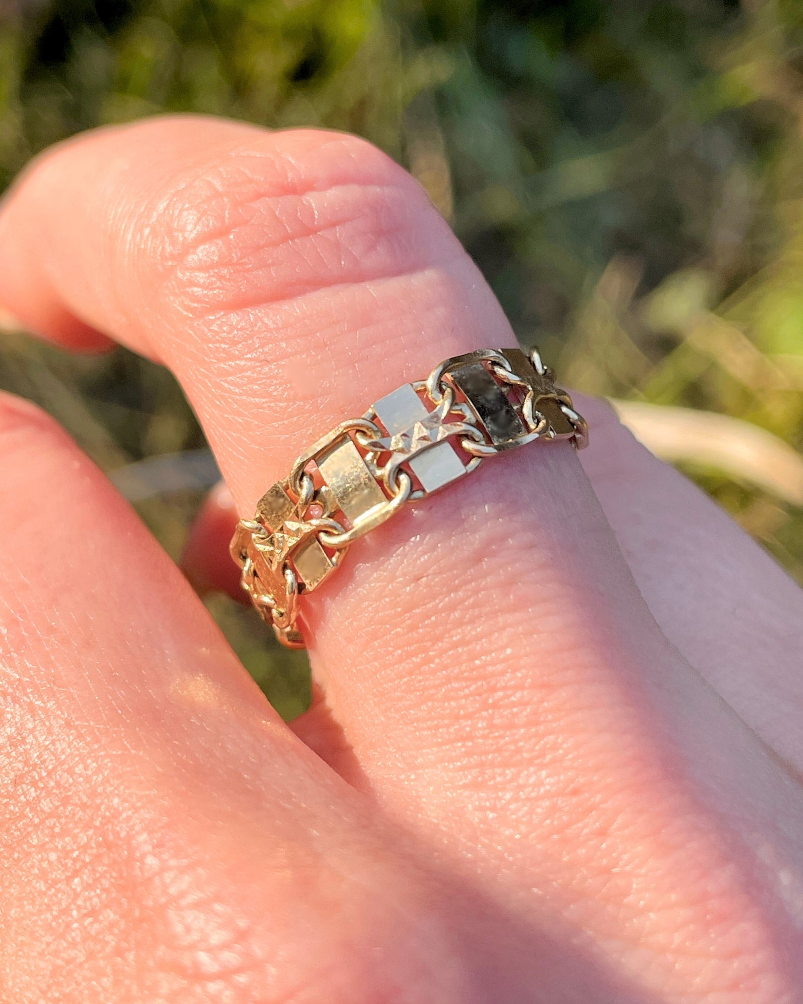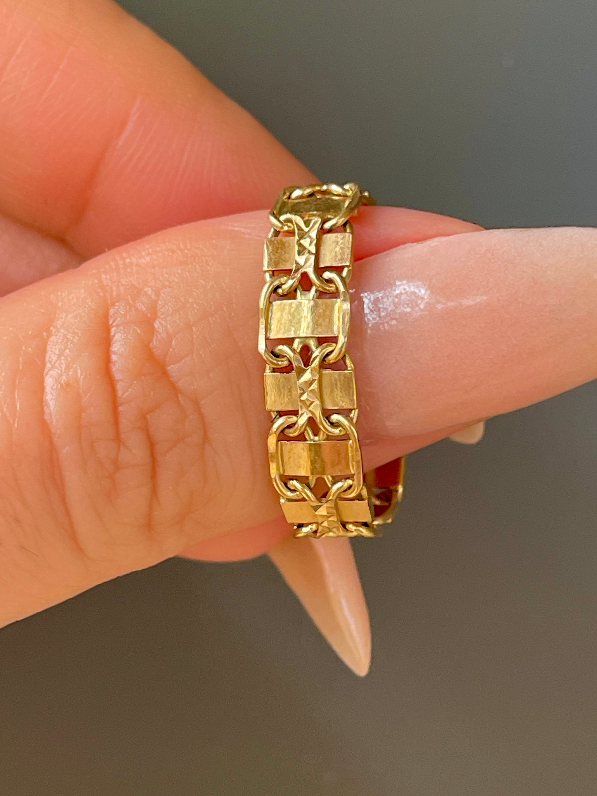 Vintage yellow 14K fancy link chain ring, size 7.5