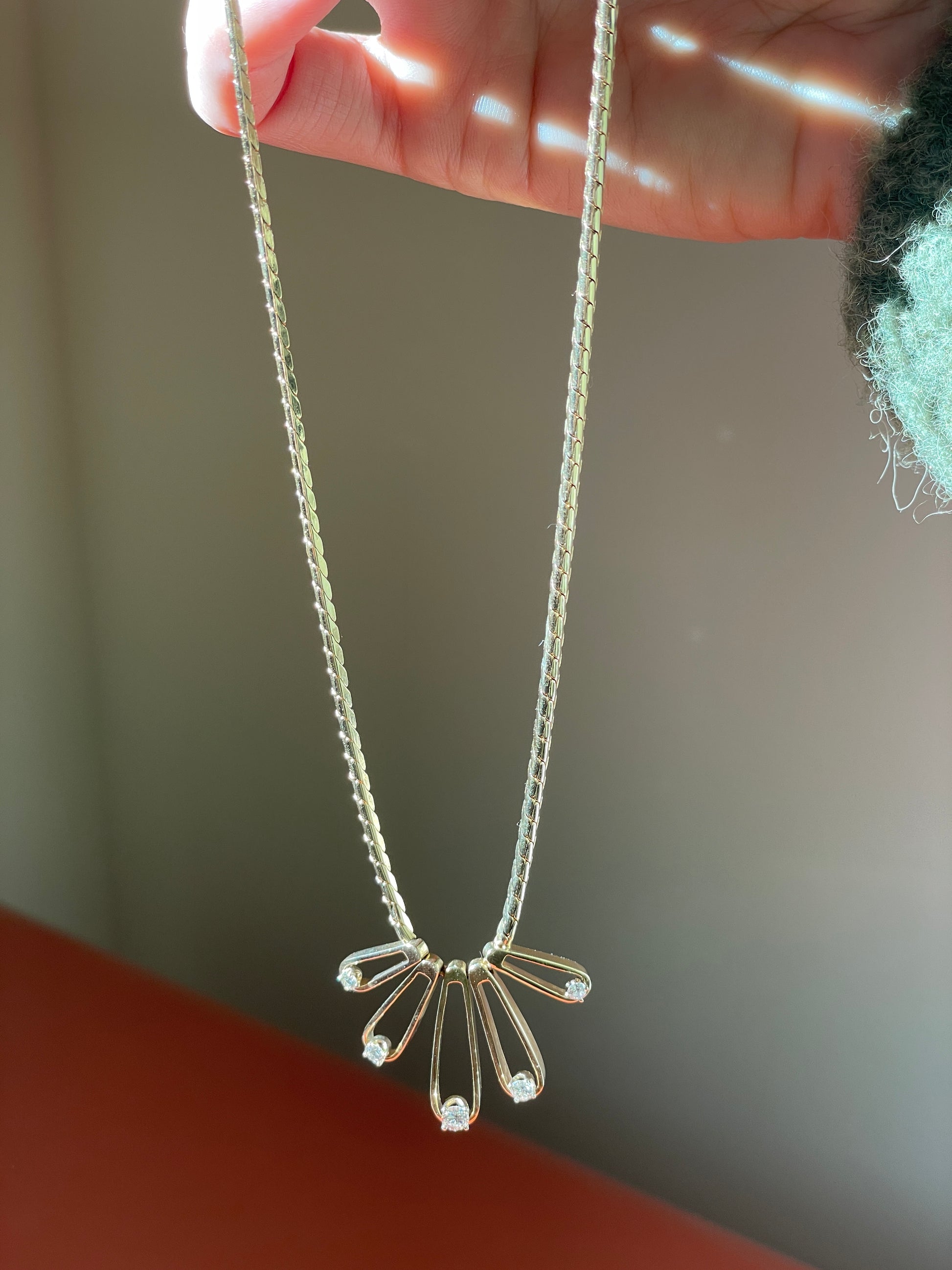 Vintage yellow 14K gold .7 ctw diamond articulated petal chain, 16.5 inch