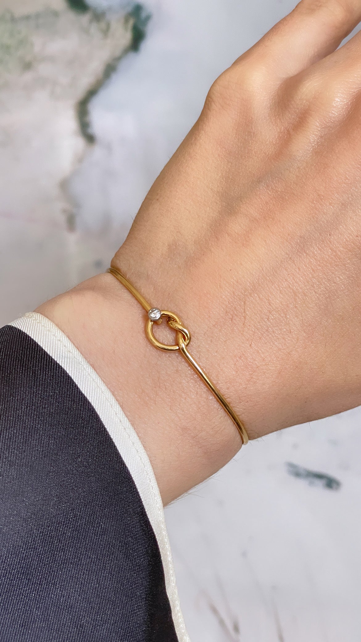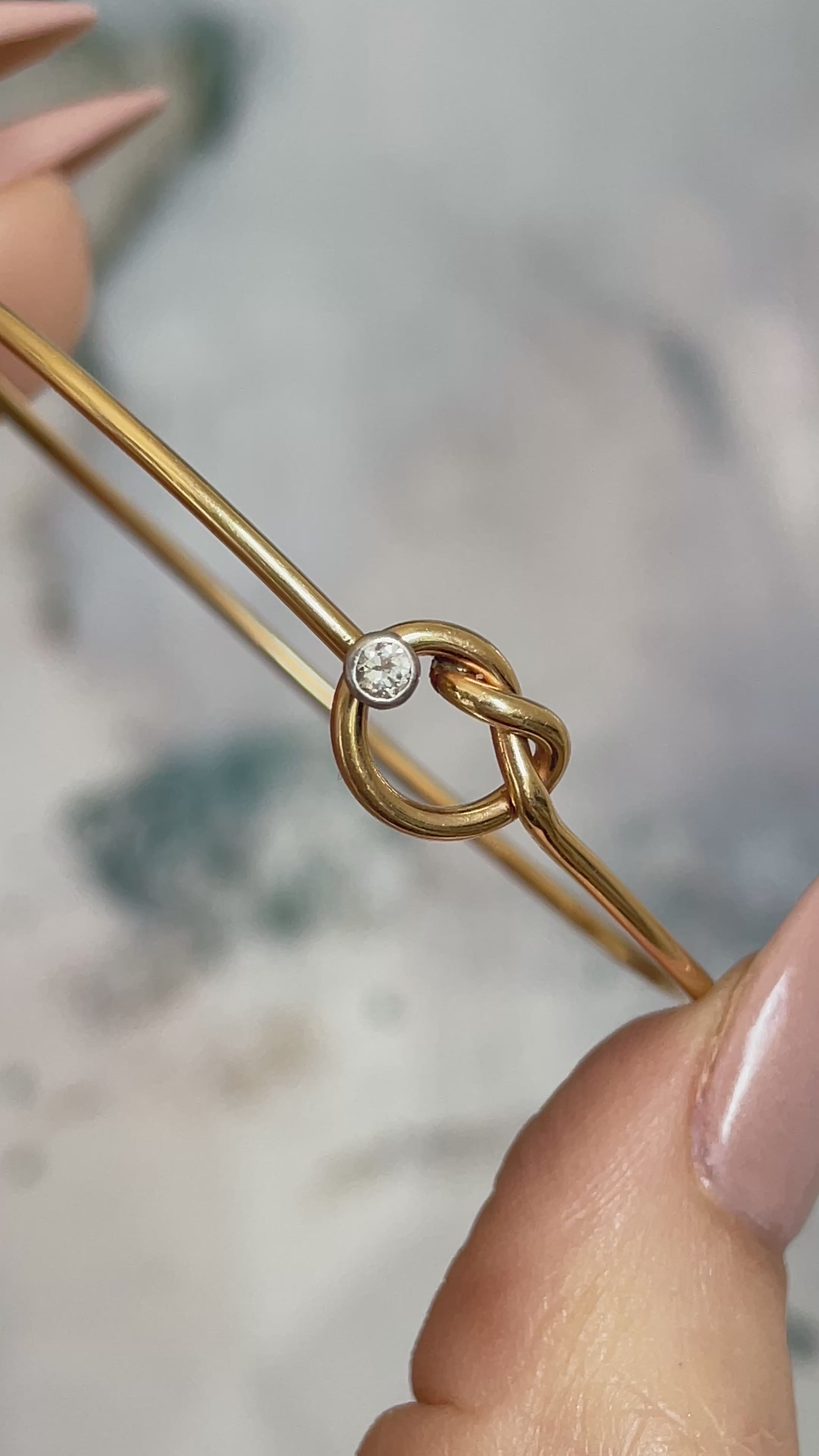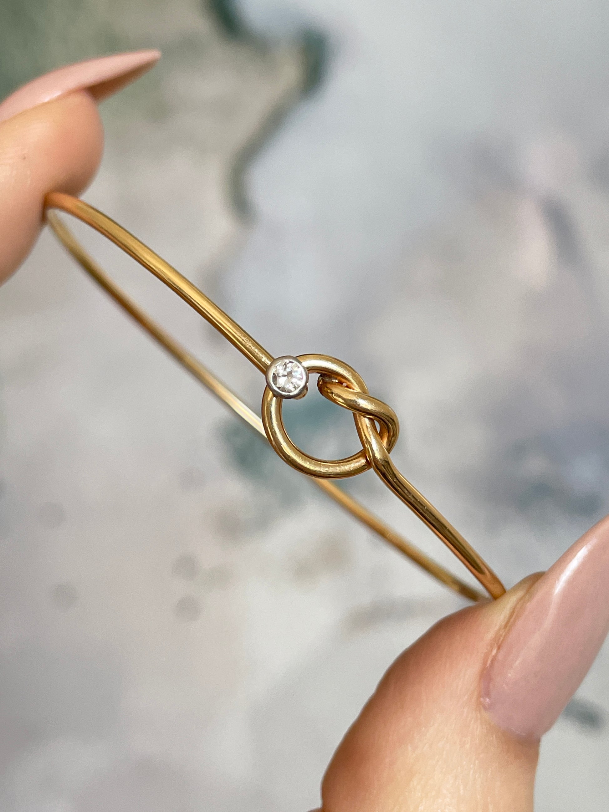Vintage yellow 14K gold approx .03ctw diamond love knot bangle
