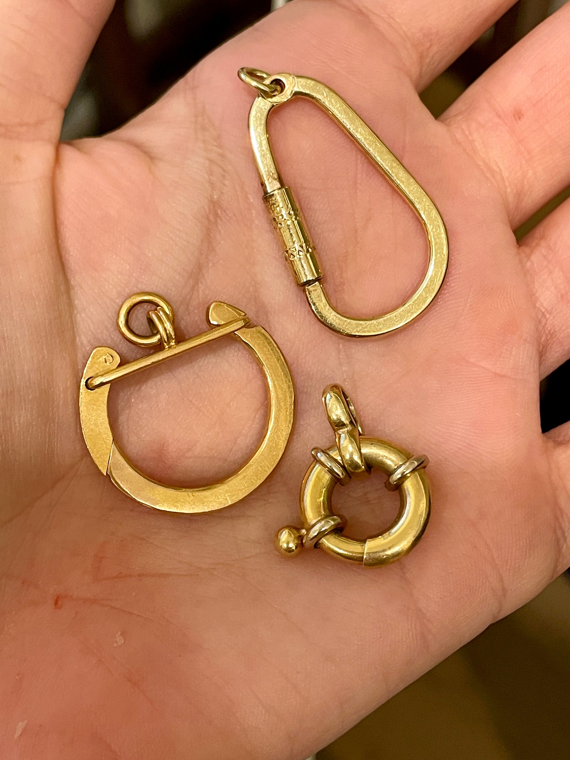 Vintage yellow 14K gold oblong carabiner, 1.5 inch long