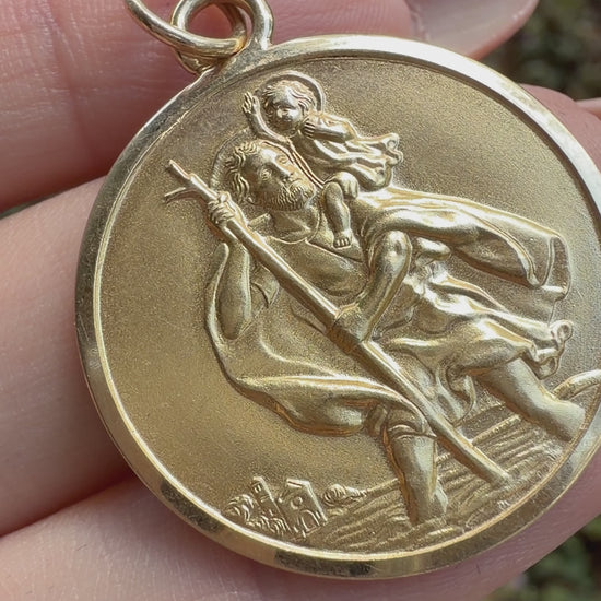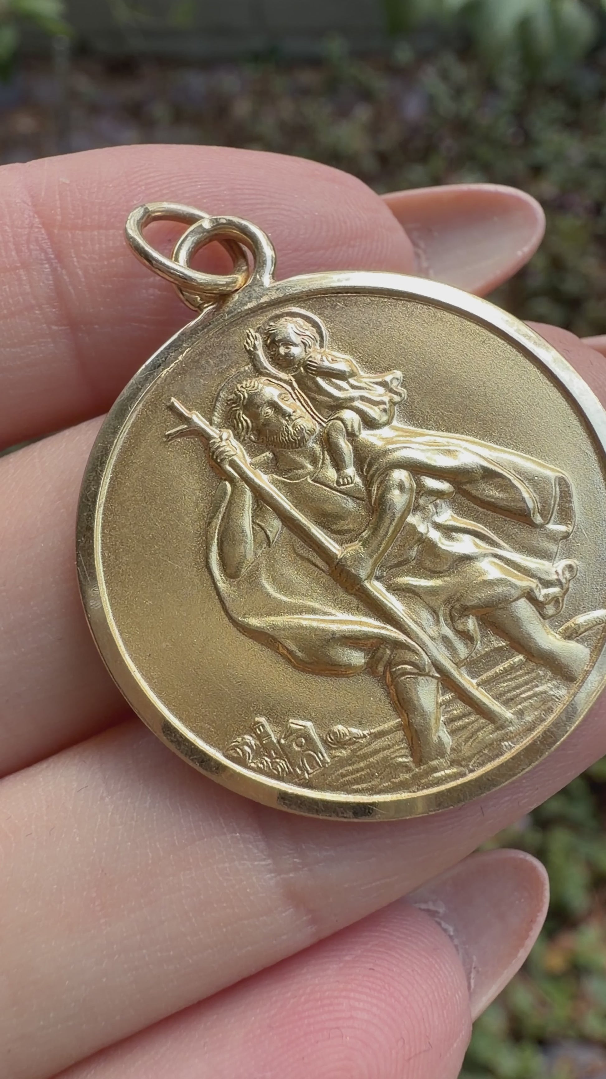 Vintage yellow 14K gold Saint Christopher statement pendant