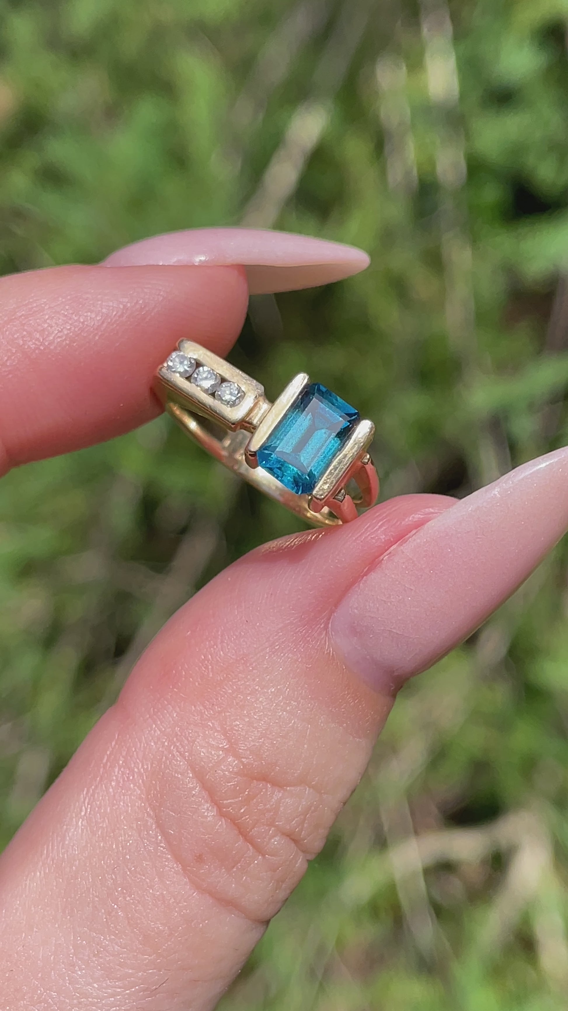 Vintage Yellow 14K Indicolite Tourmaline and .08 ctw diamond ring, Size 4