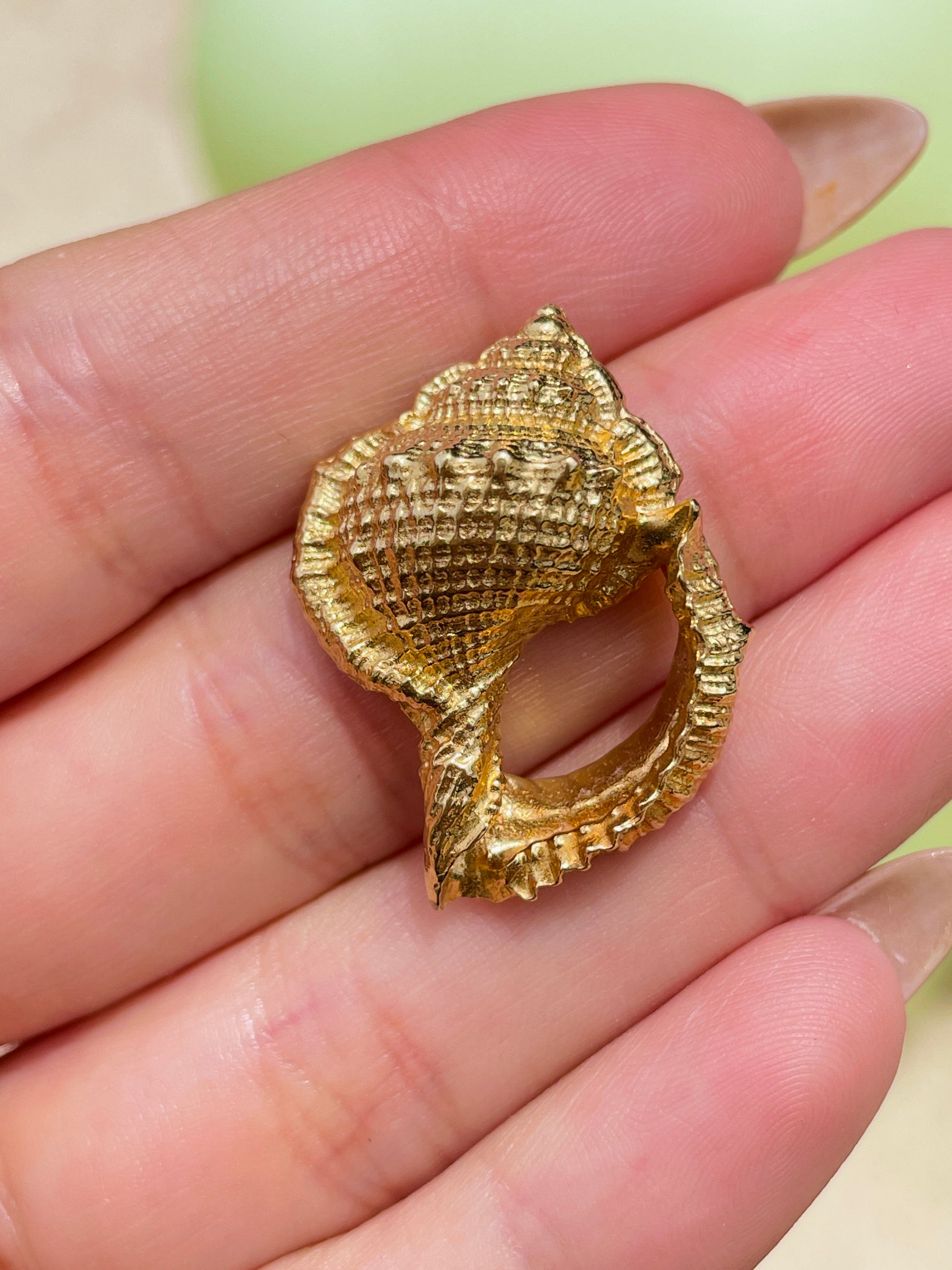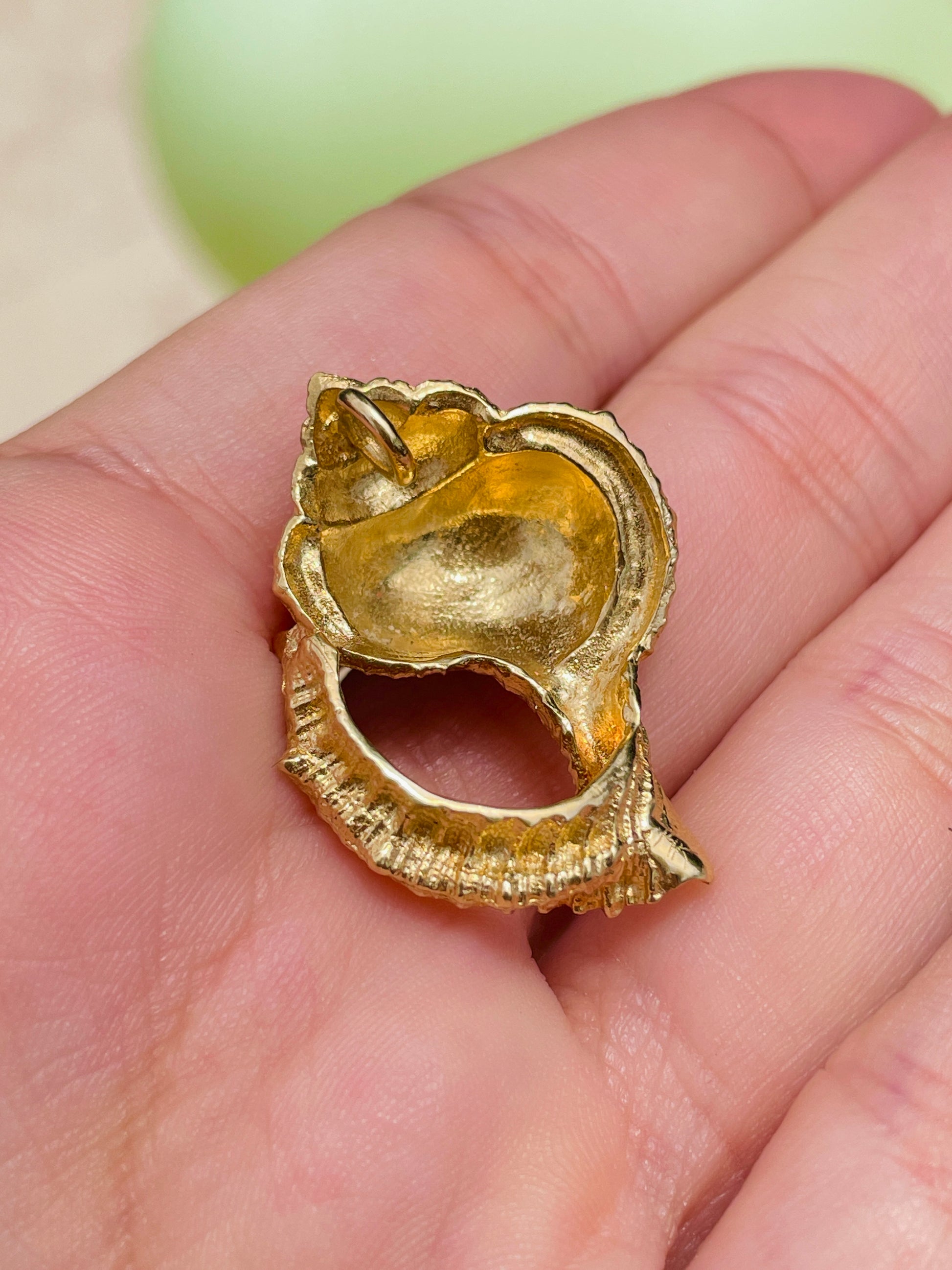 Vintage yellow 14K large textured conch shell pendant