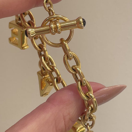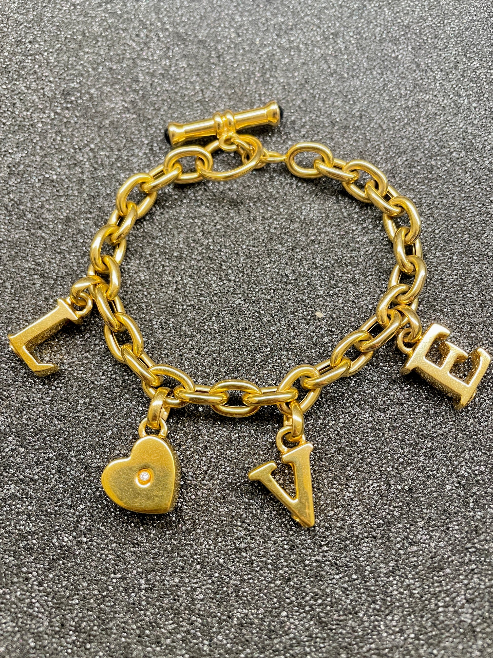 Vintage yellow 14K LOVE letters toggle bracelet, 7.5 inch