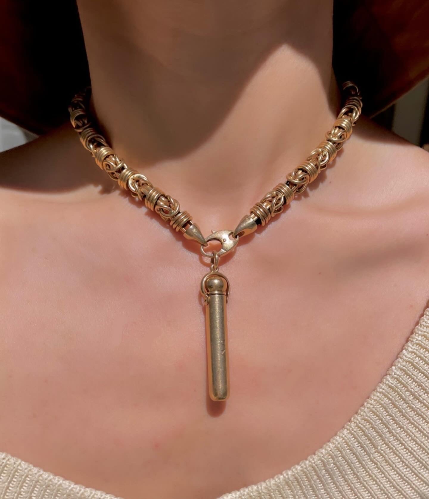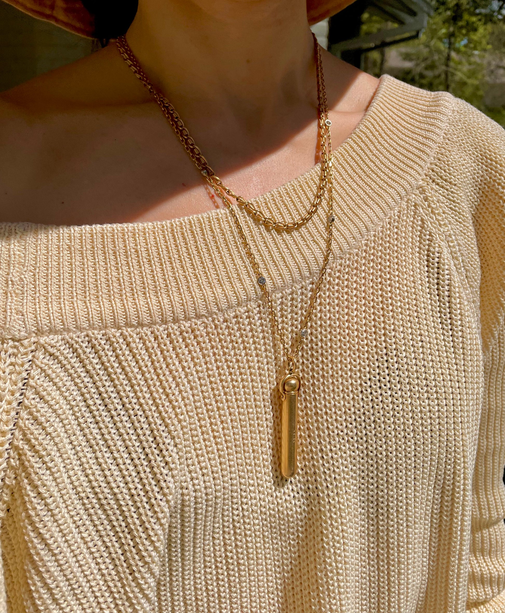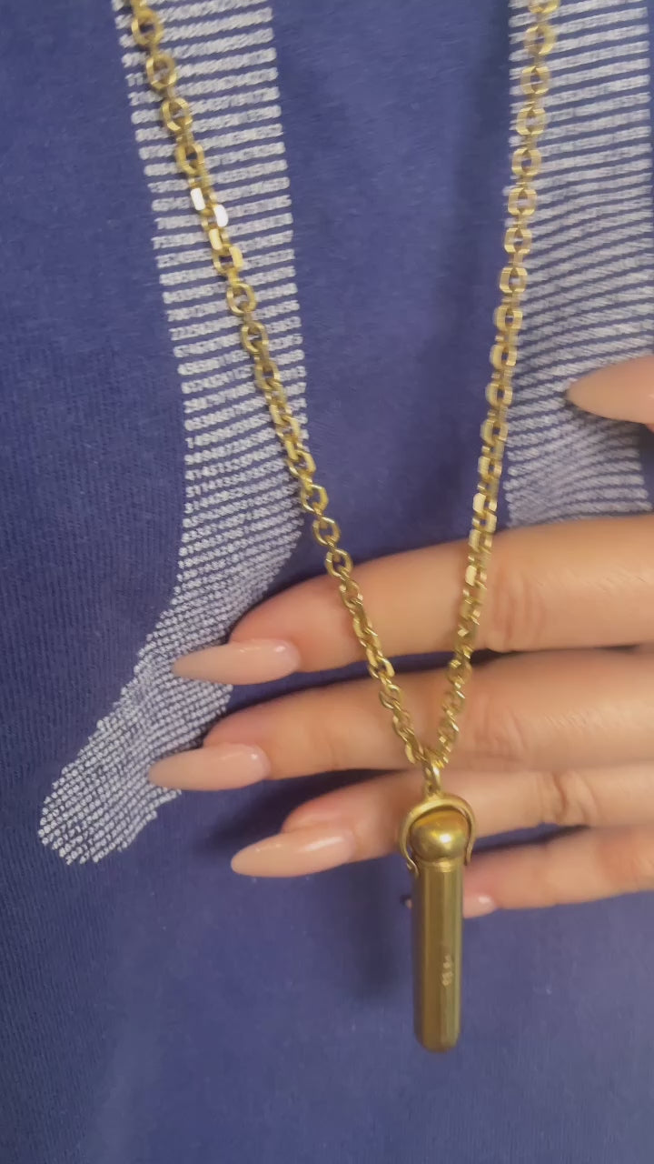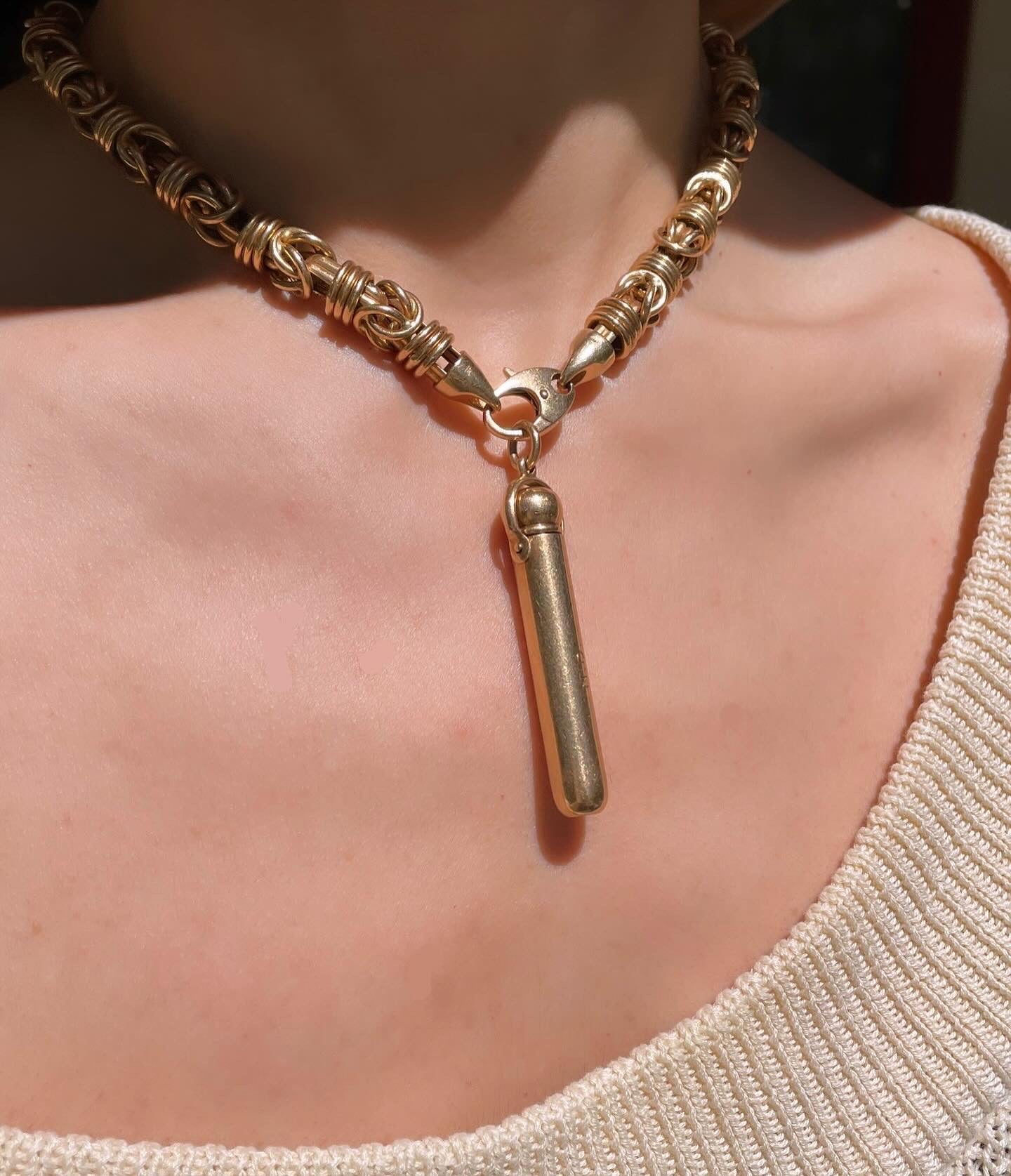 This useful pendant is a gorgeous statement size and a nice streamlined shape. We prefer it worn on a long chain (see videos - chains shown are not included, this listing is for the pendant only).