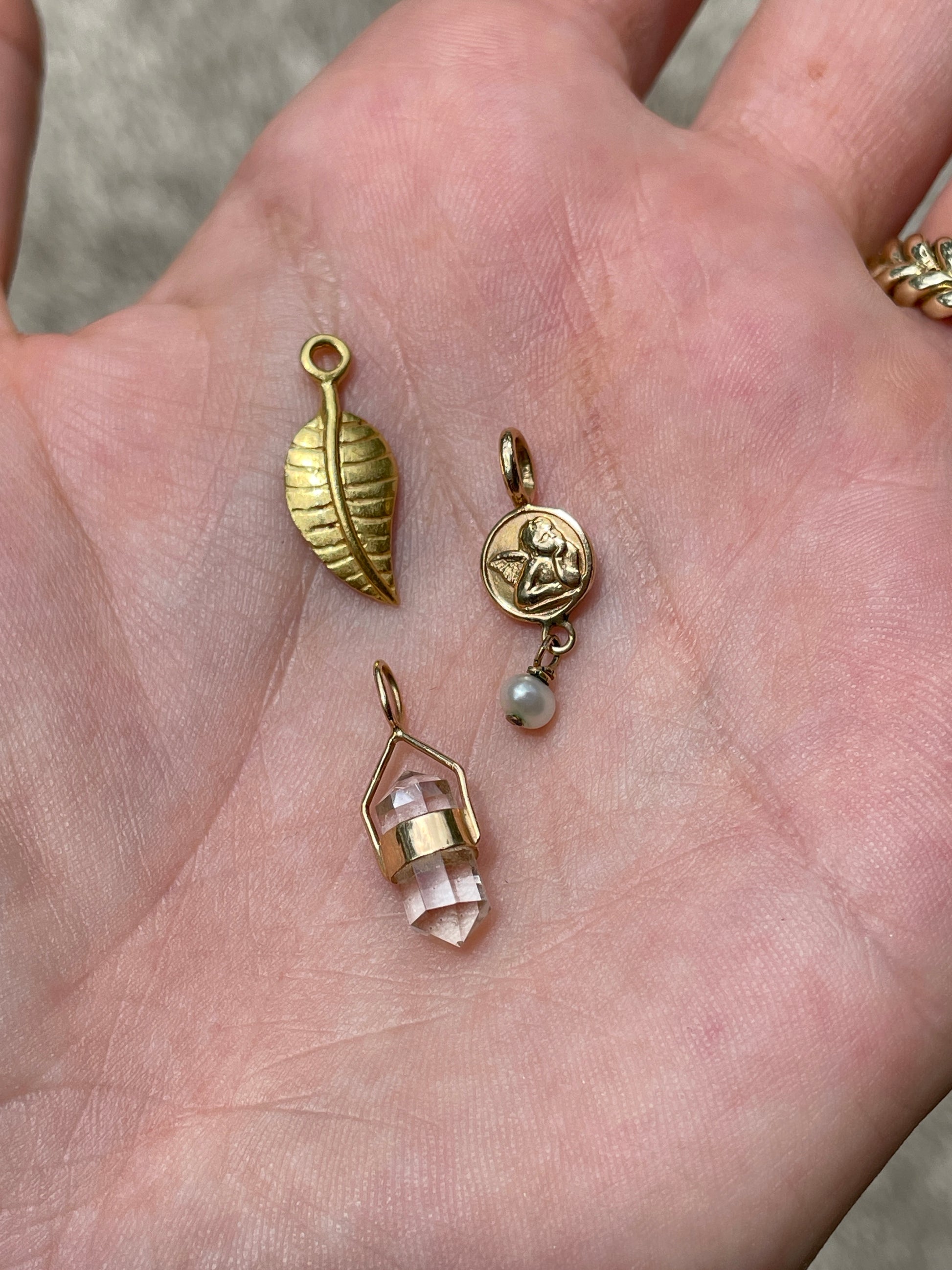 A cute Vintage yellow 14K rock crystal charm. Measures 19.9 mm long with bail x 7.6 mm wide. Weighs .8 gram. Very good preowned condition. **Note listing for rock crystal charm only, others sold separately