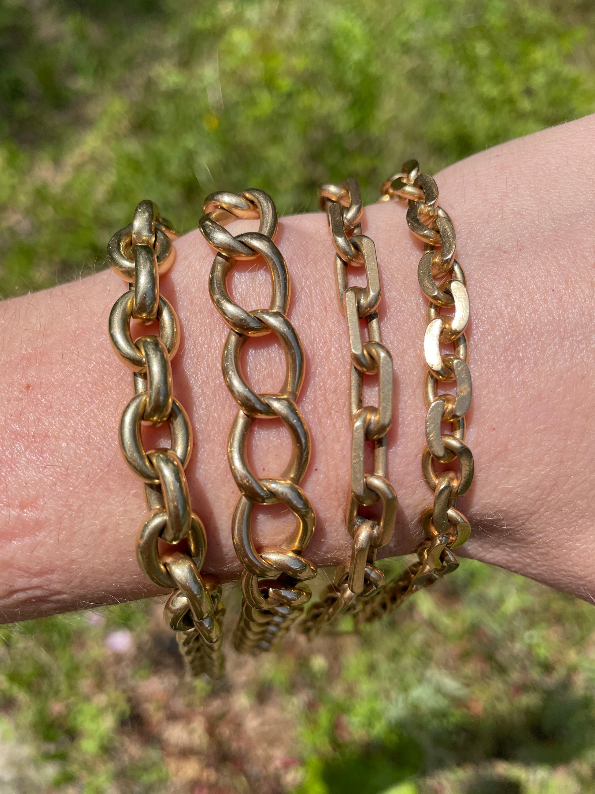 Vintage yellow 14K round open curb link bracelet, 8.25 inch and sizable