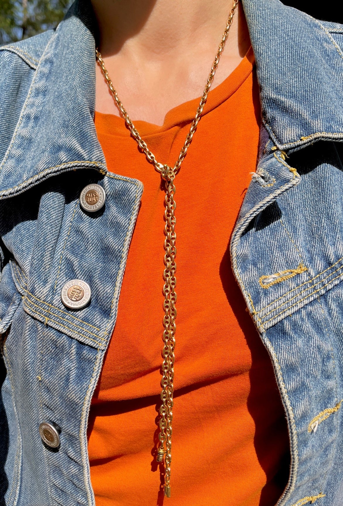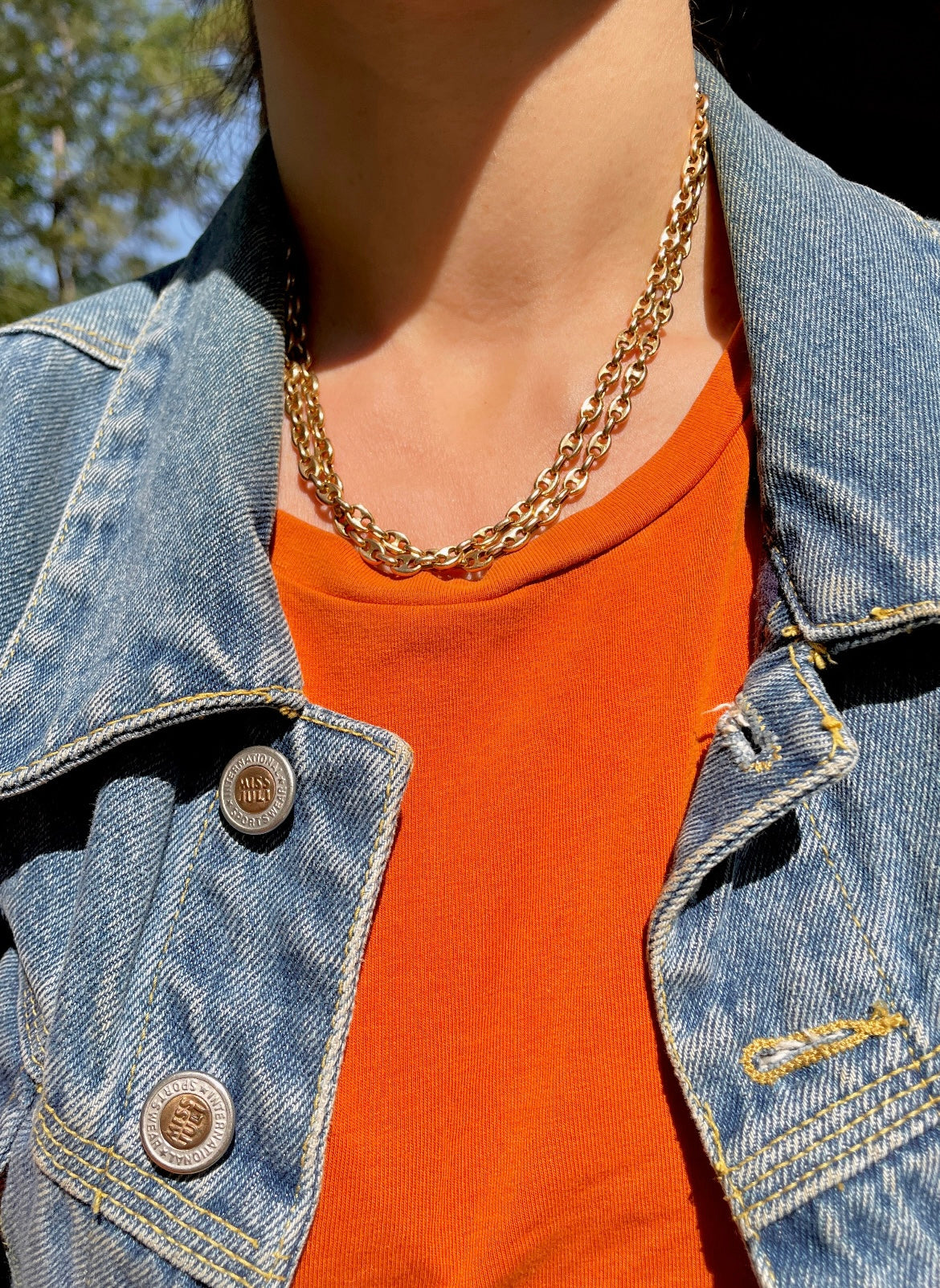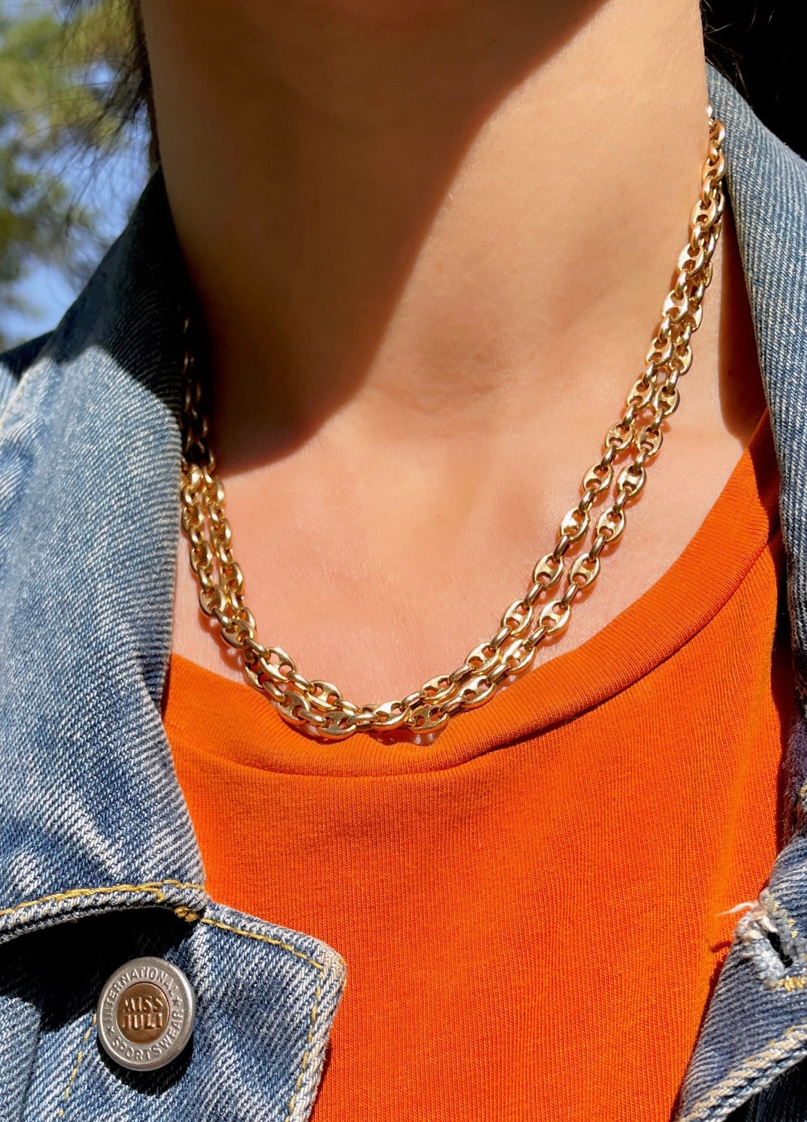 Best mariner chain I've found so far. Yellow gold links are totally solid. Can be worn so many different ways, long, doubled or even tied in a lariat style that stays put due to the heavy weight of the links. Weighs 55.1 grams, 4.5 mm wide, 35.25 inch long, secure tube clasp and side safety. In very good preowned vintage condition.